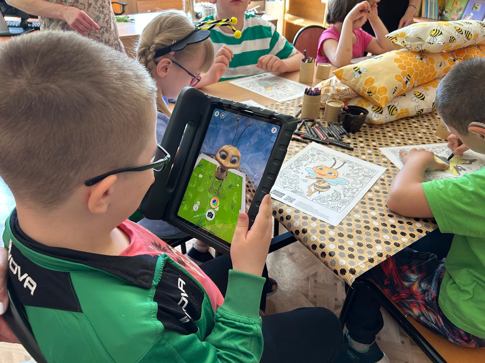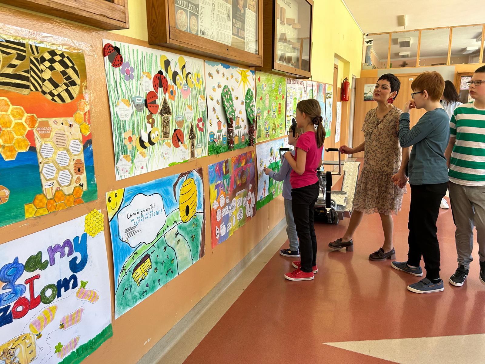 Dużym zainteresowaniem cieszyła się kolorowanka połączona z nowoczesną technologią – dzięki aplikacji Quiver pokolorowane przez dzieci pszczoły „ożyły” i pojawiły się na wirtualnej łące. Uczniowie obejrzeli także wystawę prac plastycznych wykonanych przez kolegów i koleżanki z SOSW nr 1. Kolorowe plakaty o tematyce pszczelarskiej można podziwiać na korytarzu przy bibliotece szkolnej.