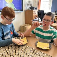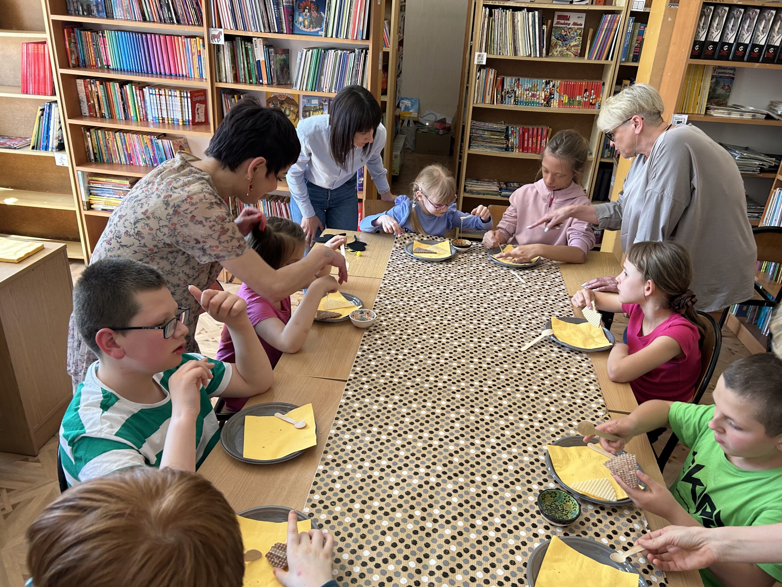 Zwieńczeniem zajęć był słodki poczęstunek – dzieci miały okazję spróbować prawdziwego, naturalnego miodu. Każdy z uczestników otrzymał również mały słoiczek miodu na pamiątkę tego dnia.
