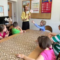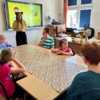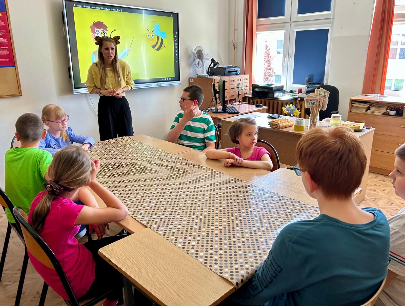 Zajęcia rozpoczęły się od wspólnego obejrzenia krótkiego filmu edukacyjnego, przedstawiającego najważniejsze informacje z życia pszczół i ich roli jako zapylaczy. Następnie dzieci wzięły udział w quizie, który sprawdził ich wiedzę na temat tych owadów – pytania dotyczyły m.in. ula, pracy pszczół i znaczenia miodu.