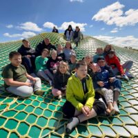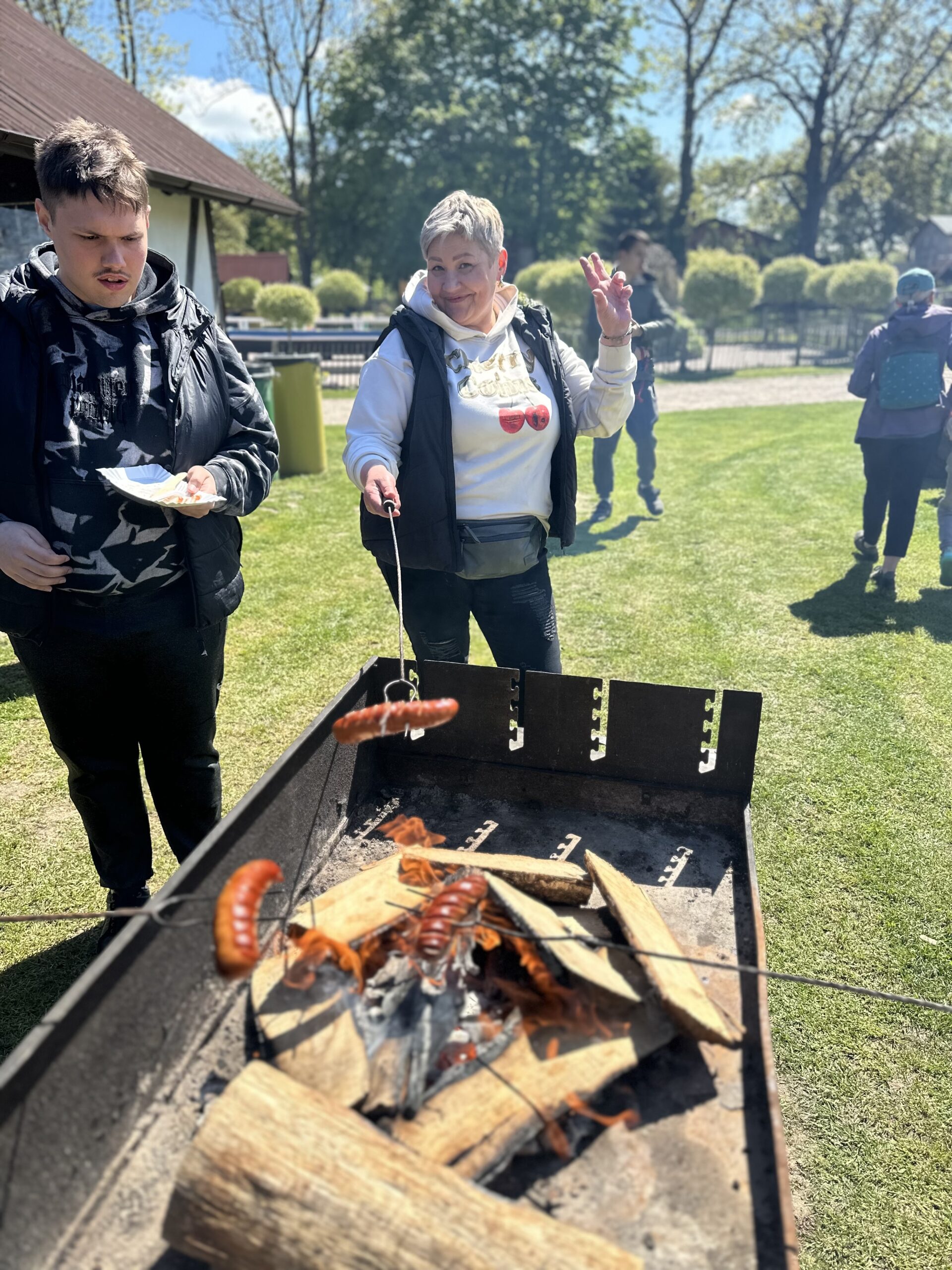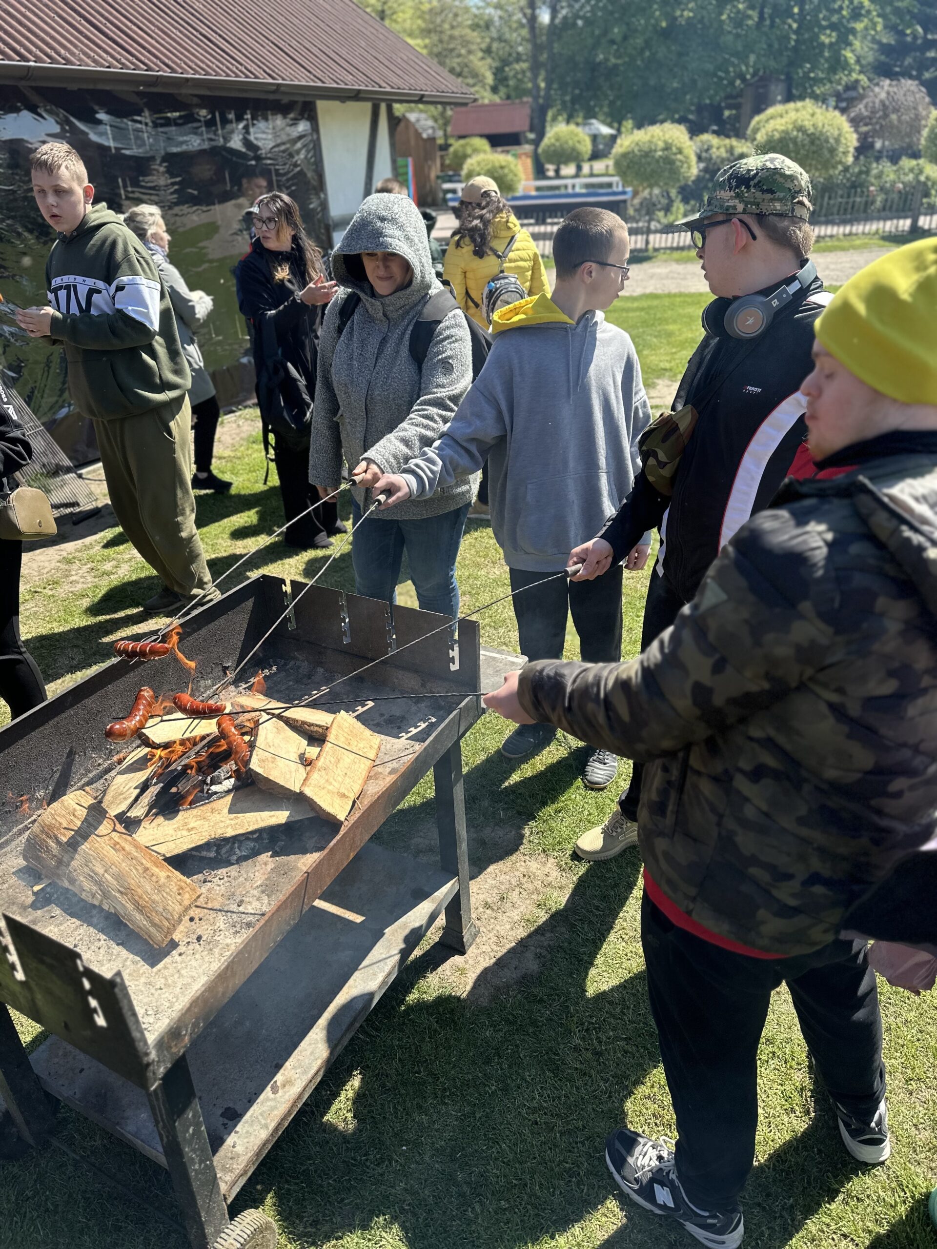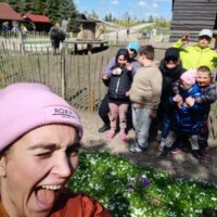 Podczas pobytu dzieci zwiedzały teren zagrody pełen atrakcji – mogły z bliska zobaczyć zwierzęta, pobawić się na świeżym powietrzu, uczestniczyć w ciekawych aktywnościach edukacyjnych i integracyjnych. Radości było co niemiara – uśmiechy nie schodziły z twarzy uczniów przez cały dzień! Punktem kulminacyjnym wycieczki było wspólne ognisko z pieczeniem kiełbasek, które dostarczyło wszystkim niezapomnianych smaków, wiele śmiechu i radości.
