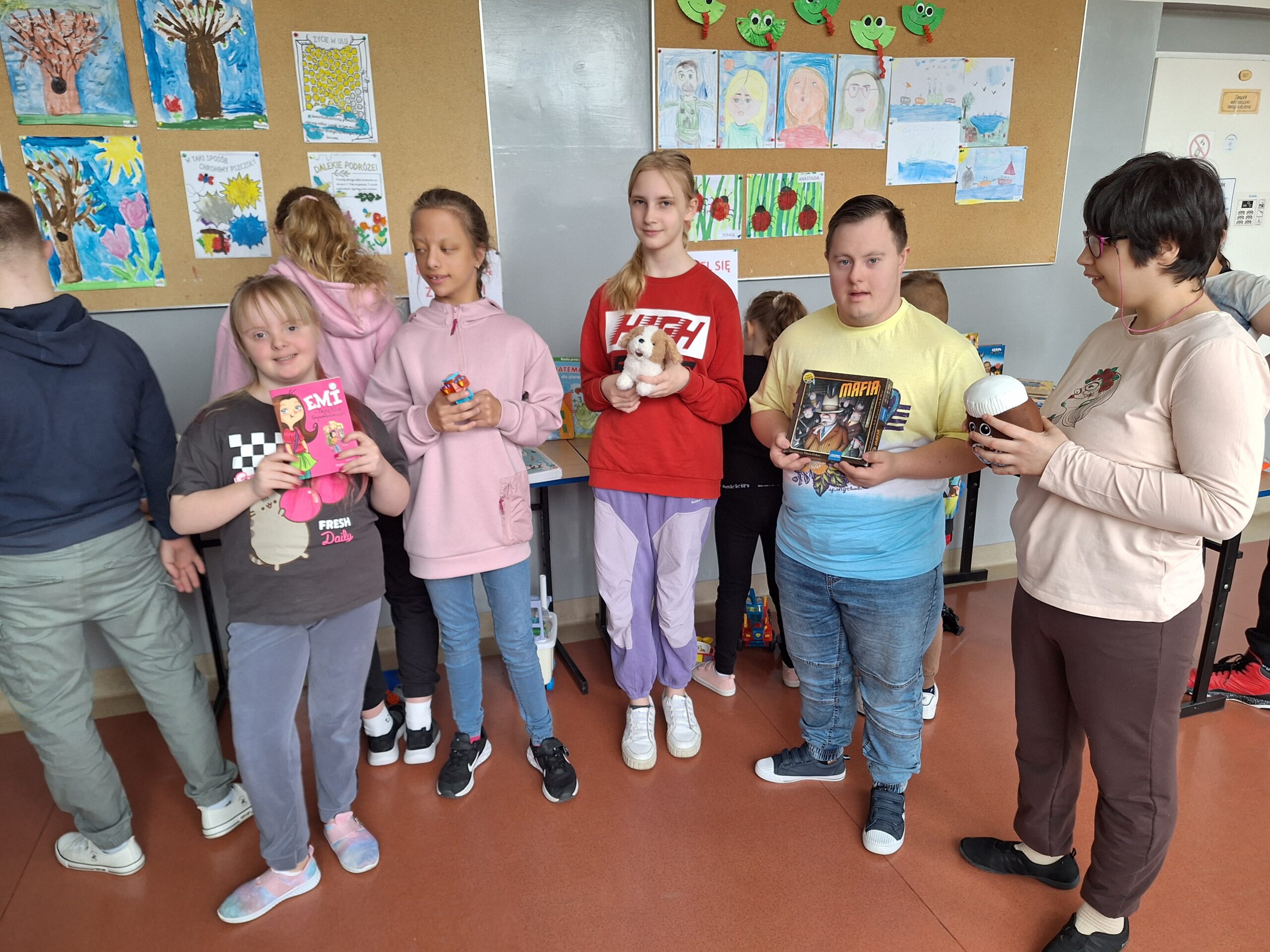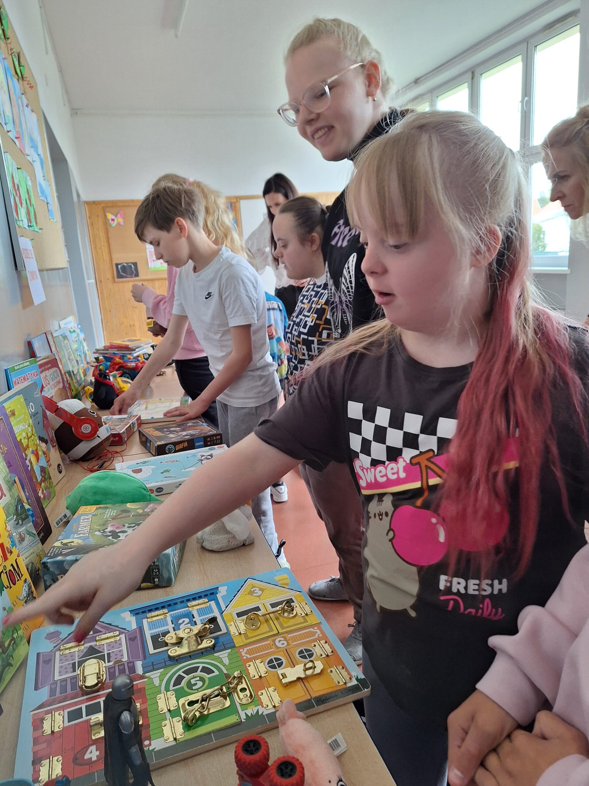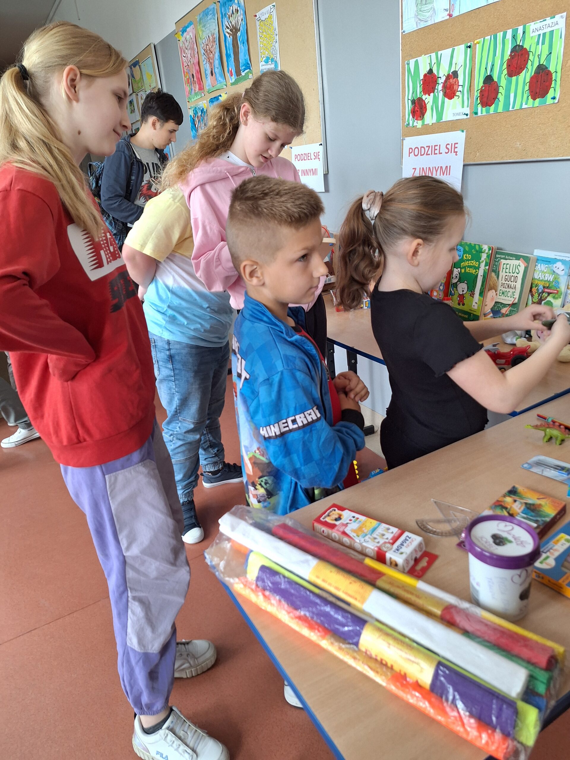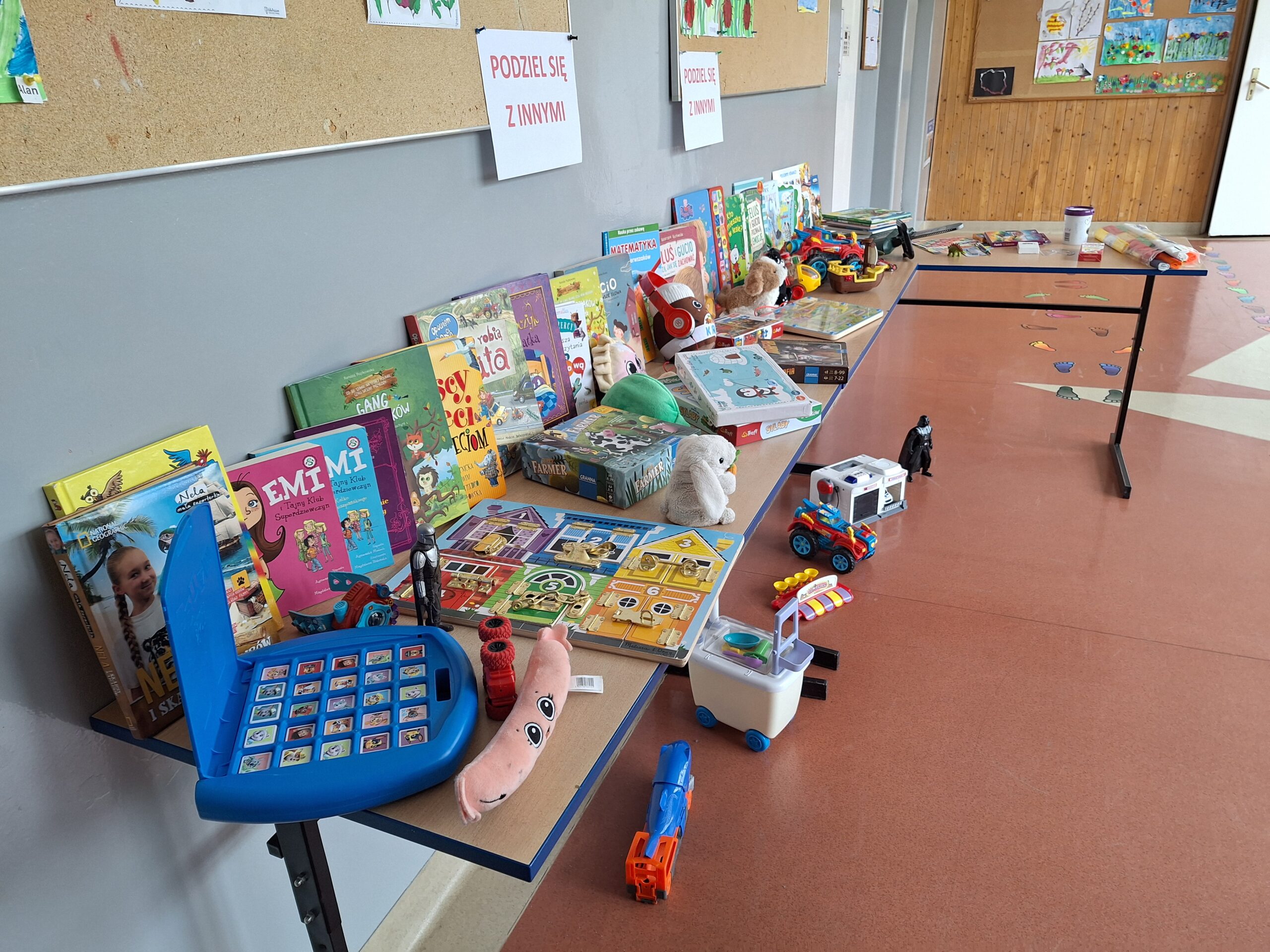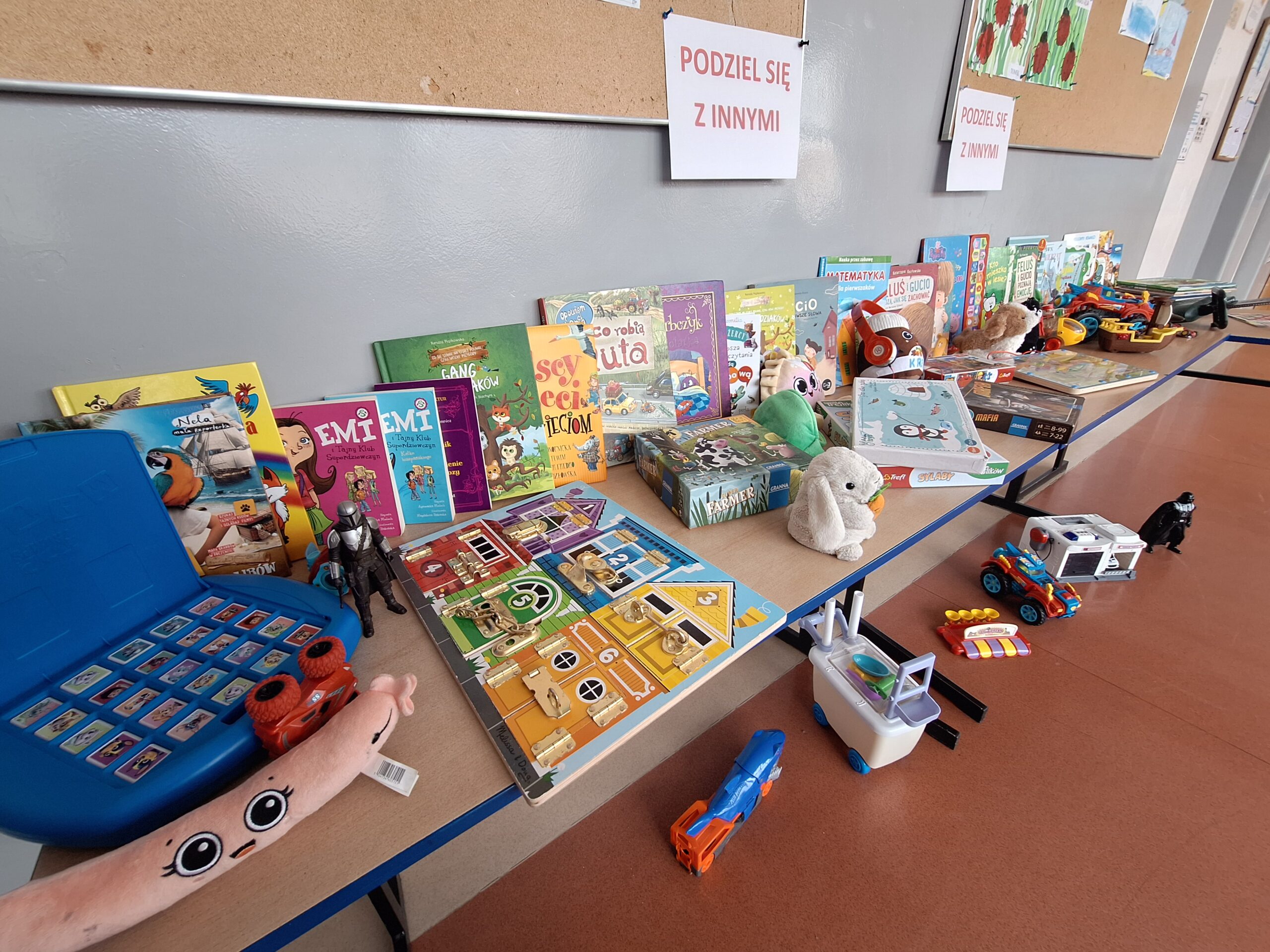 Akcja „Podziel się z innymi”  zorganizowana przez Sekcję Koleżeńską  była pierwszą tego rodzaju inicjatywą, w której uczniowie dzielili się swoimi grami, książkami i pluszakami.  Dzielenie się i wymiana przyniosły uczniom wiele satysfakcji i radości. Każdy z uczestników tego nowego  projektu wyszedł z osobiscie wybraną przez siebie zabawką.