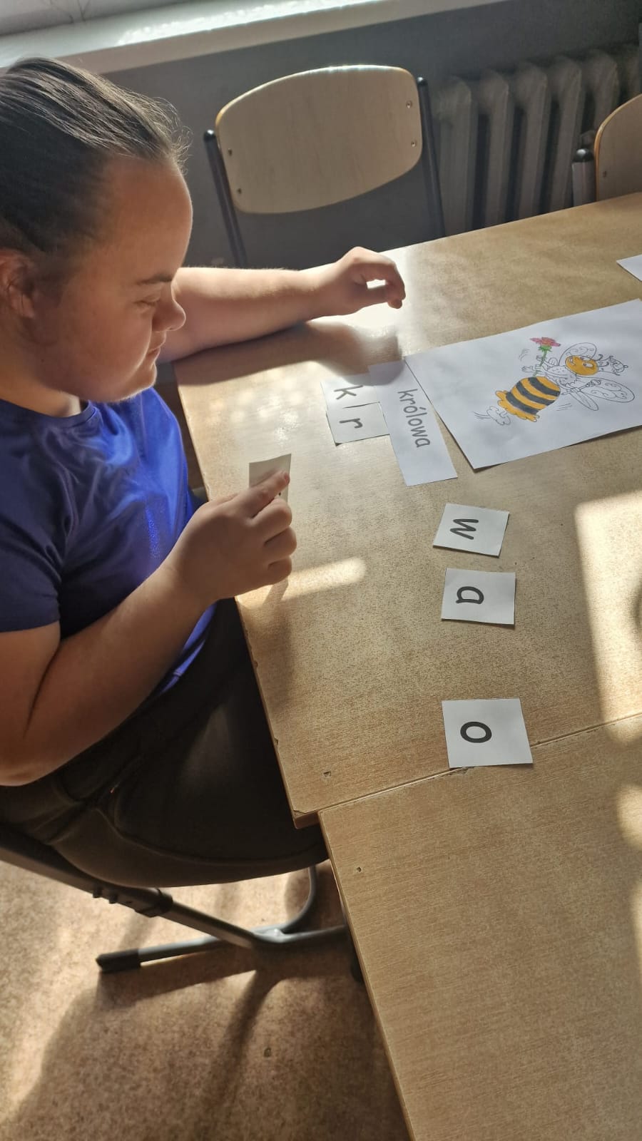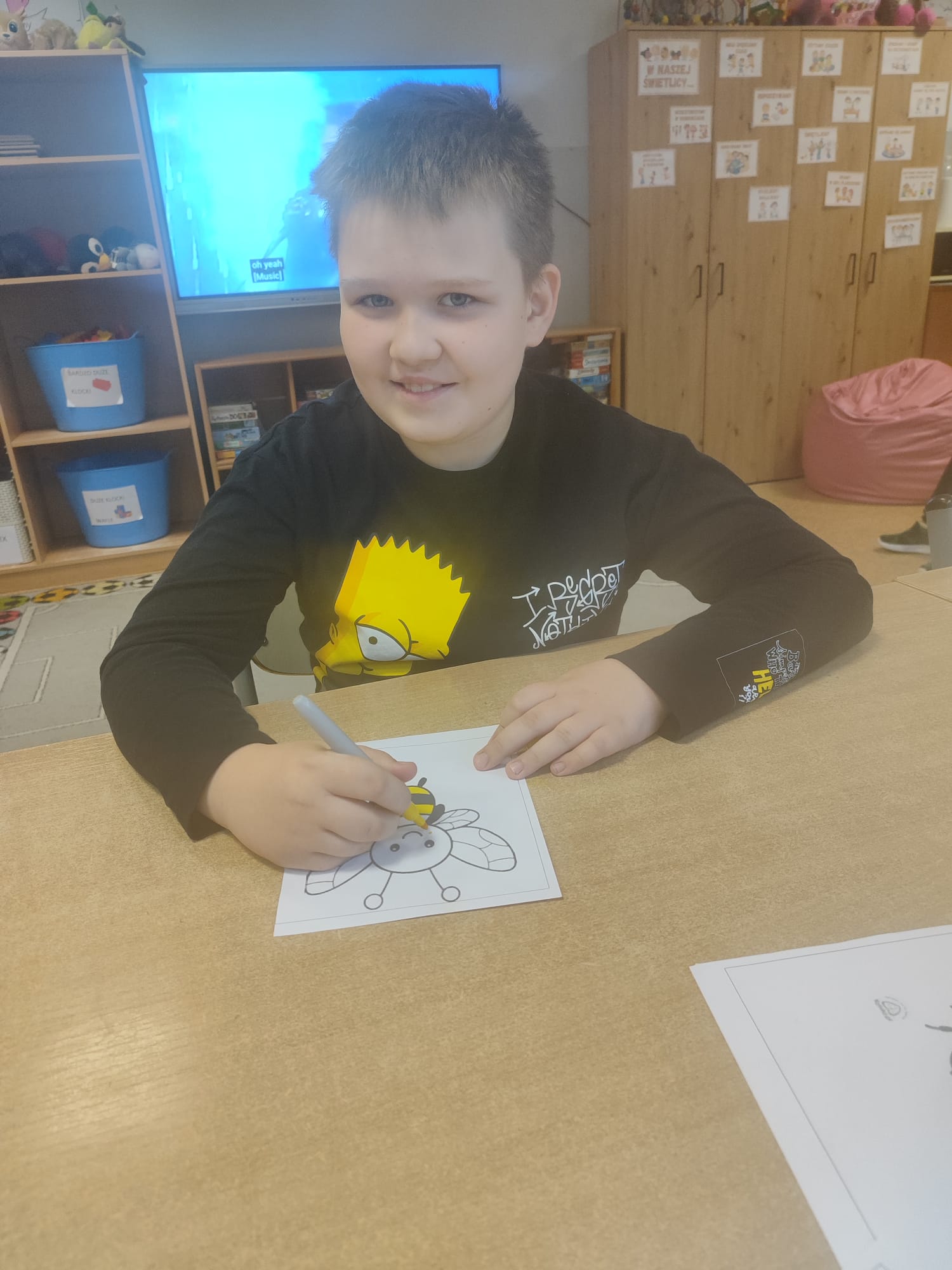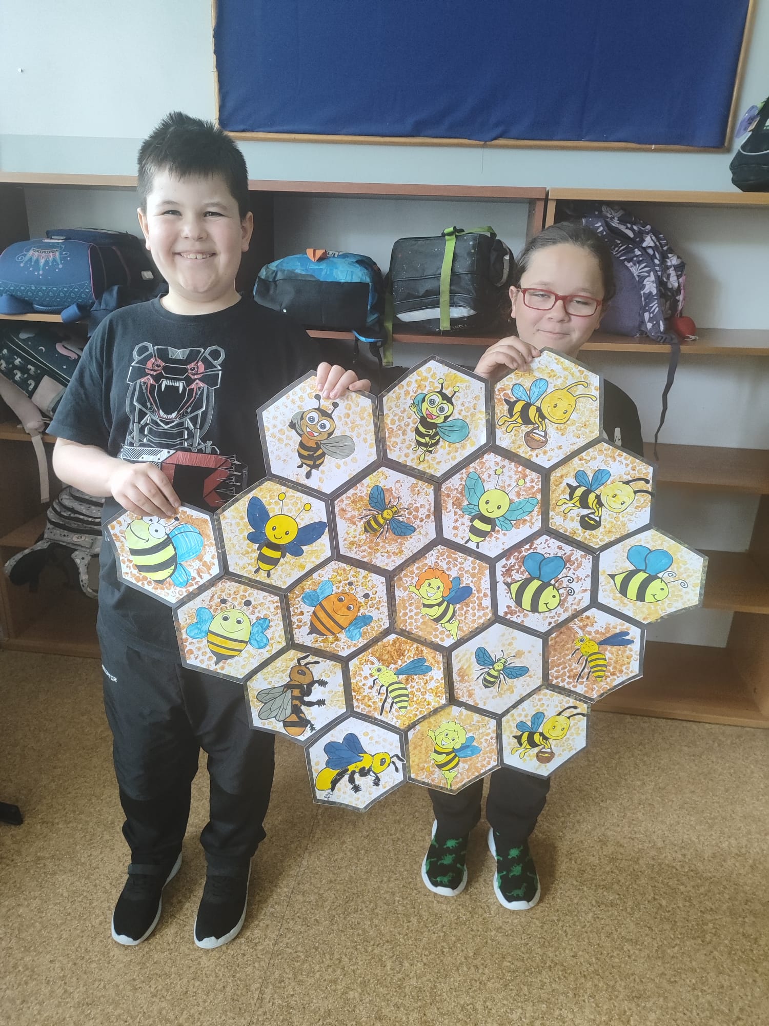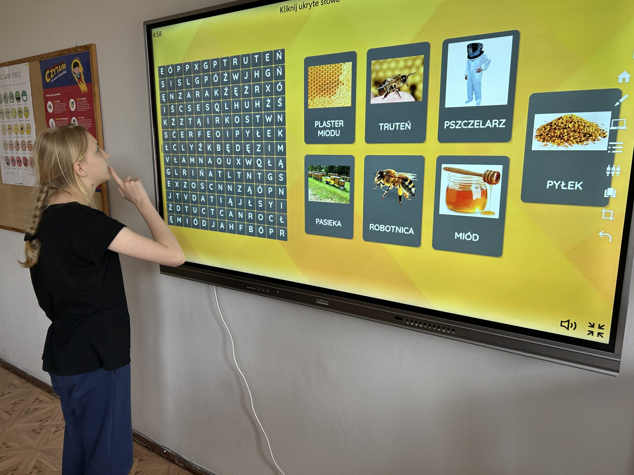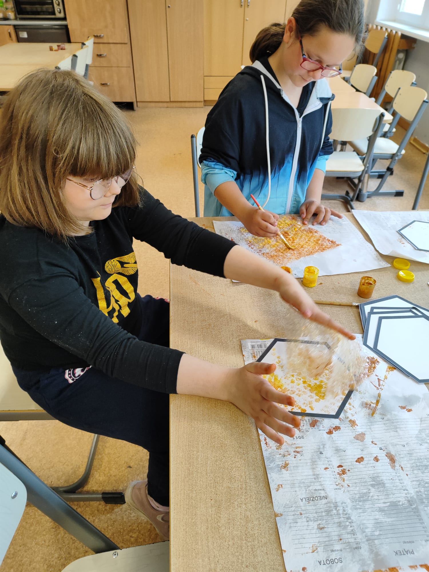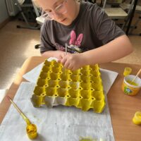 W świetlicy uczniowie tworzyli pszczółki z papieru oraz przestrzenne plastry miodu z opakowań z recyklingu. Przy okazji mierzyli się z ortograficznymi łamigłówkami – układali słowa z trudnością ortograficzną z rozsypanych liter. Każde zadanie rozwijało ich umiejętności językowe, a jednocześnie pozostawało atrakcyjne i dostosowane do ich możliwości.