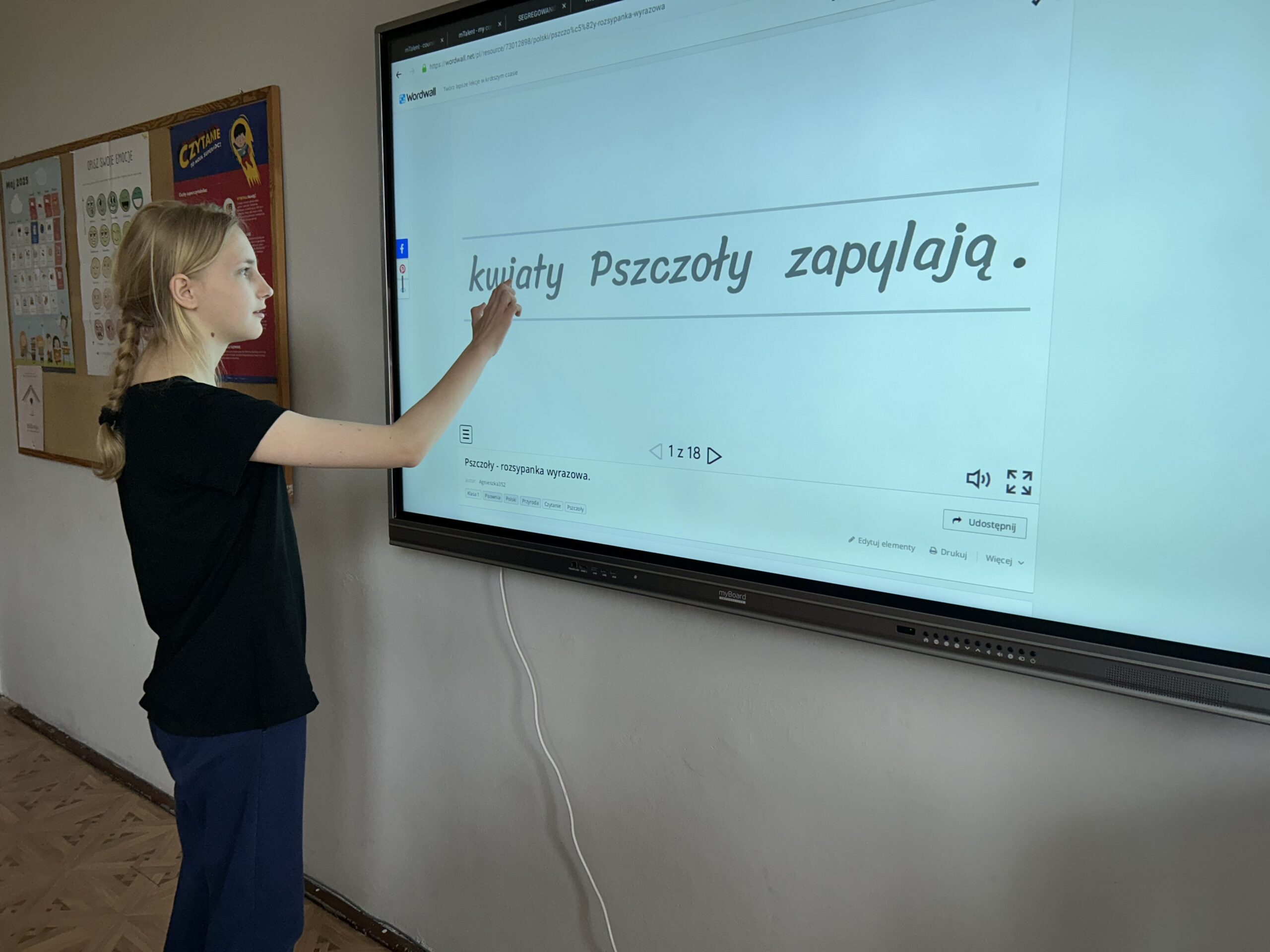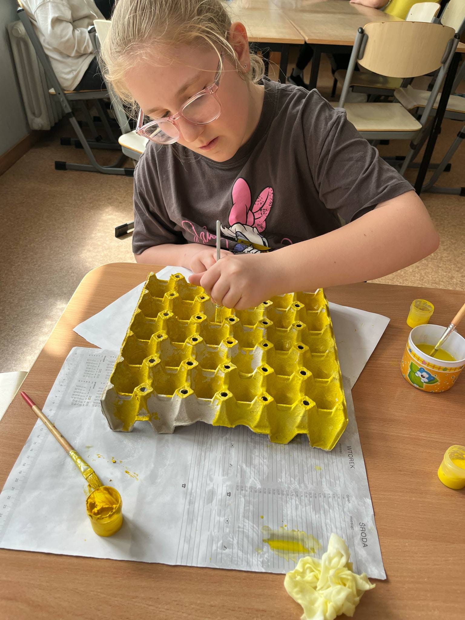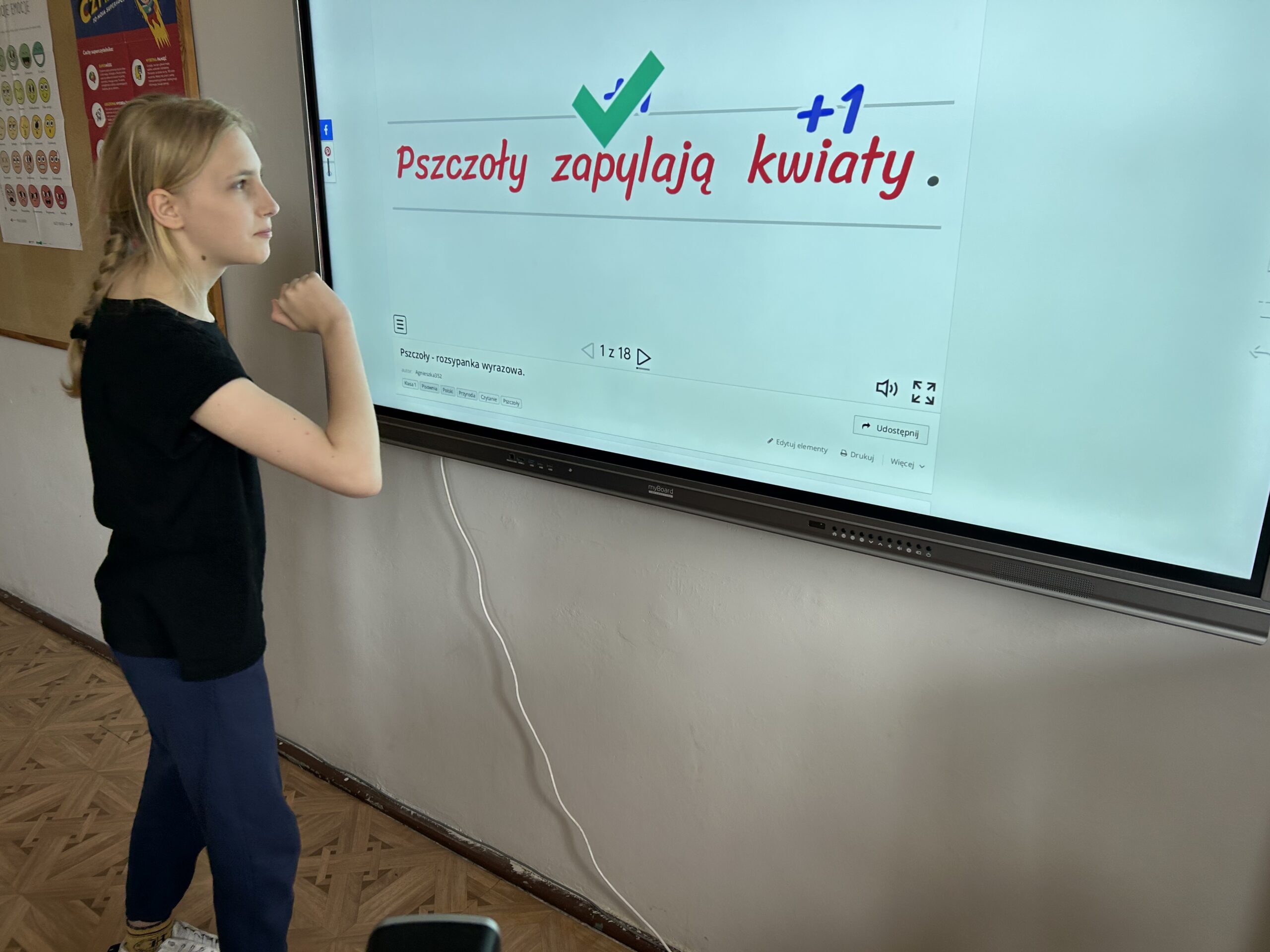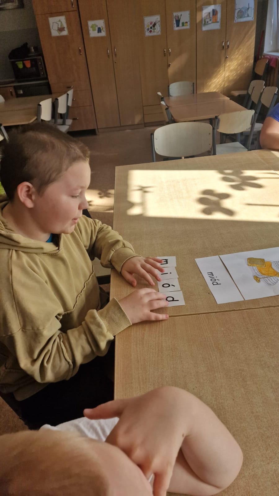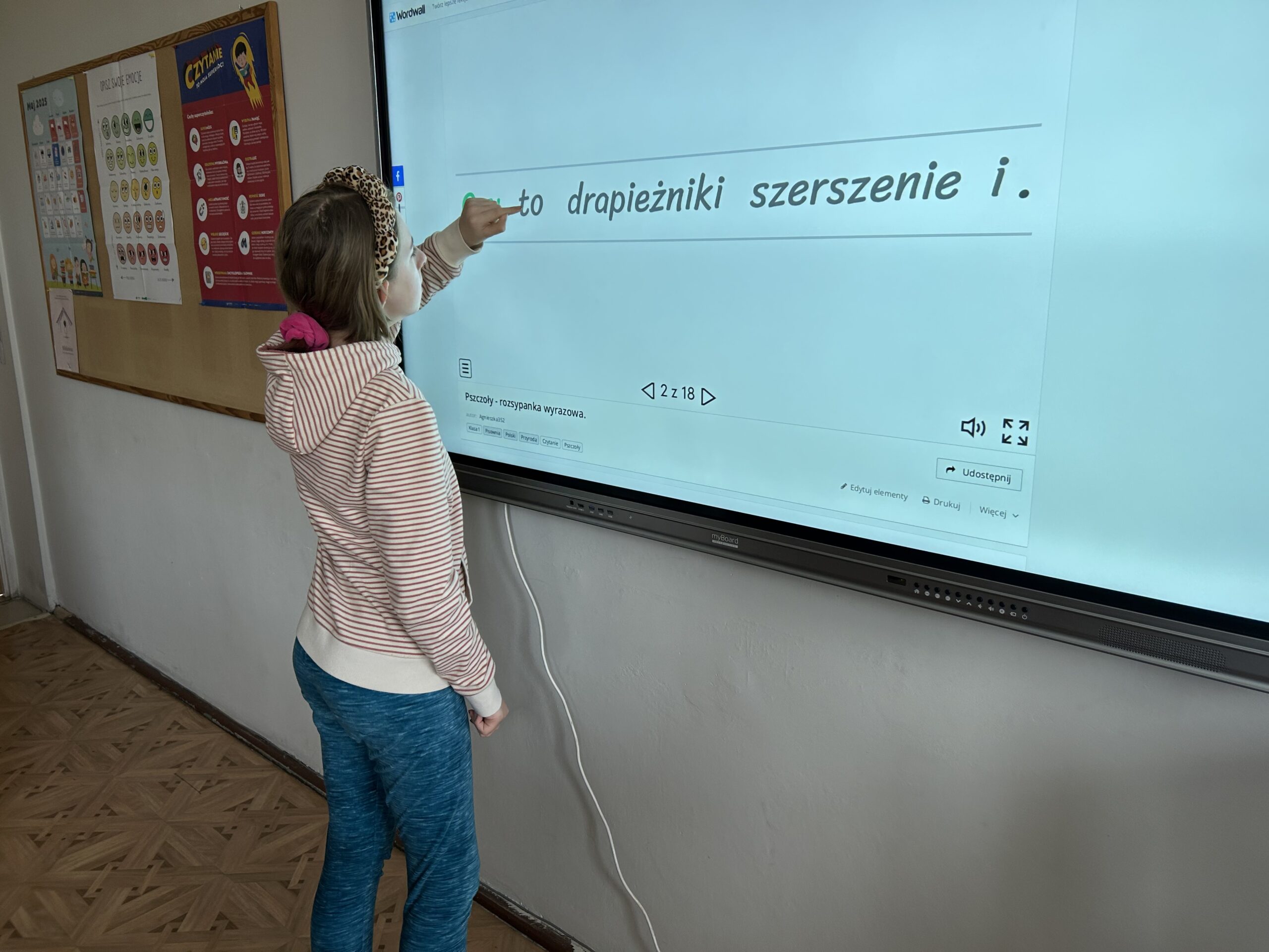 W świetlicy uczniowie tworzyli pszczółki z papieru oraz przestrzenne plastry miodu z opakowań z recyklingu. Przy okazji mierzyli się z ortograficznymi łamigłówkami – układali słowa z trudnością ortograficzną z rozsypanych liter. Każde zadanie rozwijało ich umiejętności językowe, a jednocześnie pozostawało atrakcyjne i dostosowane do ich możliwości.