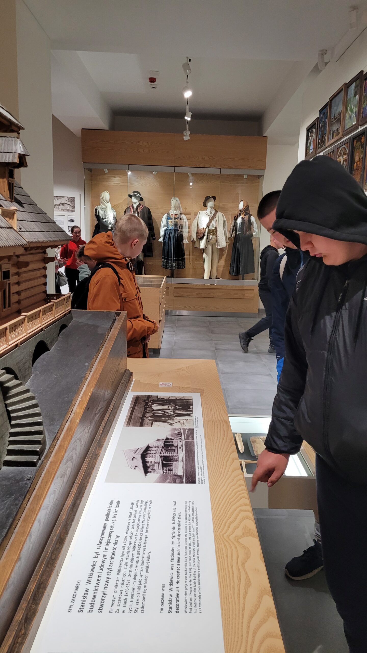 Pani przewodnik uświadomiła nam, że położone przy Krupówkach Muzeum Tatrzańskie jest cennym zabytkiem architektury w stylu zakopiańskim. Podziwiać od zewnątrz to jedno, a widzieć wnętrze to już coś więcej… Zwiedzając muzeum poznaliśmy wystrój tatrzańskiej chałupy. Tysiąc czterysta eksponatów, w tym między innymi haftowane gorsety góralskie i barwne spódnice; łyżniki i formy na ser; dudy i gęśle podhalańskie; drewniany model willi pod Jedlami; kosodrzewina i limba; granity, wapienie i kwarce; świstak, niedźwiedź i kozica na stałe wypełniają przeszklone gabloty, zaspakajając ciekawość turystów.