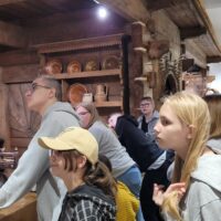 Kiedy obrazy malowane na szkle pojawiły się na Podhalu? Kogo najchętniej malowano i o czym zapominali malarze ludowi? Wizerunki jakich świętych były najchętniej kupowane i co z malarstwem na szkle mieli wspólnego zbójnicy? O tym wszystkim dowiedzieliśmy się z opowieści pani przewodnik, która wyjaśniła, jakie znaczenie miały obrazy malowane na szkle w podhalańskich chałupach i jaką techniką je wykonywano. Uwieńczeniem spotkania ze sztuką ludową w roli głównej był sprawdzian własnego talentu artystycznego podczas malowania obrazków na szkle, co sprawiło nam dużą radość. Każdy z nas przywiózł własnoręcznie zrobioną pamiątkę z Zakopanego, a ekspresja plastyczna odzwierciedlająca piękno górskiego krajobrazu miała cenne walory terapeutyczne. W wielkim skupieniu i z iście artystycznym zapałem powstawały z naszych pędzli górskie potoki, hale z juhasem w tle, czy skaliste szczyty z głęboko wciętymi dolinami.