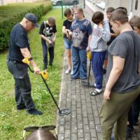 Dziś w naszej szkole odbyły się żywe lekcje historii. Uczniowie nie tylko mogli posłuchać fascynujących opowieści o naszym mieście, ale też zobaczyć i dotknąć materialnych świadków historii. Dopełnieniem było poszukiwanie starych monet z wykorzystaniem profesjonalnych wykrywaczy metali. Lekcje odbyły się dzięki Stowarzyszeniu Oficerów Więziennictwa działającego przy Areszcie Śledczym w Elblągu przy wsparciu Stowarzyszenia Historyczno Poszukiwawczym Denar z Elbląga. Gorąco dziękujemy prowadzącym, Panu Michałowi Dziuwa oraz Dawidowi Tryba.