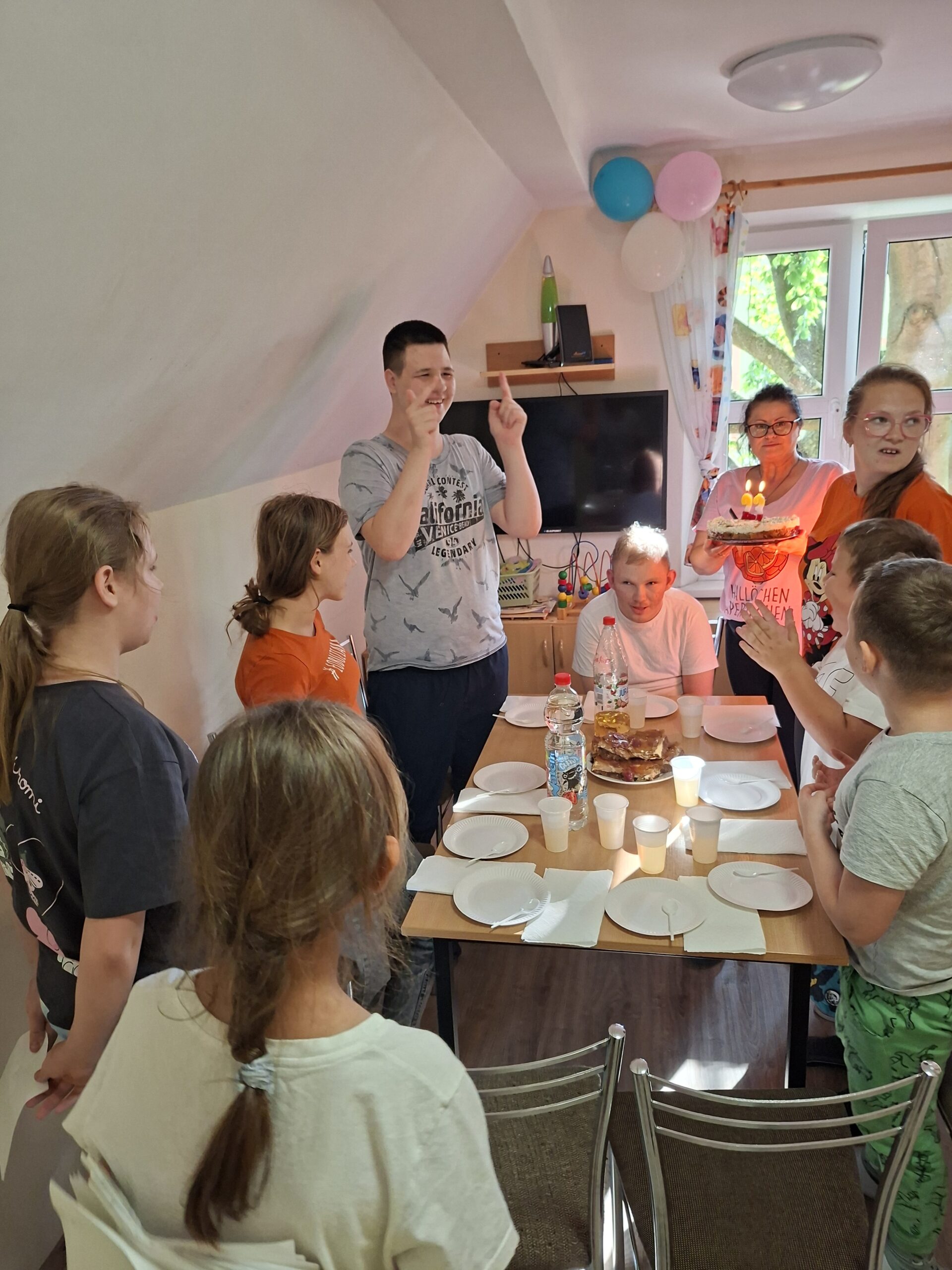 W zeszłym tygodniu 10 września odbyły się w Internacie 23 urodziny Daniela Dawida. Babcia Daniela przyniosła ciasto i tort urodzinowy. Na urodziny przyszły dzieci z I i II grupy z wychowawcą oraz koleżanki Daniela z III grupy internackiej Natalia Miękus i Ola Kaczmarczyk. Wszyscy złożyliśmy Danielowi życzenia i zaśpiewaliśmy 100 lat! Chłopiec dostał również prezenty, z których był bardzo zadowolony. Atmosfera urodzinowa przebiegła w bardzo wesołym nastroju.