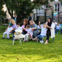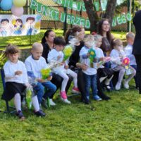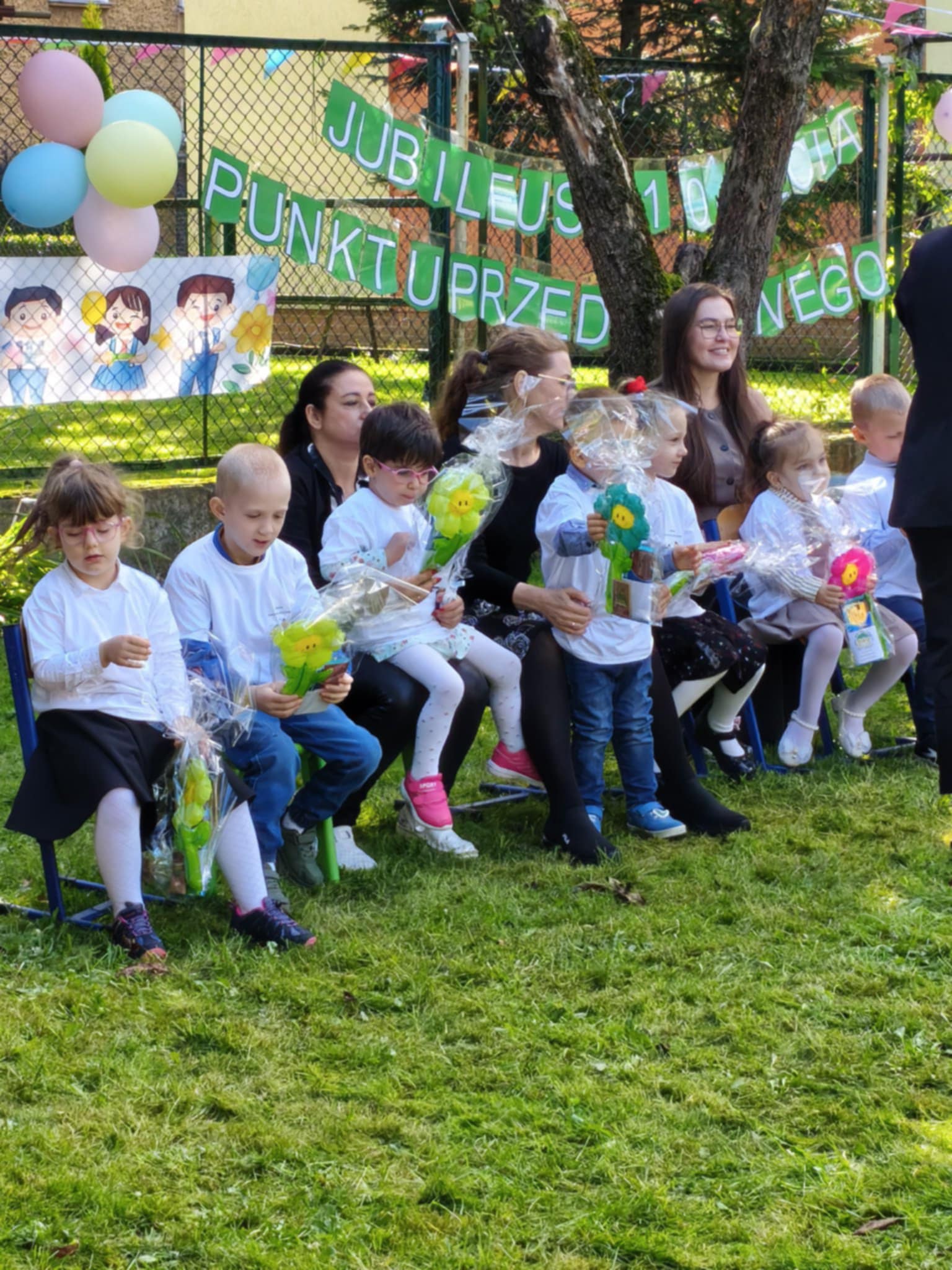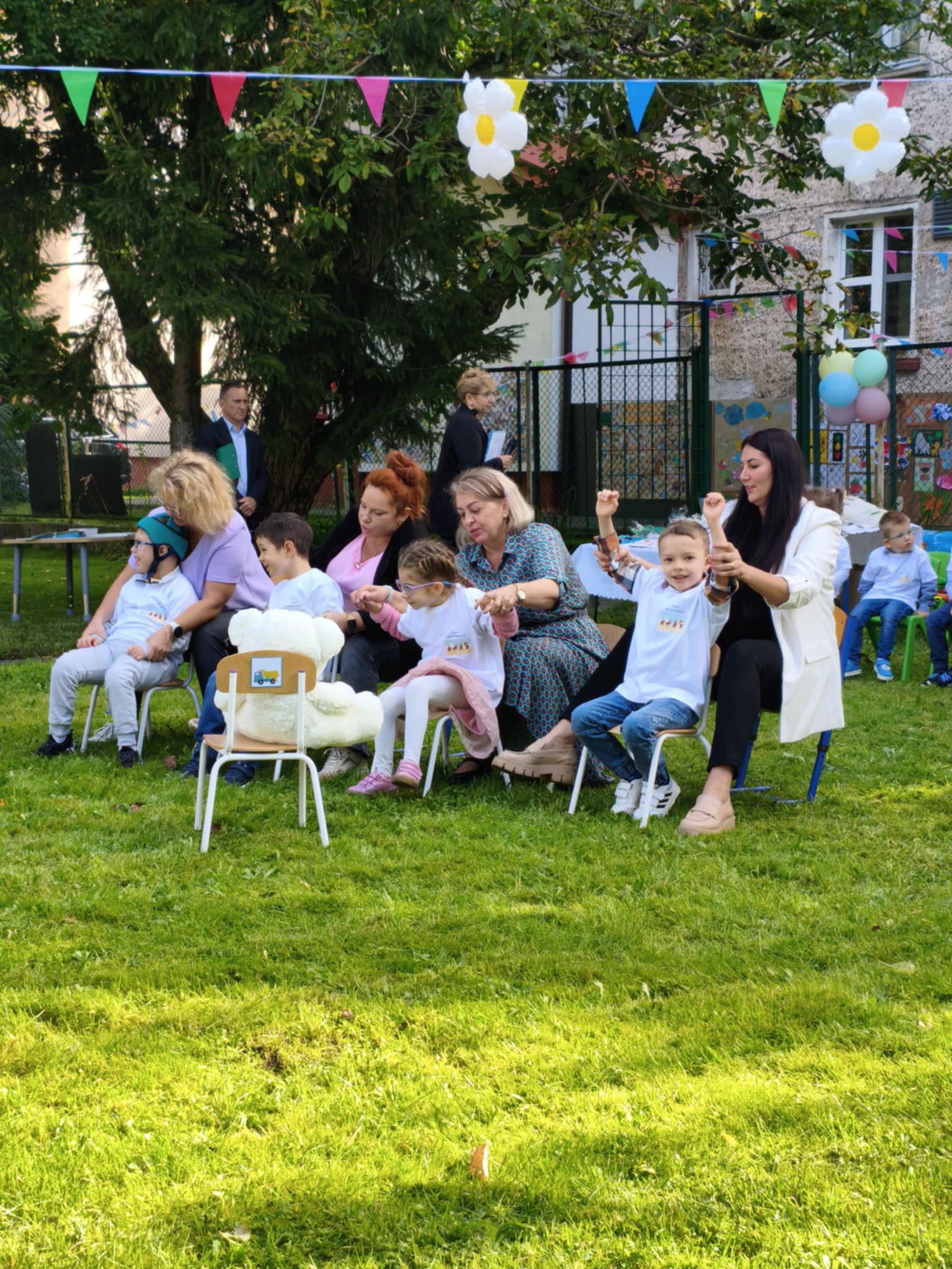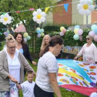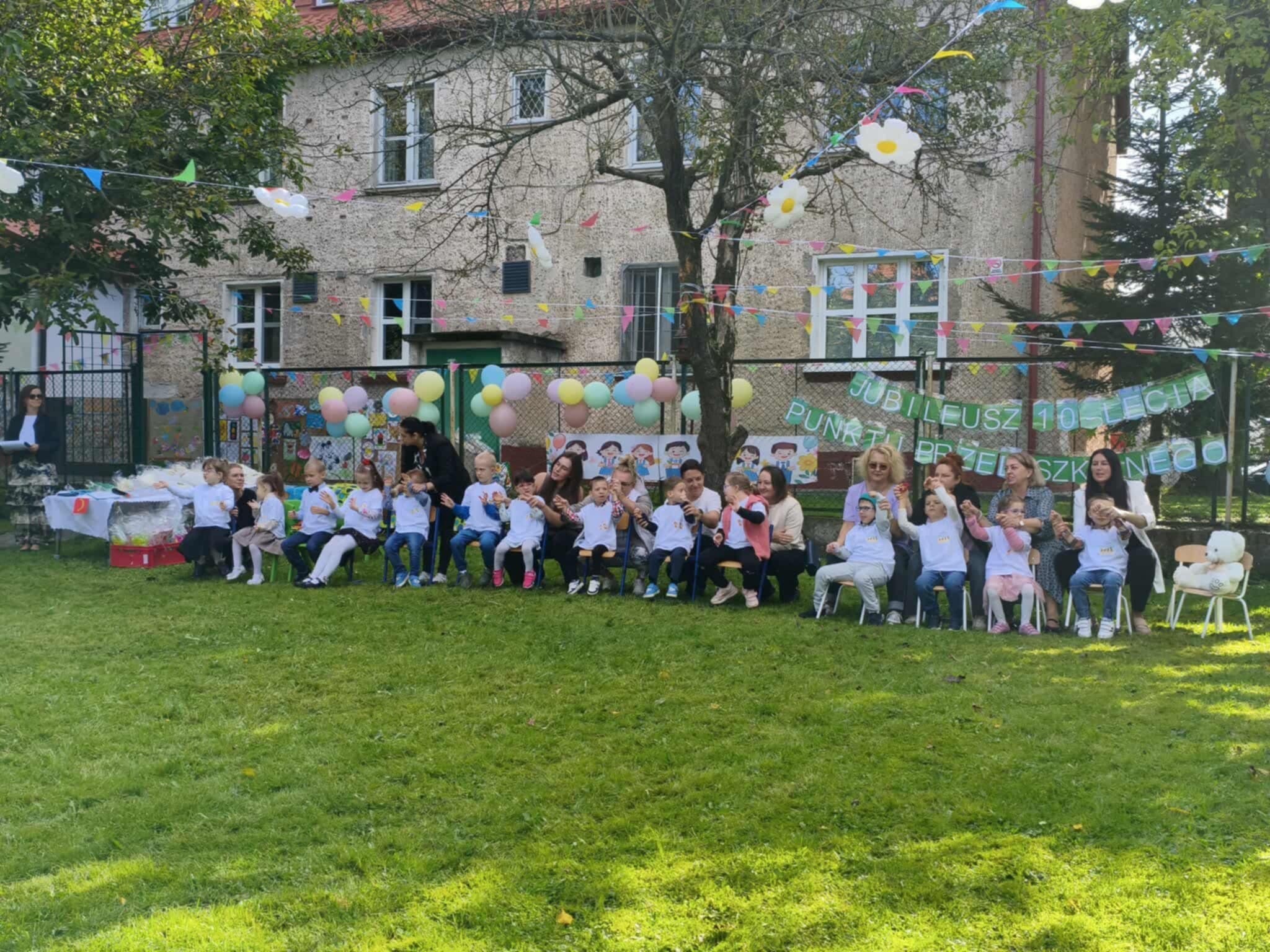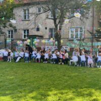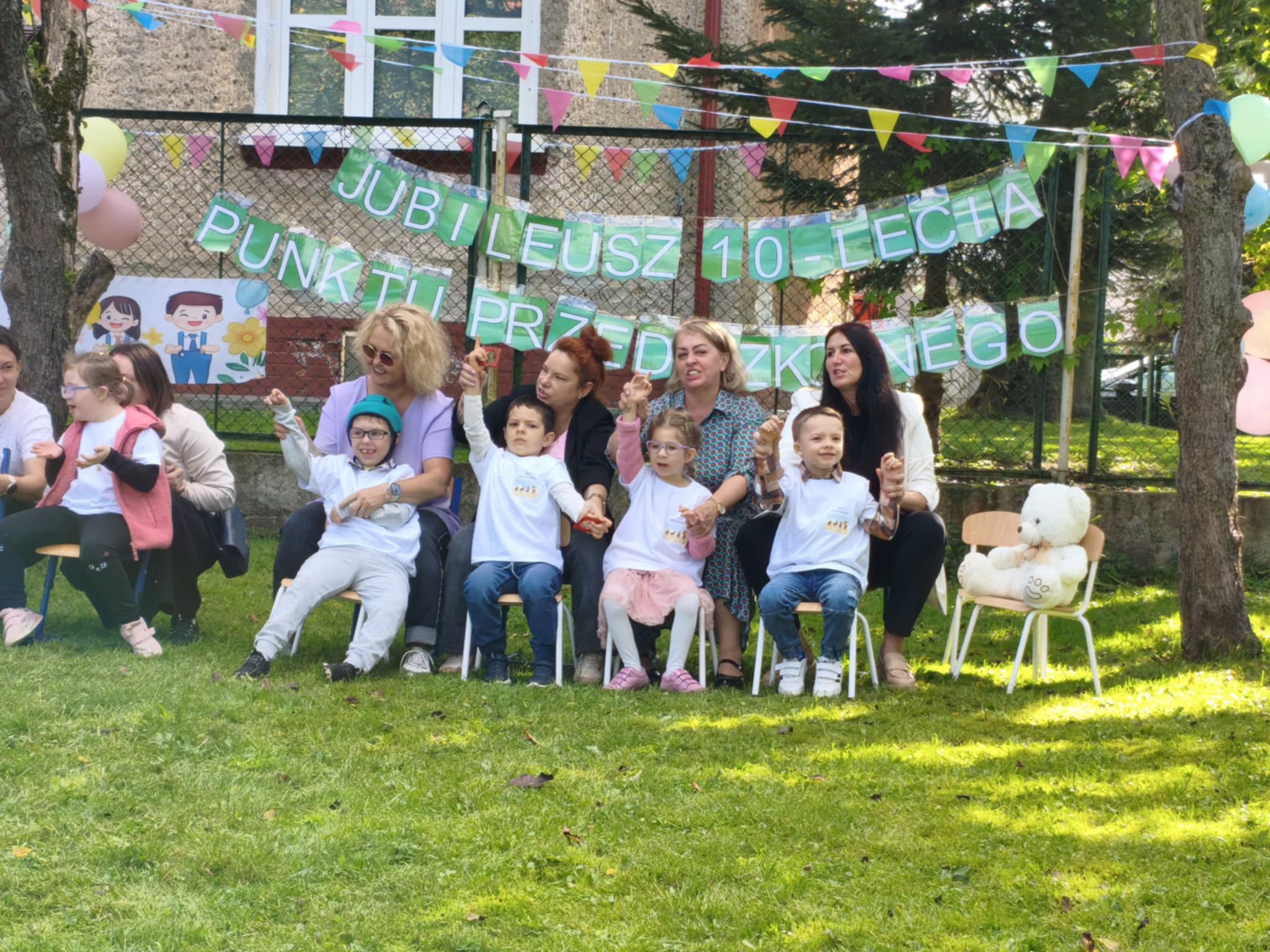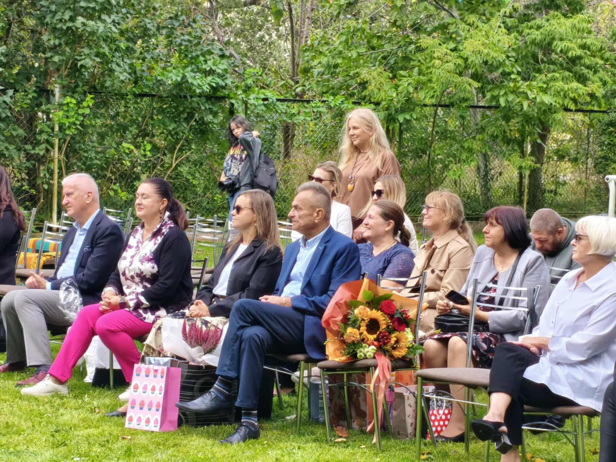 W dniu 19 września 2025r w Naszym Przedszkolu odbyła się niezwykła uroczystość. W odświętnie udekorowanym ogrodzie cała społeczność przedszkolna wraz z Dyrekcją Ośrodka i zaproszonymi gośćmi świętowała Jubileusz 10-lecia przedszkola. Na uroczystości pojawili się byli pracownicy, przedstawiciele Urzędu Miasta w tym przedstawicielki Departamentu Edukacji, wiceprzewodniczący Rady Miejskiej Antonii Czyżyk, Pani Jolanta Pękała oraz Pani Dyrektor SOSW nr 2 Krystyna Miezio-Rozmiarek. Nie zabrakło również Pani Joanny Leśkiewicz, która od początku pełniła funkcje kierownika nowo powstałego punktu przedszkolnego. Obecna Pani kierownik Kamila Kisiel wygłosiła wspaniałą przemowę, podziękowała za cudowną współpracę oraz życzyła dalszych sukcesów zawodowych zespołowi przedszkola.