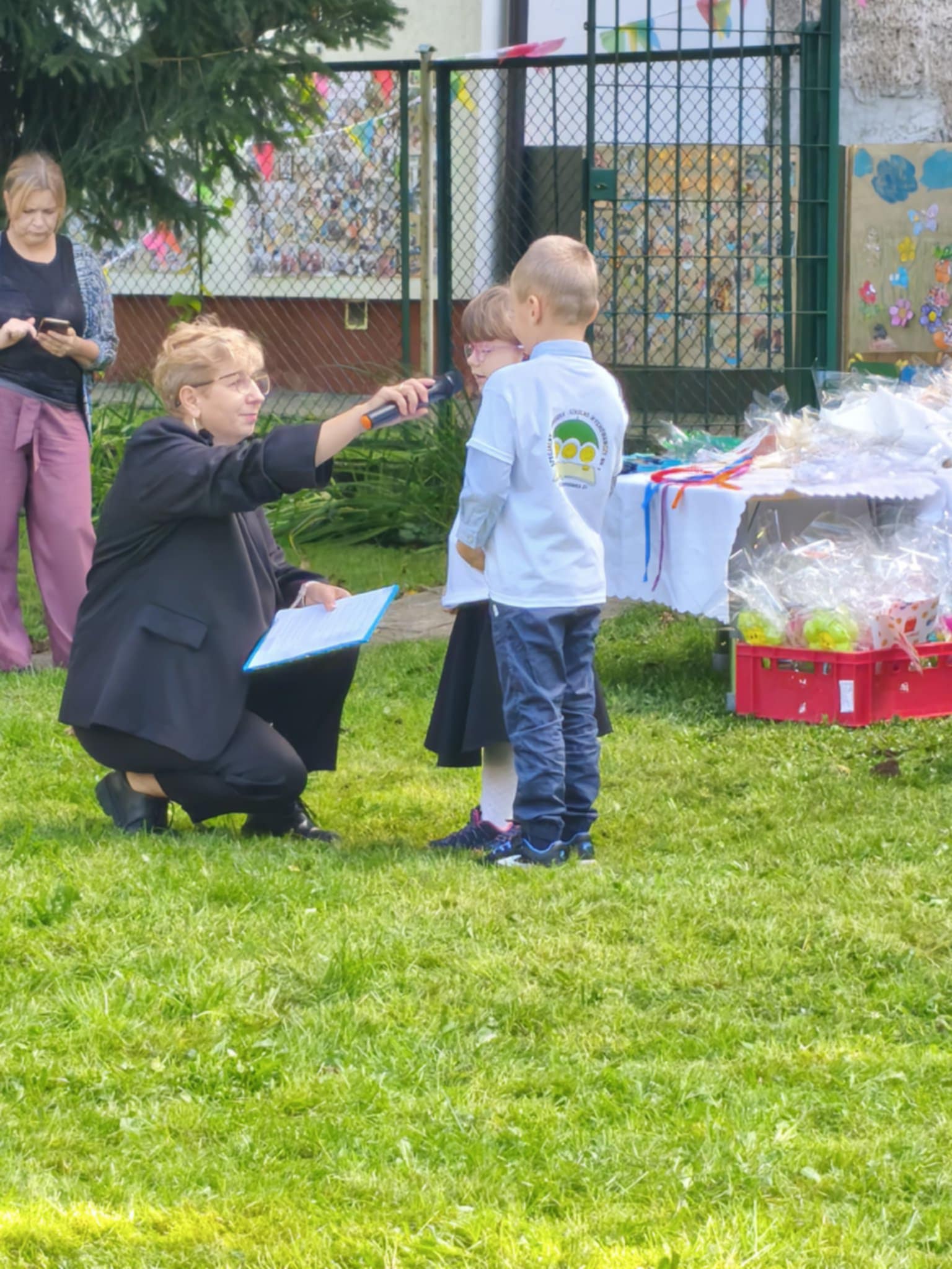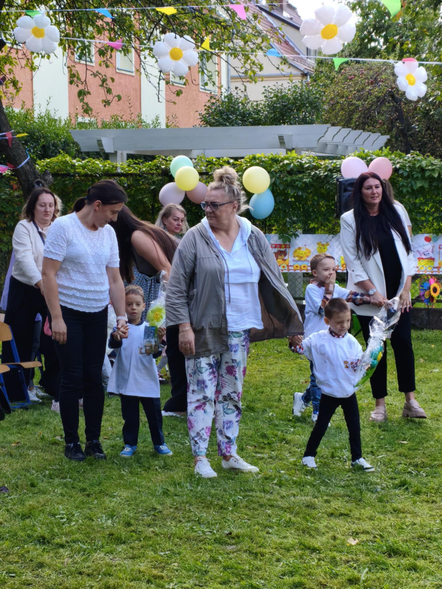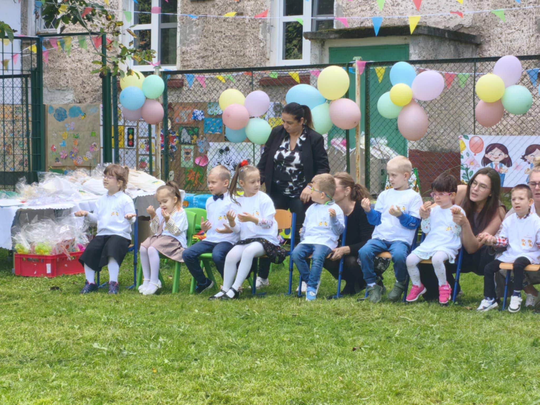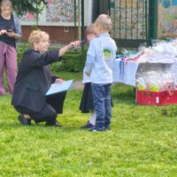 Na zakończenie uroczystości dzieci i goście otrzymali prezenty, były życzenia, kwiaty, pyszny tort i wspólne zabawy przy muzyce.