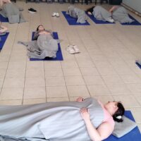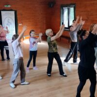 Kolejny dzień przywitał nas piękną, słoneczną pogodą. Zajęcia rozpoczęliśmy od tańca hiszpańskiego z panią Magdaleną Siwecką, która wprowadza nas w tajniki flamenco. Ćwiczyliśmy również równowagę podczas figur baletowych, oraz poznawaliśmy nowe tańce w kręgu. Bębny i muzyka dalekiego wschodu wyciszyła nasze emocje podczas zajęć z Mindfulness&relaks. Ścieżka sensoryczna pobudziła nasze receptory a wieczorem tradycyjnie było szaleństwo dyskotekowe.