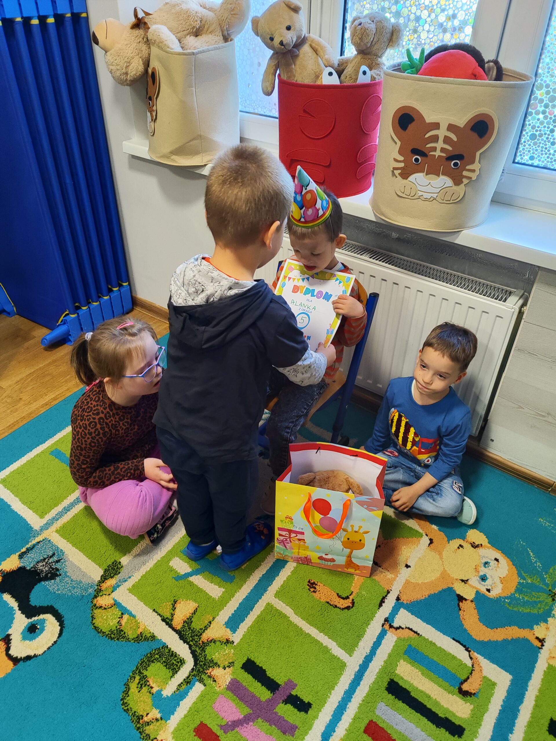 W środę 24 września w grupie Tygryski Urwiski świętowaliśmy 5 urodziny Alana. Wspólnie zaśpiewaliśmy „STO LAT” i złożyliśmy urodzinowe życzenia. Alan bardzo ucieszył się z otrzymanego prezentu. Tego dnia nie zabrakło również słodkiego poczęstunku oraz wesołej zabawy przy muzyce.