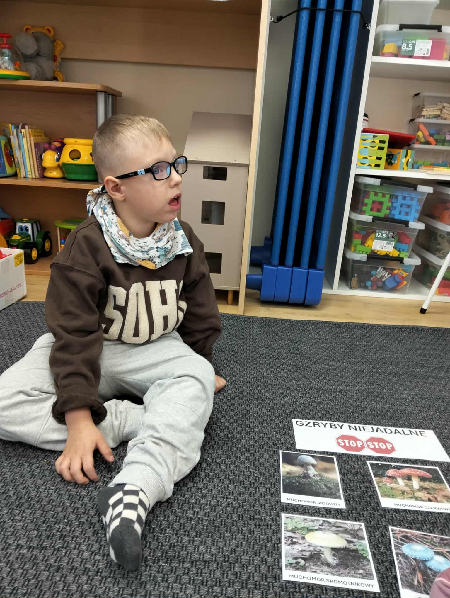 24 września – grupa ,,Pracowite mrówki” świętowała Dzień Grzyba. Była to doskonała okazja do poznania różnorodnych zabaw i aktywności. Dzieci tego dnia poznały wybrane grzyby jadalne i trujące, a także zasady bezpieczeństwa obowiązujące podczas grzybobrania. Z zaciekawieniem oglądały przyniesione do przedszkola pieczarki. Podczas zajęć przedszkolaki układały puzzle, doskonaliły umiejętności łączenia obrazków w całość a także z wielkim zaangażowaniem wykonały prace plastyczną muchomorki.