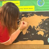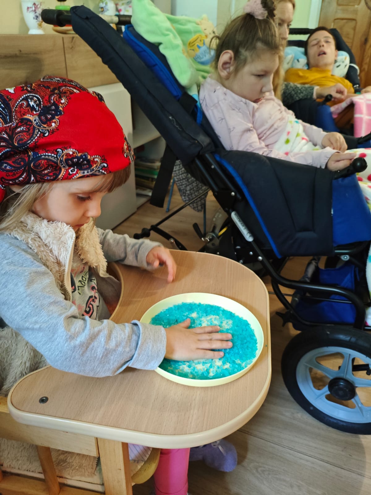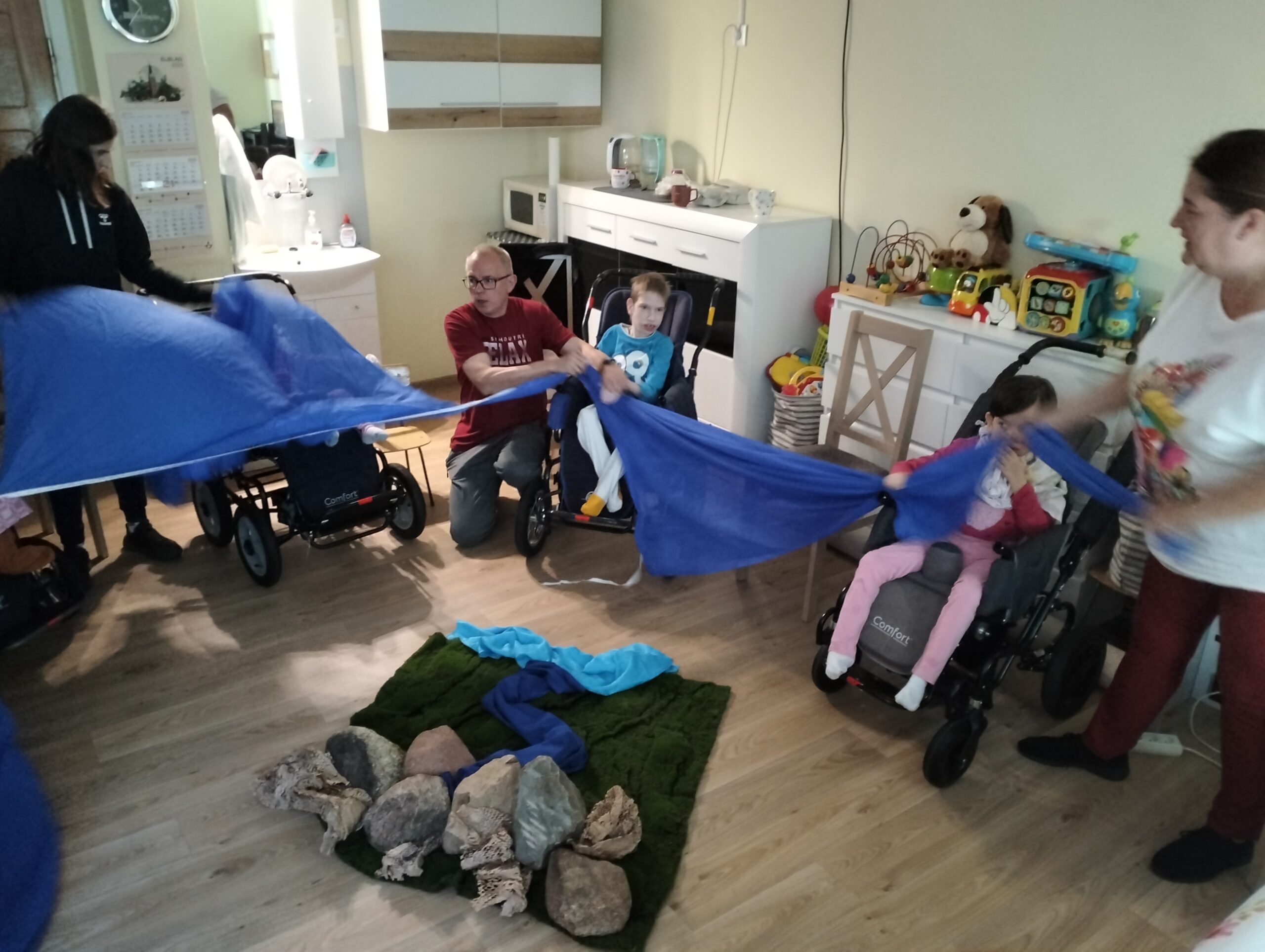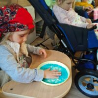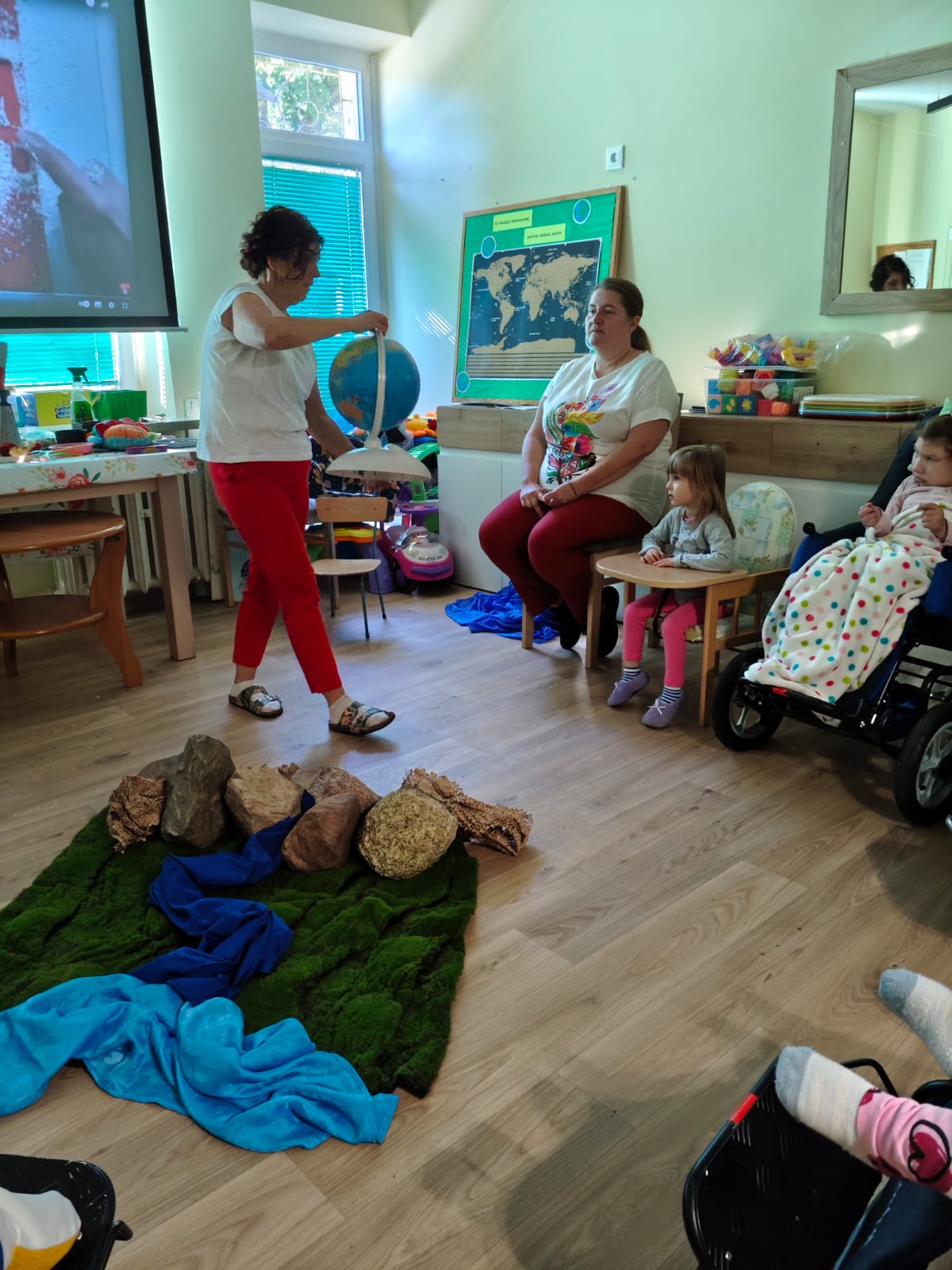 25 września uroczyście rozpoczęliśmy pierwsze zajęcia z cyklu „10 miesięcy sensorycznej podróży dookoła świata”. Pierwszym krajem, który odwiedziliśmy była Polska. Nasza podróż rozpoczęła się w górach u źródła rzeki Wisły i z jej nurtem podążaliśmy aż do Bałtyku. Odwiedziliśmy symbolicznie również Kraków, Warszawę i Toruń. Podróżując dzieci poznały Polskę wszystkimi zmysłami – dotykały skał, szyszek, soli, czerwonych korali, bursztynu, piasku, muszli. Słuchały odgłosów owiec, góralskiego śpiewu, hejnału z wieży mariackiej, dźwięków stalicy i szumu fal. Oglądały prezentację multimedialną o Polsce i symbolach narodowych, zabytkach, charakterystycznych miejscach. Wąchały i smakowały regionalnych potraw i przypraw: oscypki, sól, jabłko, miód, mleko, pierniki, śledzie. W ramach zajęć dzieci miały również możliwość usprawniania motoryki małej budując budowle z klocków, kolorowały symbole narodowe. Podsumowaniem zajęć było odnalezienie Polski na mapie świata.