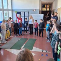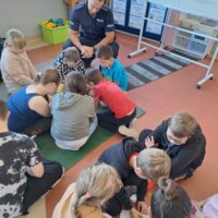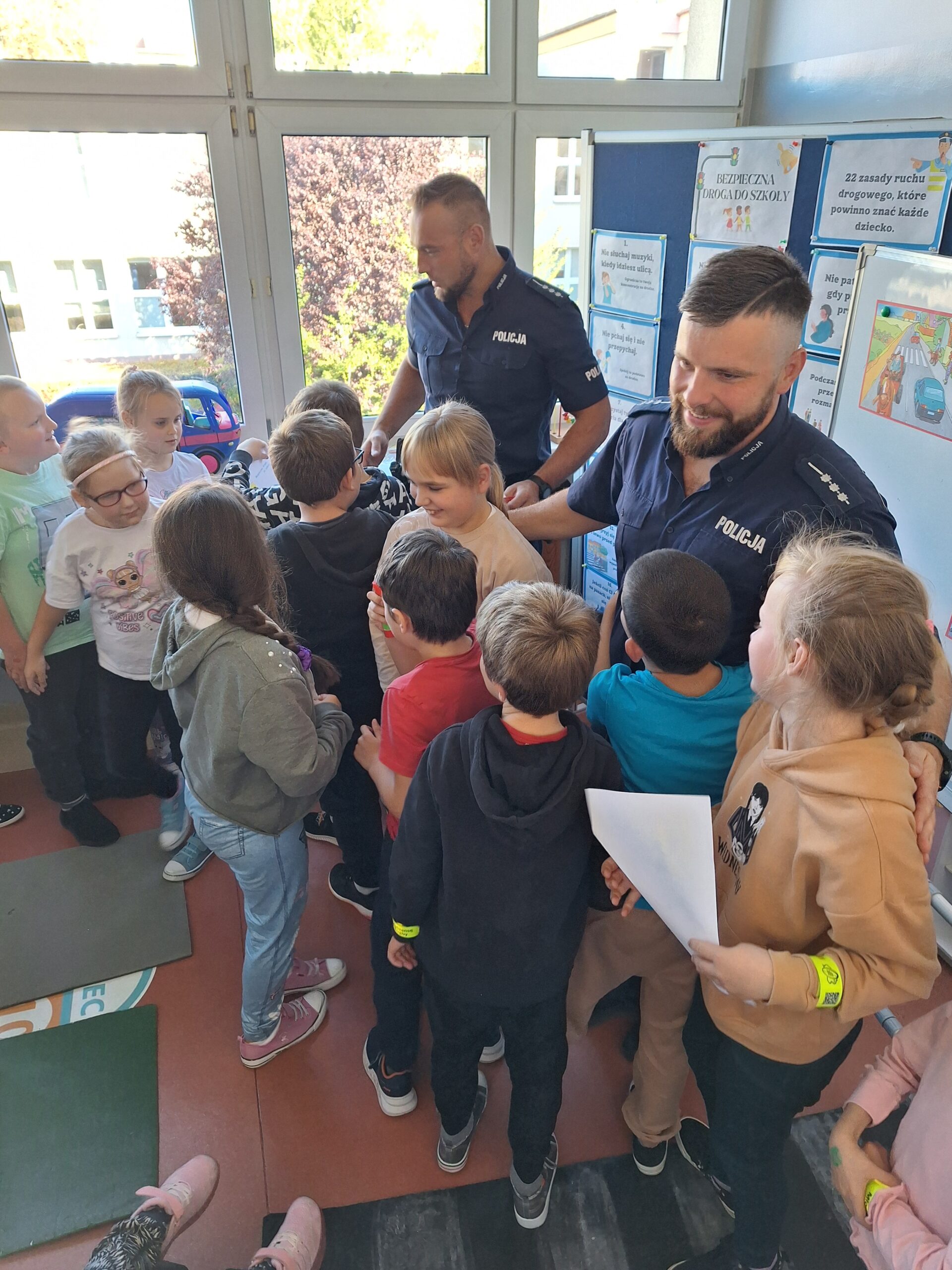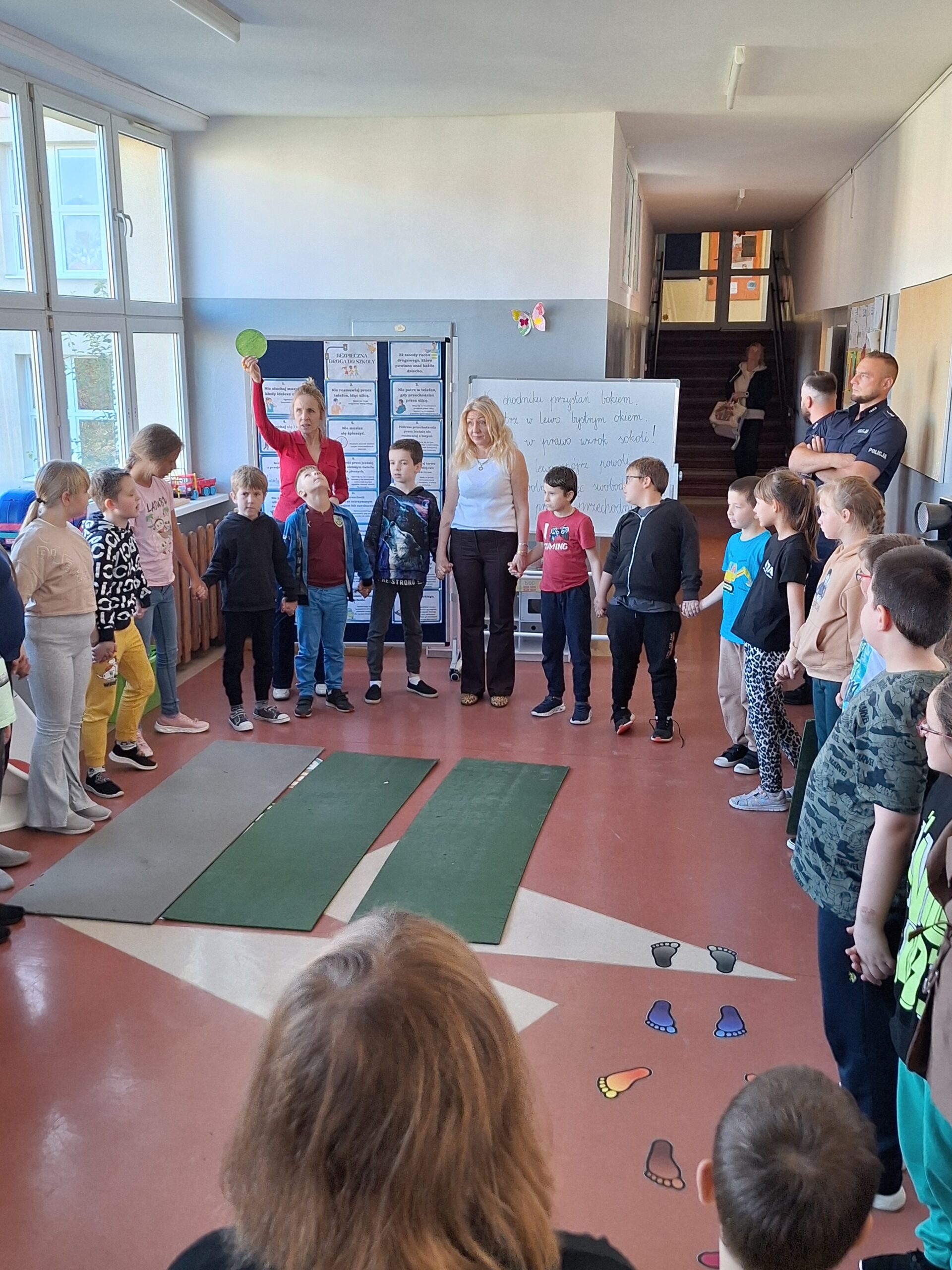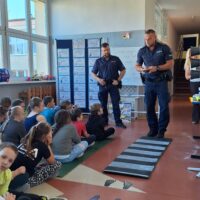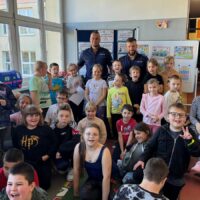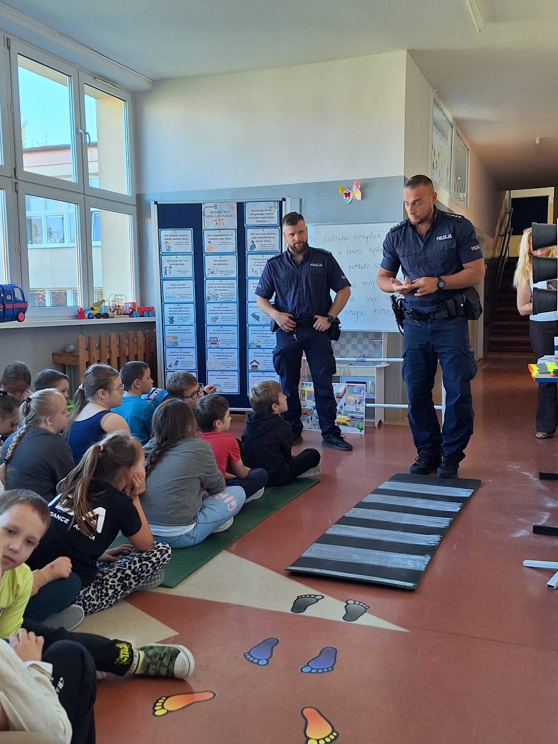 Gośćmi specjalnymi byli policjanci z miejscowej komendy, którzy w przystępny sposób opowiedzieli o tym, jak należy bezpiecznie poruszać się po drogach. Uczniowie dowiedzieli się, dlaczego tak ważne jest zwracanie uwagi na sygnalizację świetlną oraz poznali 5 podstawowych zasad przechodzenia przez przejście dla pieszych.