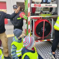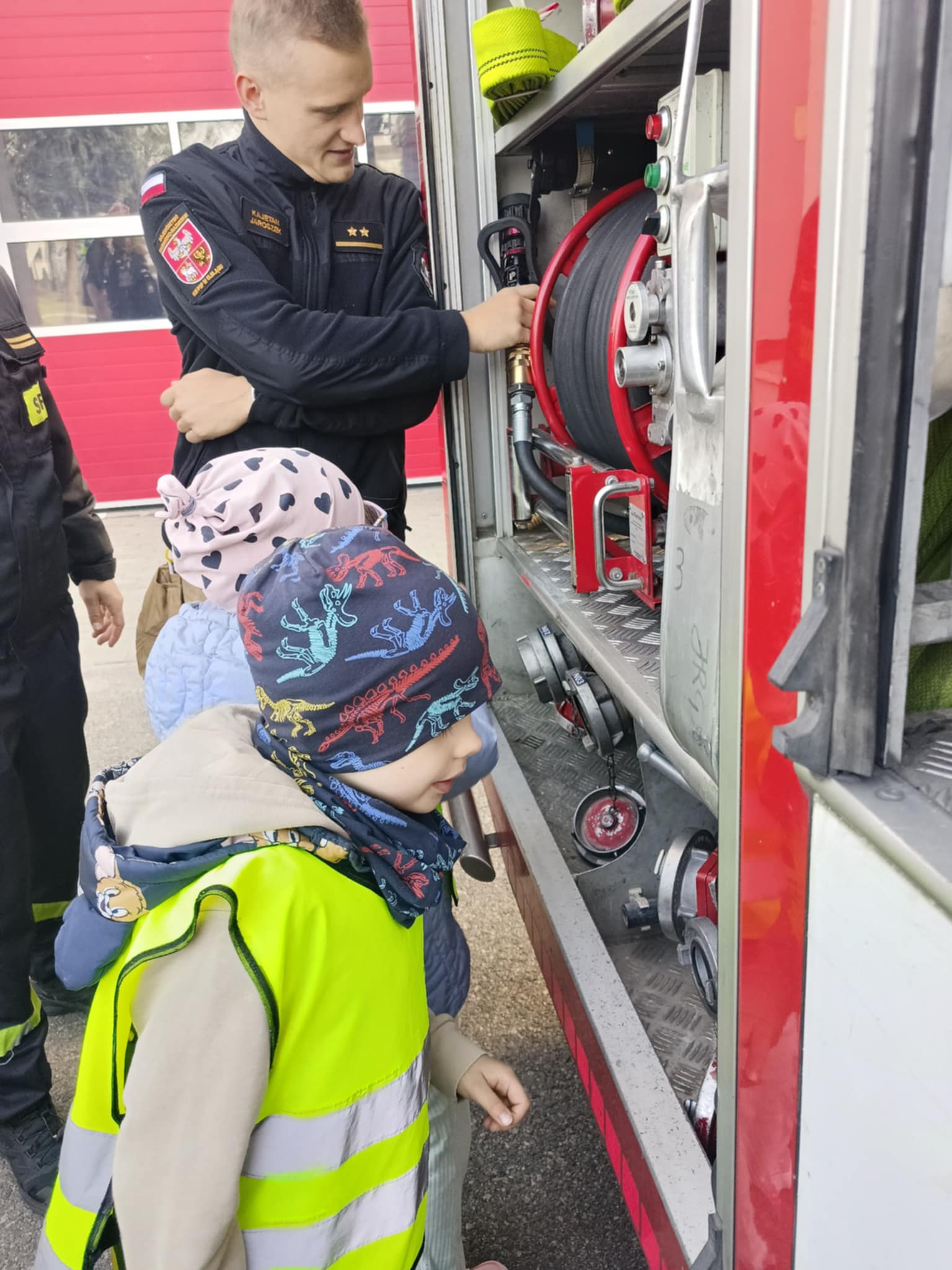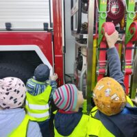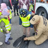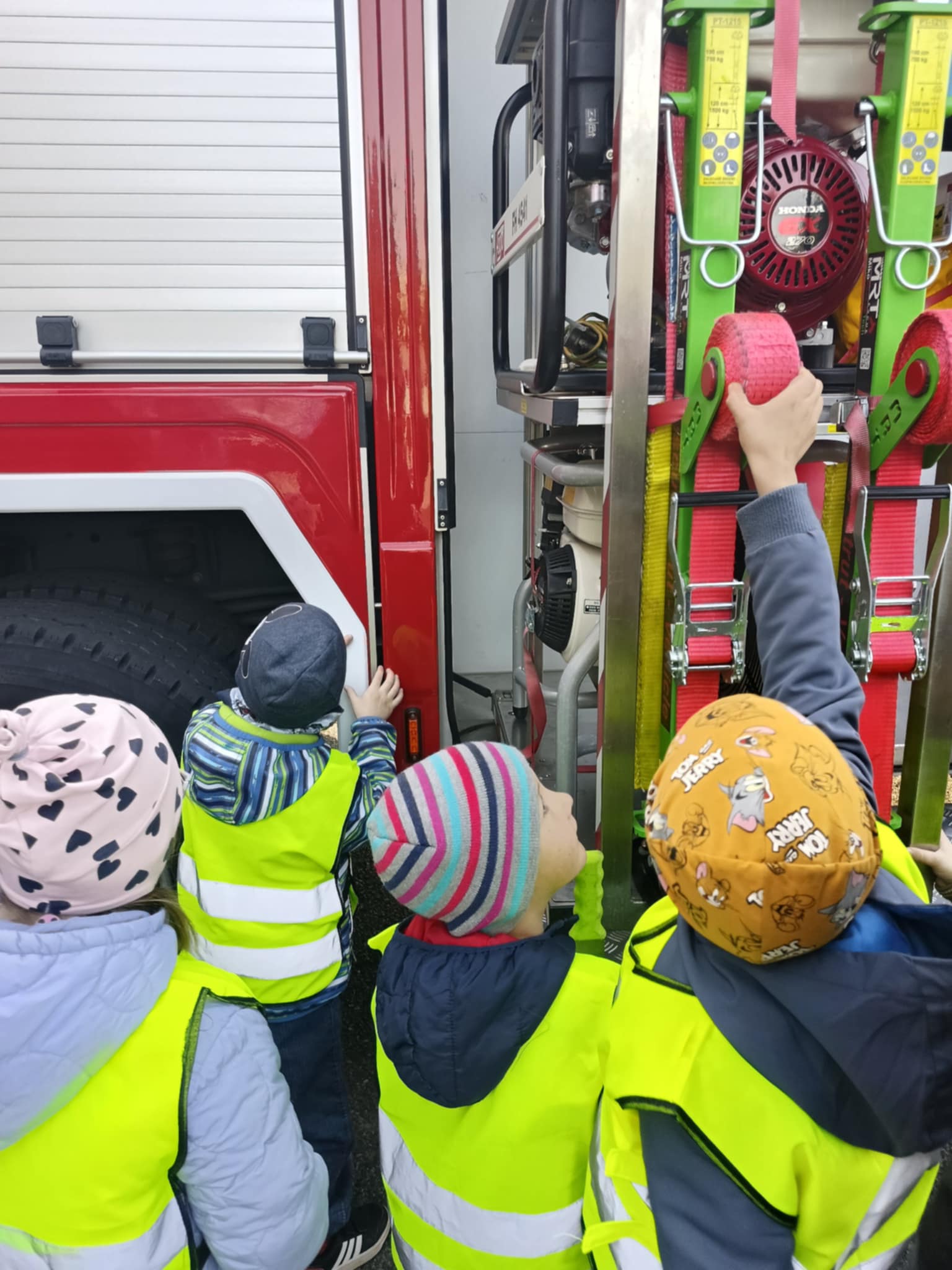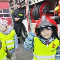 1.10 wszystkie grupy przedszkolne wybrały się na wycieczkę do Straży Pożarnej. Przedszkolaki poznały wyposażenie strażaków, dotknęły węży i różnych przyrządów pożarniczych. Dzieci dowiedziały się na czym polega praca strażaka. Wycieczka dostarczyła dzieciom wiele pozytywnych wrażeń.