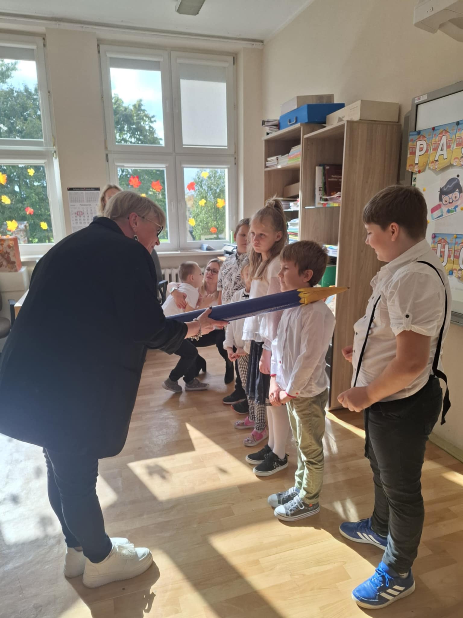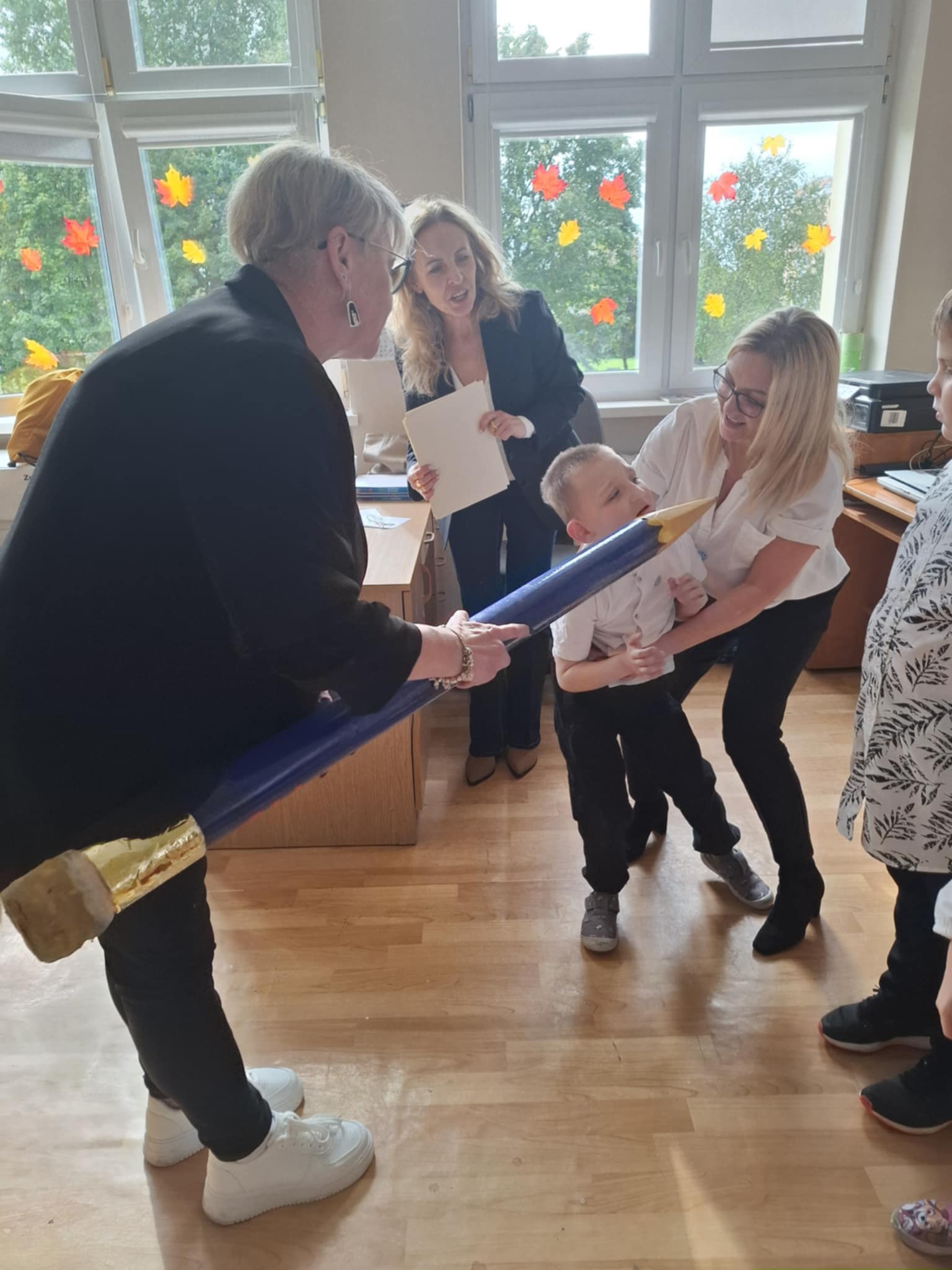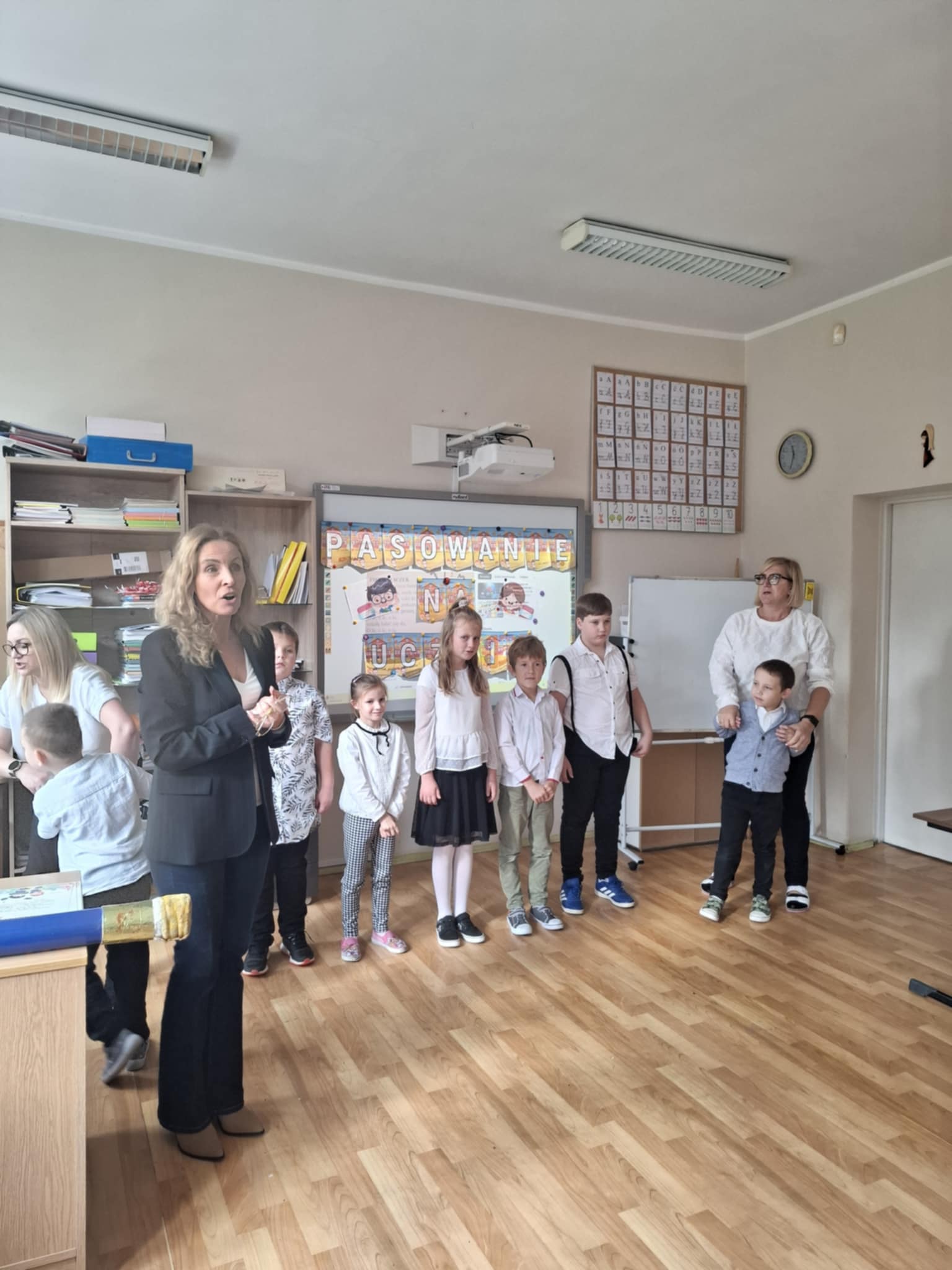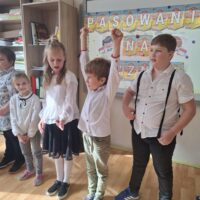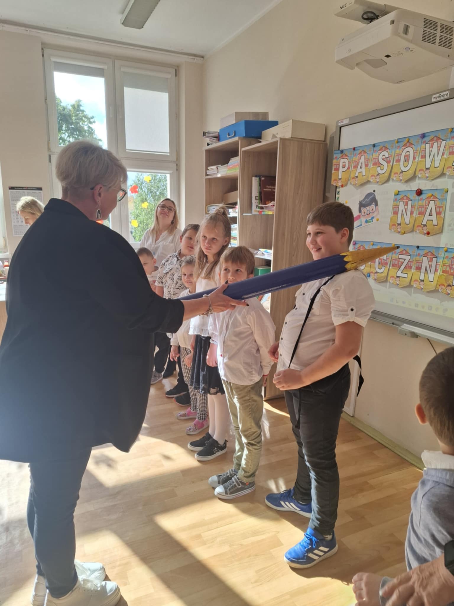 Uroczystość pasowania na ucznia rozpoczęła się od oficjalnego powitania gości. Następnie dzieci zaprezentowały przygotowany z wychowawcami program artystyczny – nie zabrakło wierszy, piosenek i uśmiechów. Mimo lekkiej tremy, mali artyści spisali się znakomicie! Kulminacyjnym punktem wydarzenia było uroczyste ślubowanie oraz akt pasowania na ucznia symbolicznym ołówkiem przez Panią Dyrektor. W ten sposób dzieci zostały oficjalnie przyjęte do grona uczniów. Każde z nich otrzymało pamiątkowy dyplom oraz drobny upominek.
