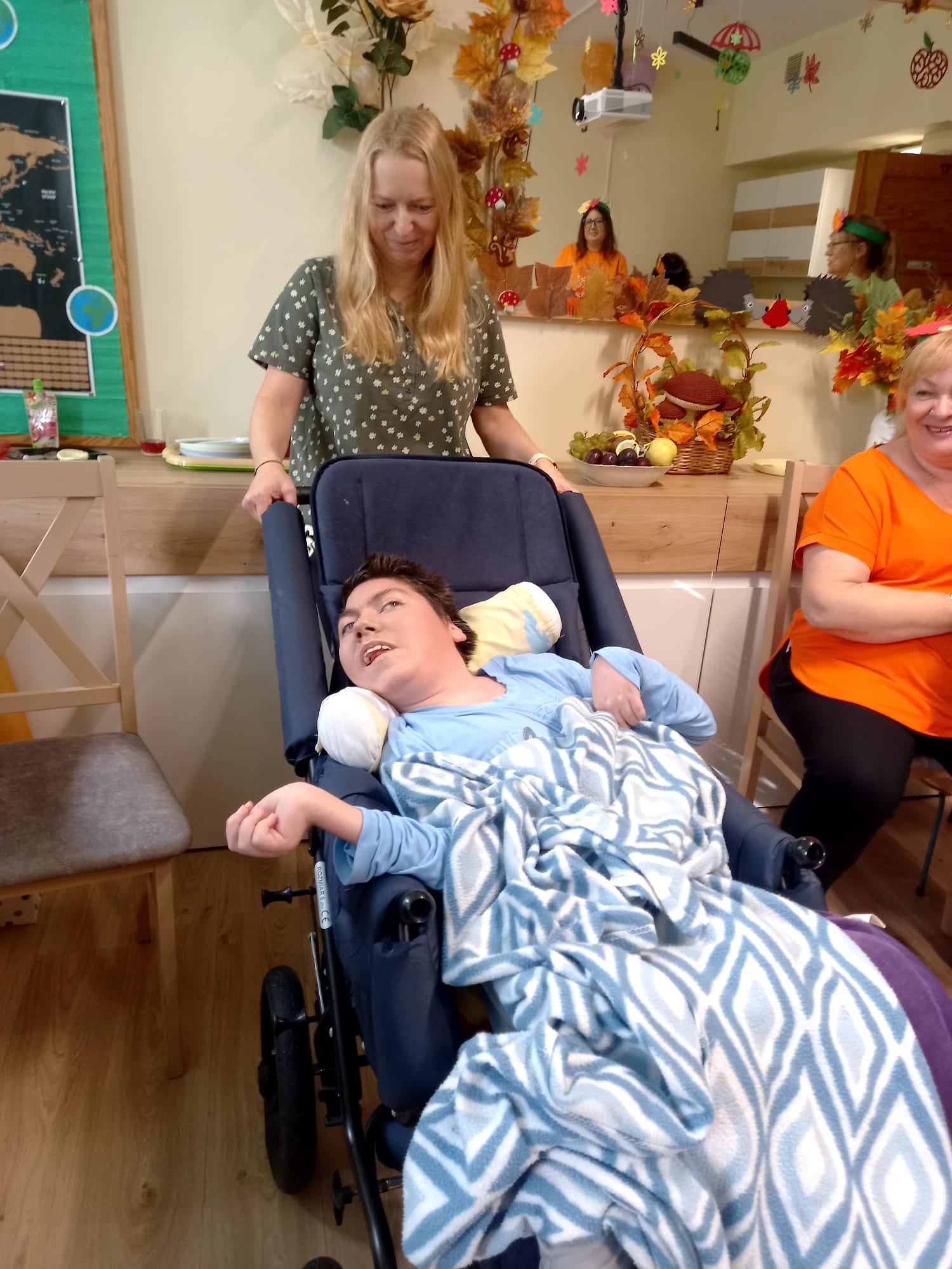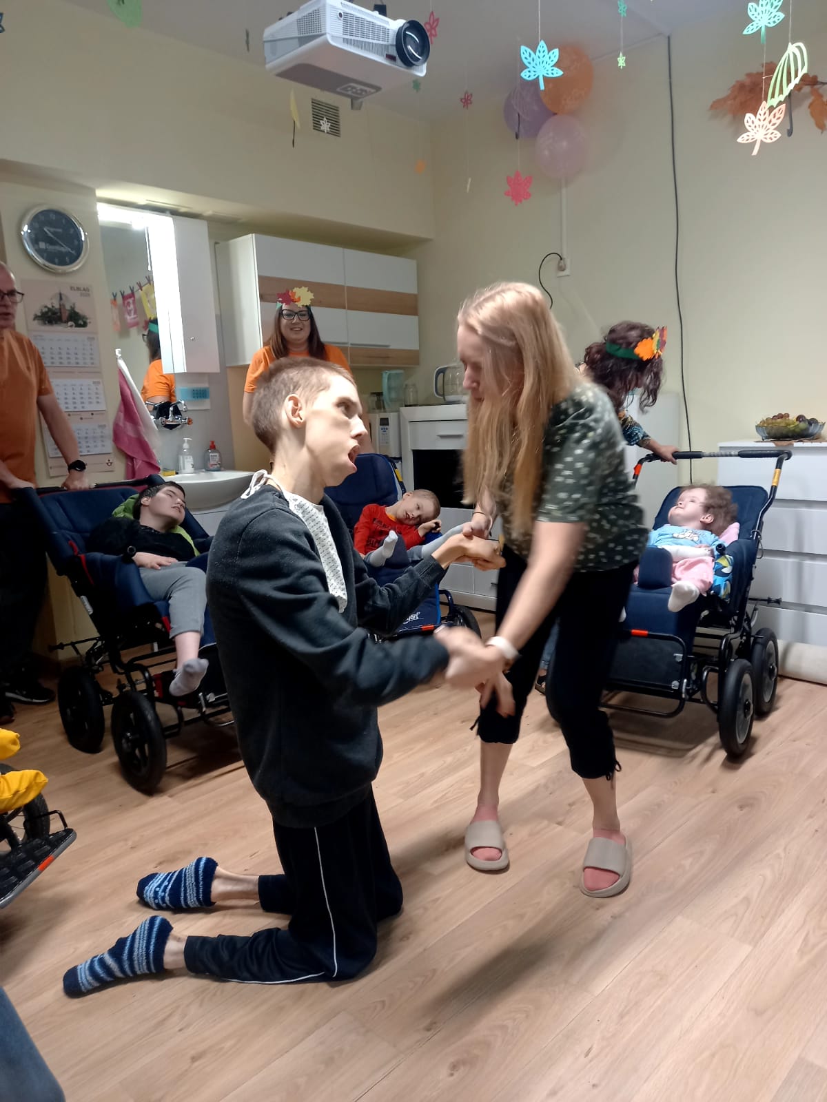 W dniu 7 października odbył się w DPS Bal Jesieni. W tym dniu było kolorowo i radośnie. Na balu królowała zabawa przy muzyce, na którą został zaproszony zaprzyjaźniony zespół Szwagry. Dla wszystkich dzieci i gości przygotowaliśmy słodki poczęstunek w postaci: kompotu, jesiennych ciast z owocami, pieczonych jabłek oraz innych owoców.