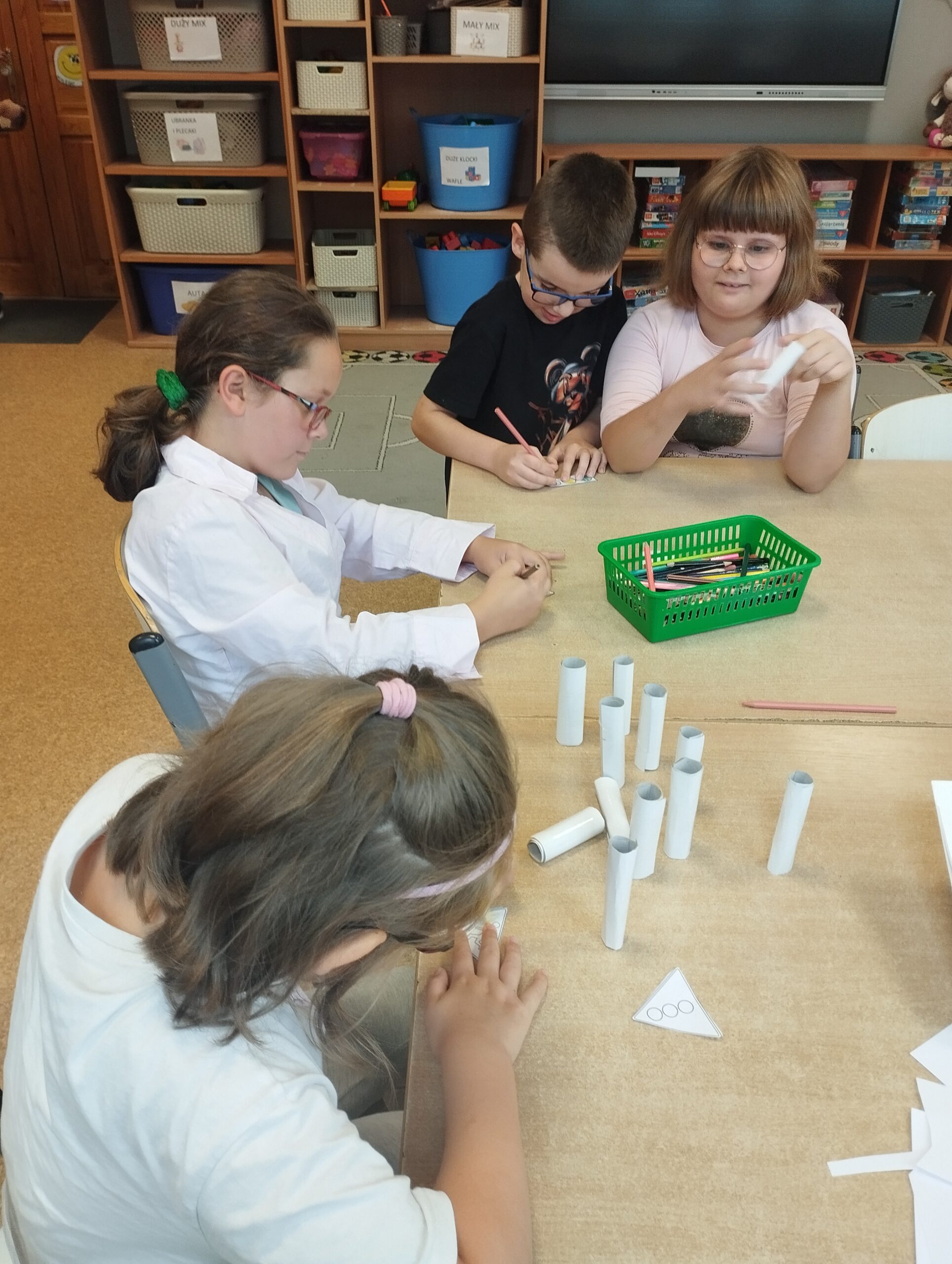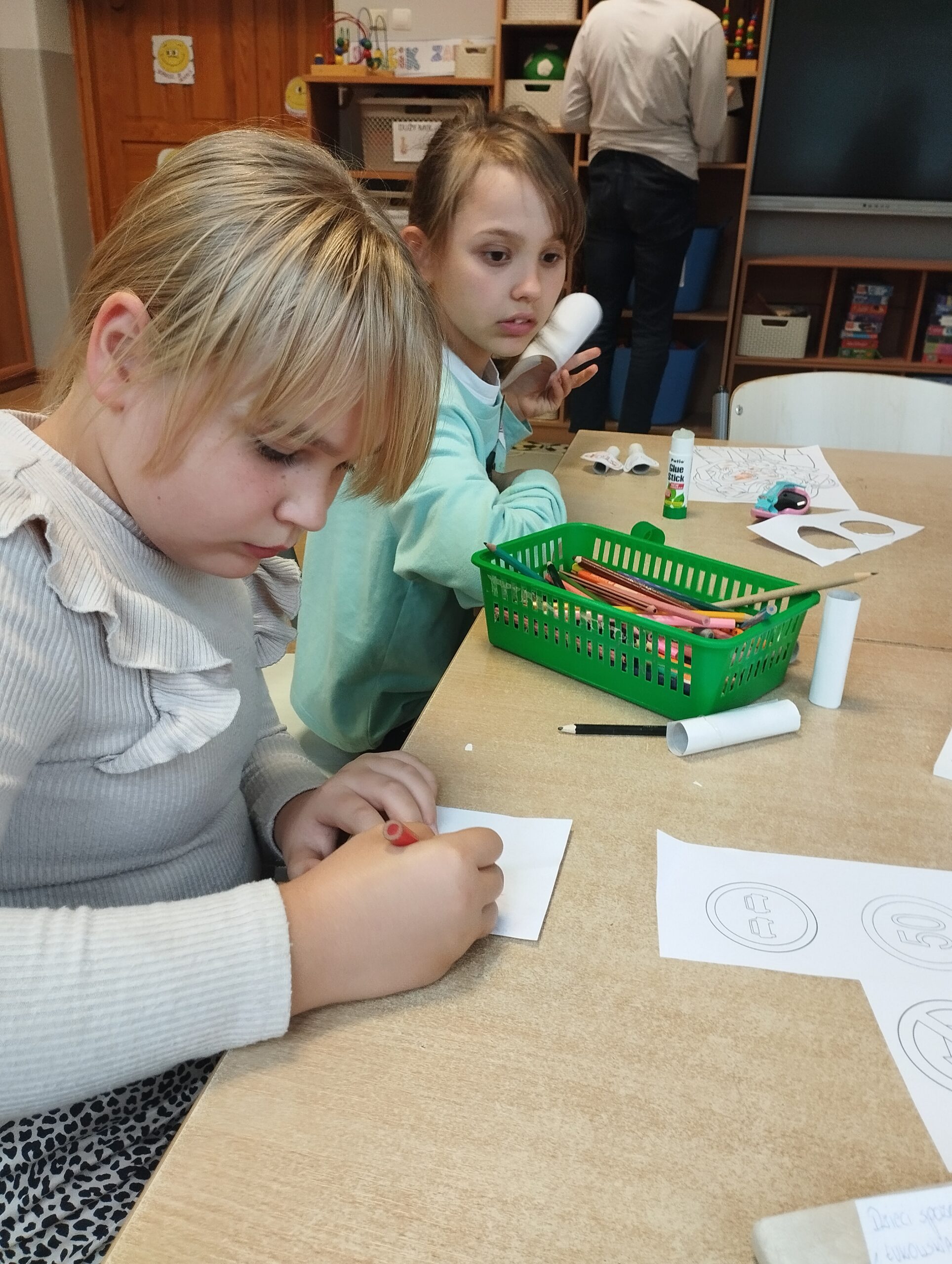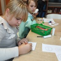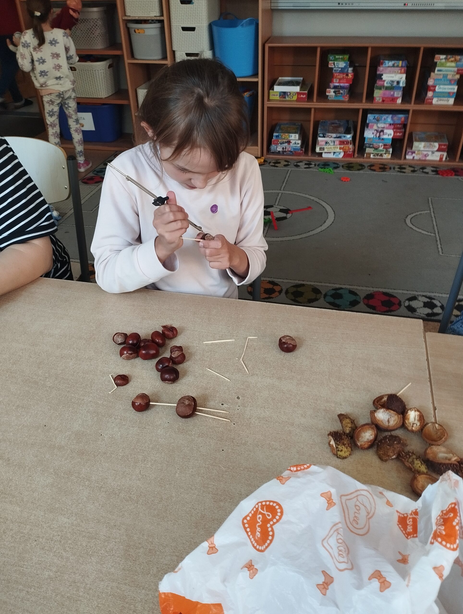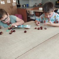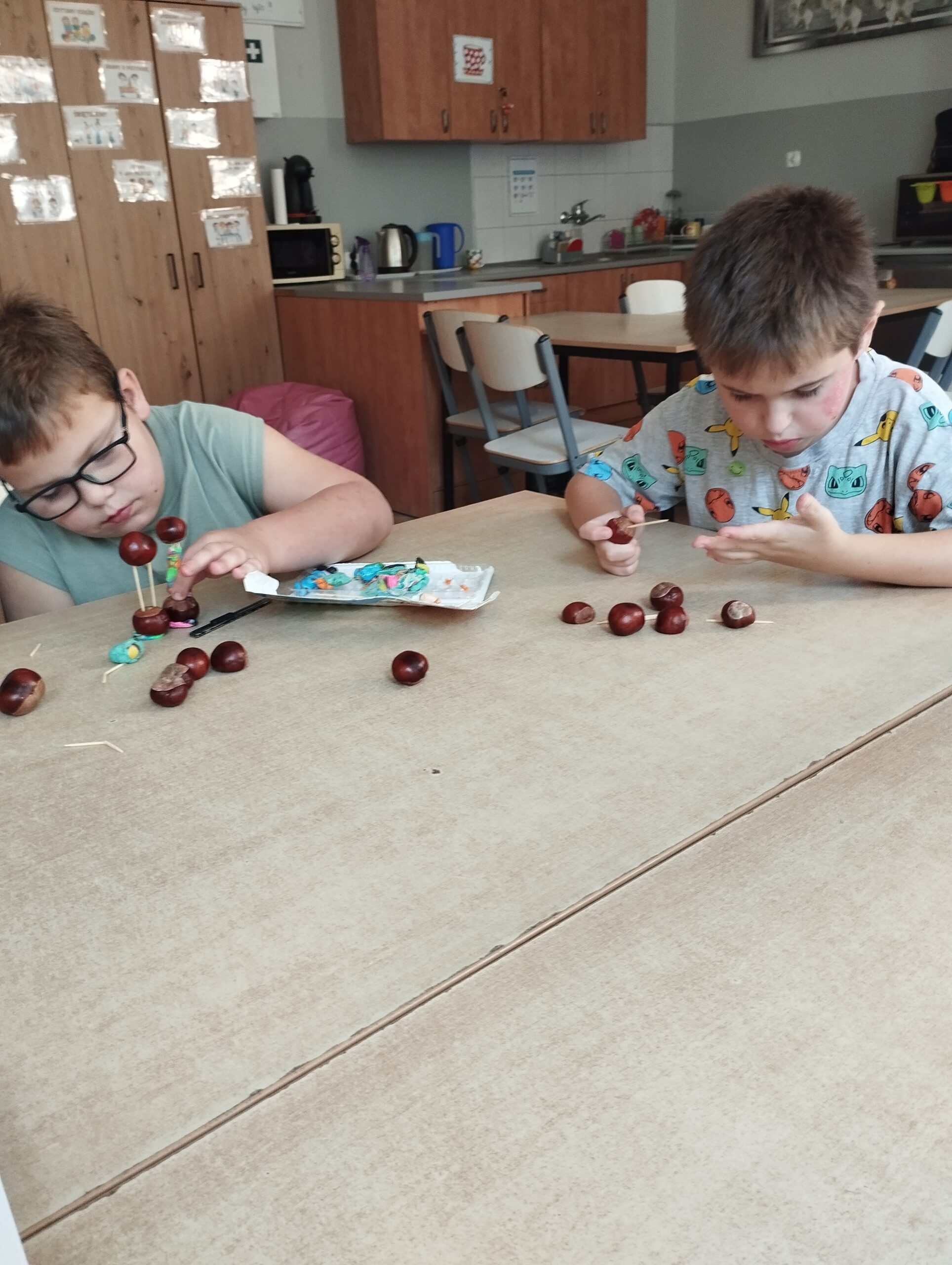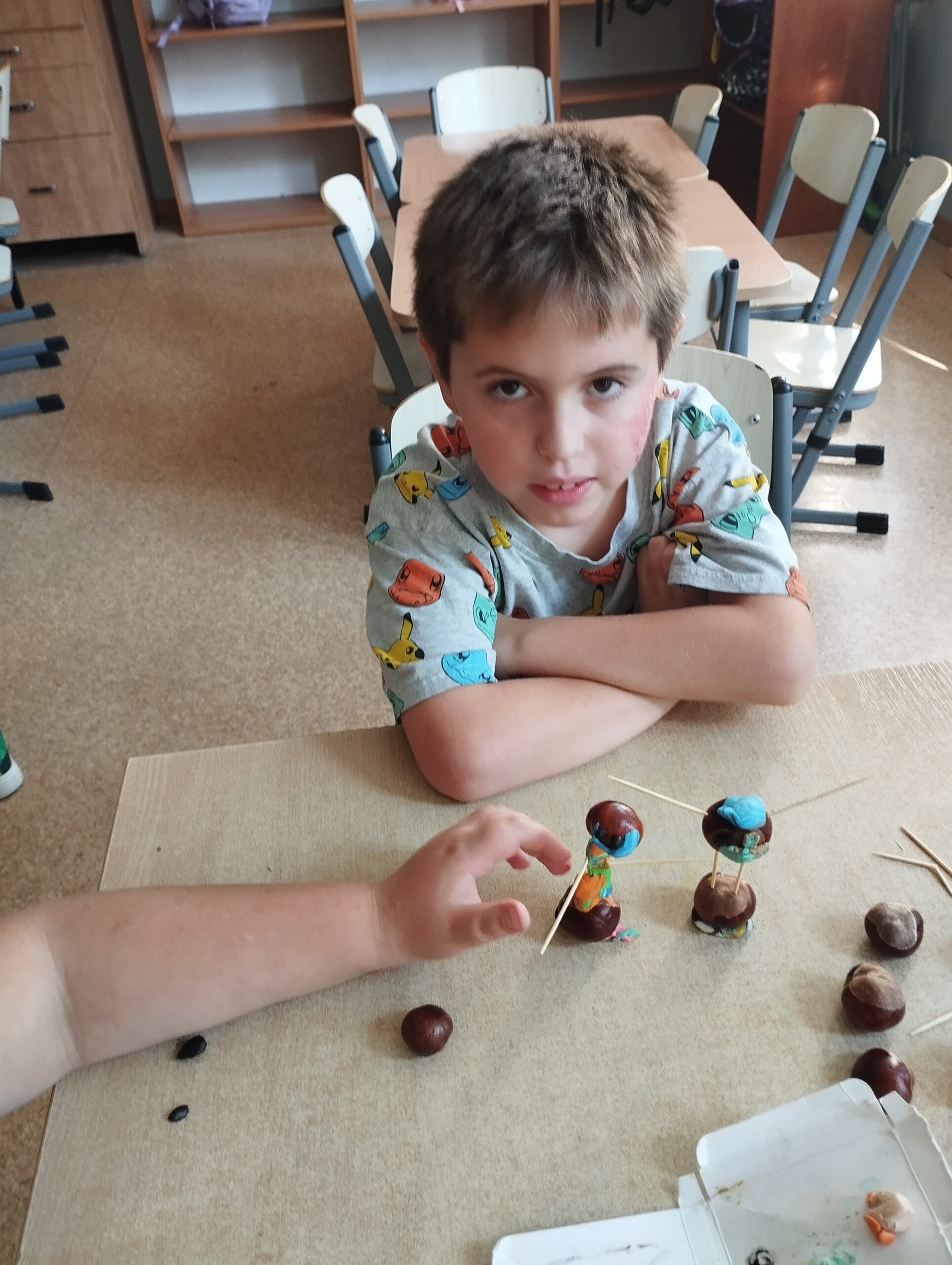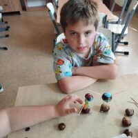 We wrześniu nie zabrakło także zajęć plastycznych. Tematyka była dostosowana do pory roku oraz aktualnych zagadnień związanych z bezpieczeństwem. Uczniowie wykonali znaki drogowe z papieru, dzięki czemu mogli utrwalić sobie zasady bezpiecznego poruszania się po drodze. Kolejnym kreatywnym pomysłem było tworzenie ludzików z kasztanów, które przyniosło dużo śmiechu i dobrej zabawy.