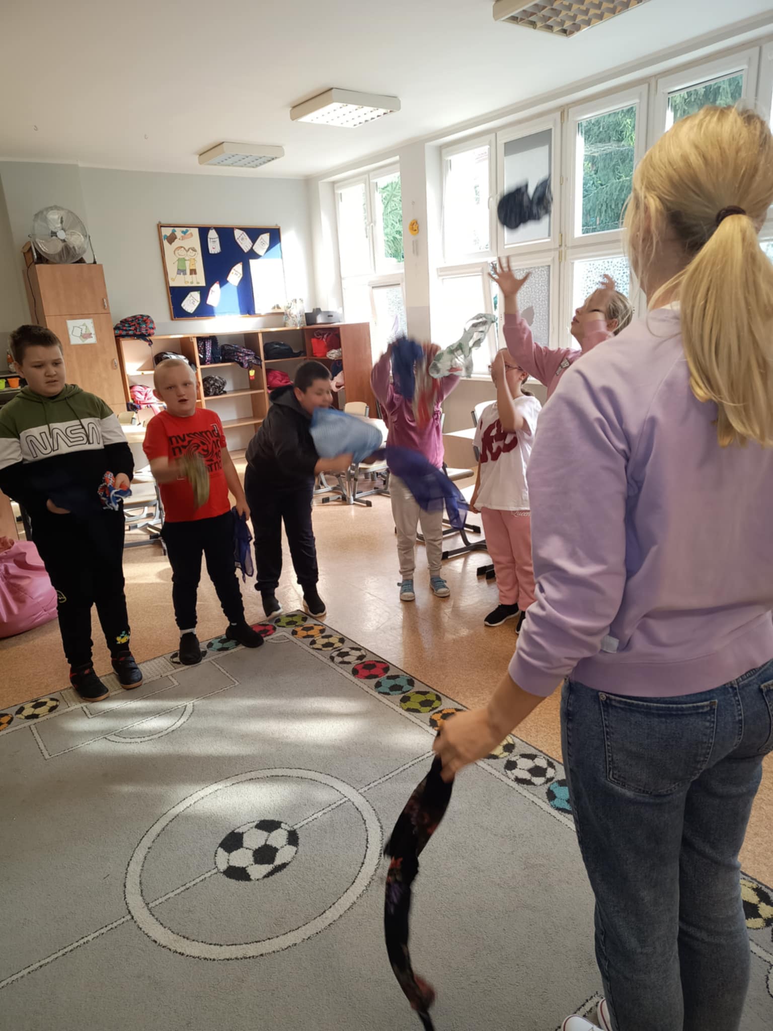 W ramach projektu edukacyjnego „Ruch to radość”. Dzieci z entuzjazmem uczestniczyły w zabawach ruchowych, ucząc się współpracy, koordynacji i równowagi. Kolorowe chustki dodały energii i radości każdemu ćwiczeniu.