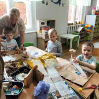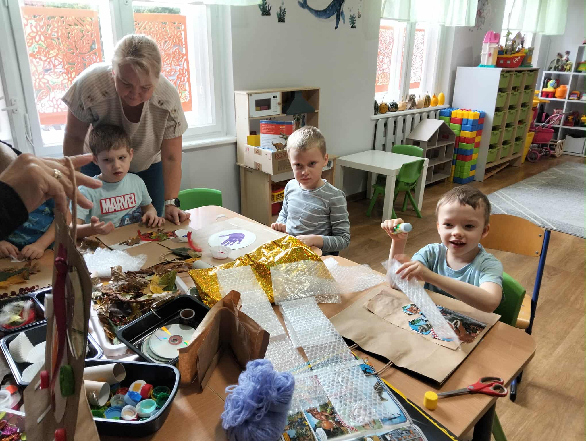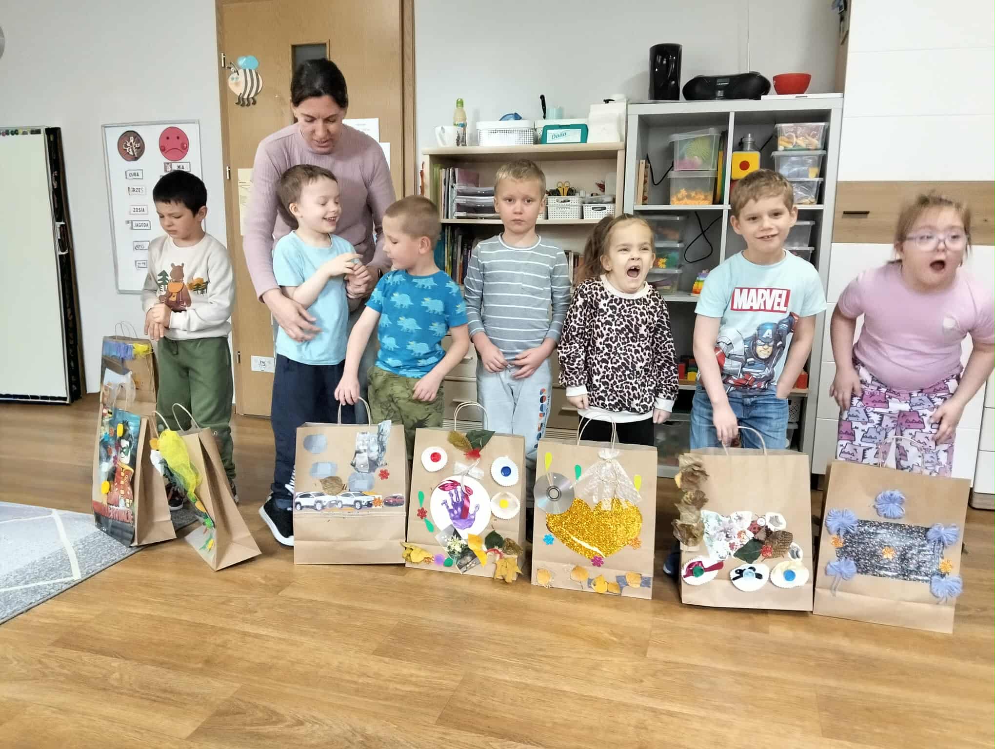 Dzisiaj w trosce o środowisko naturalne nasze przedszkolaki brały udział w warsztatach kreatywno-edukacyjnych. Podczas zajęć dzieci zaprojektowały i samodzielnie ozdobiły torby według własnych pomysłów. Torby były niepowtarzalne i oryginalne wykonane z materiałów recyklingowych. Każdy swoją eko-torbę zabrał do domu.