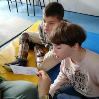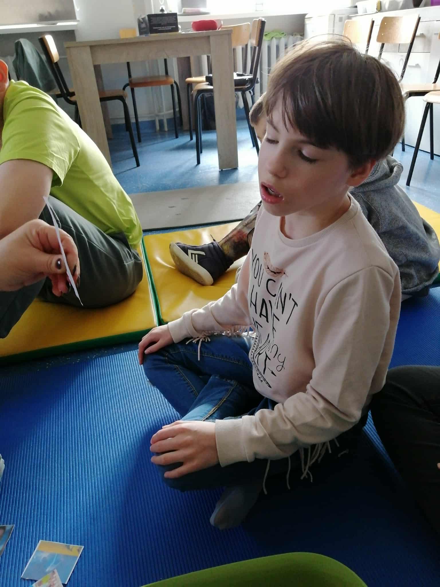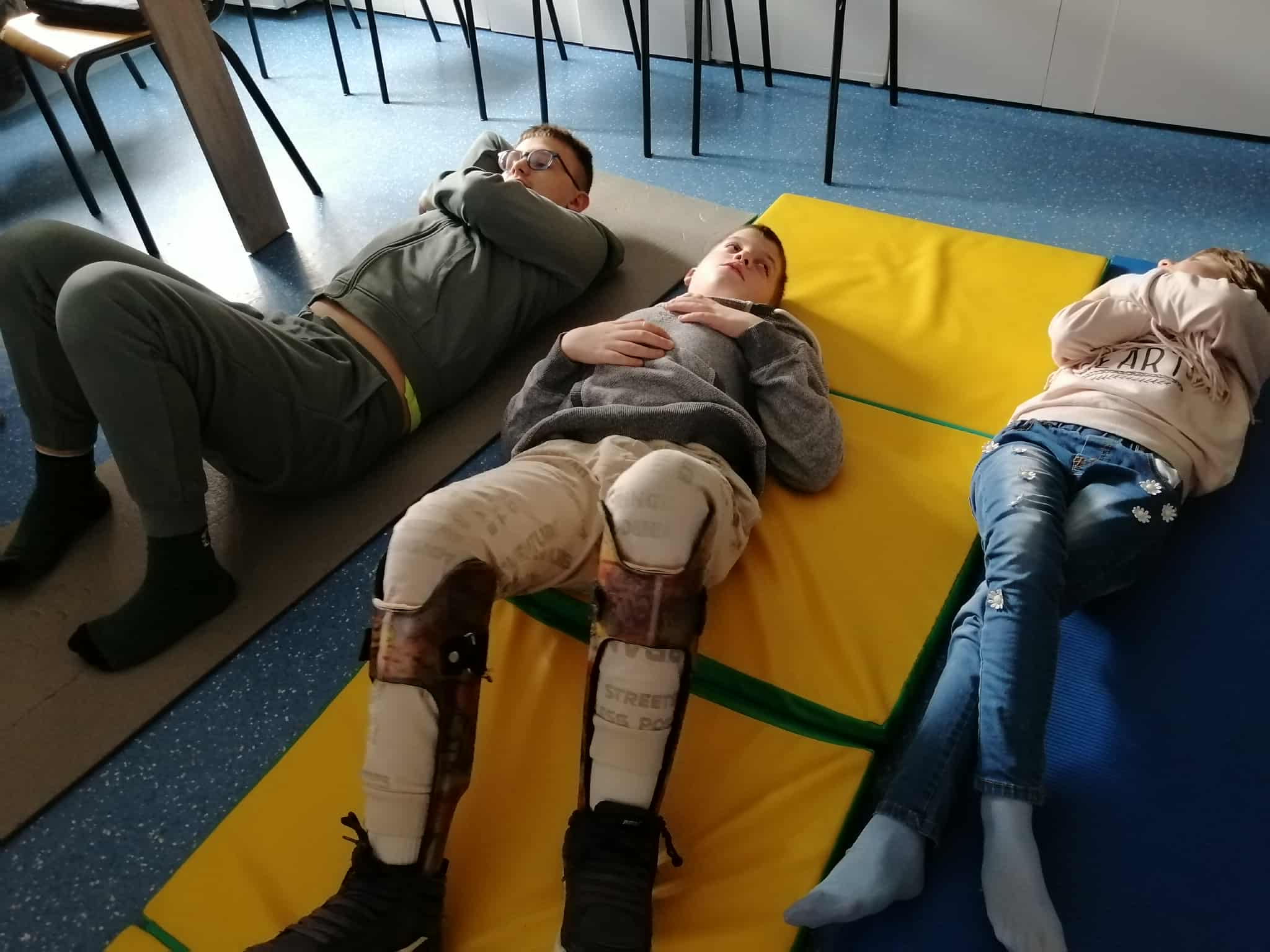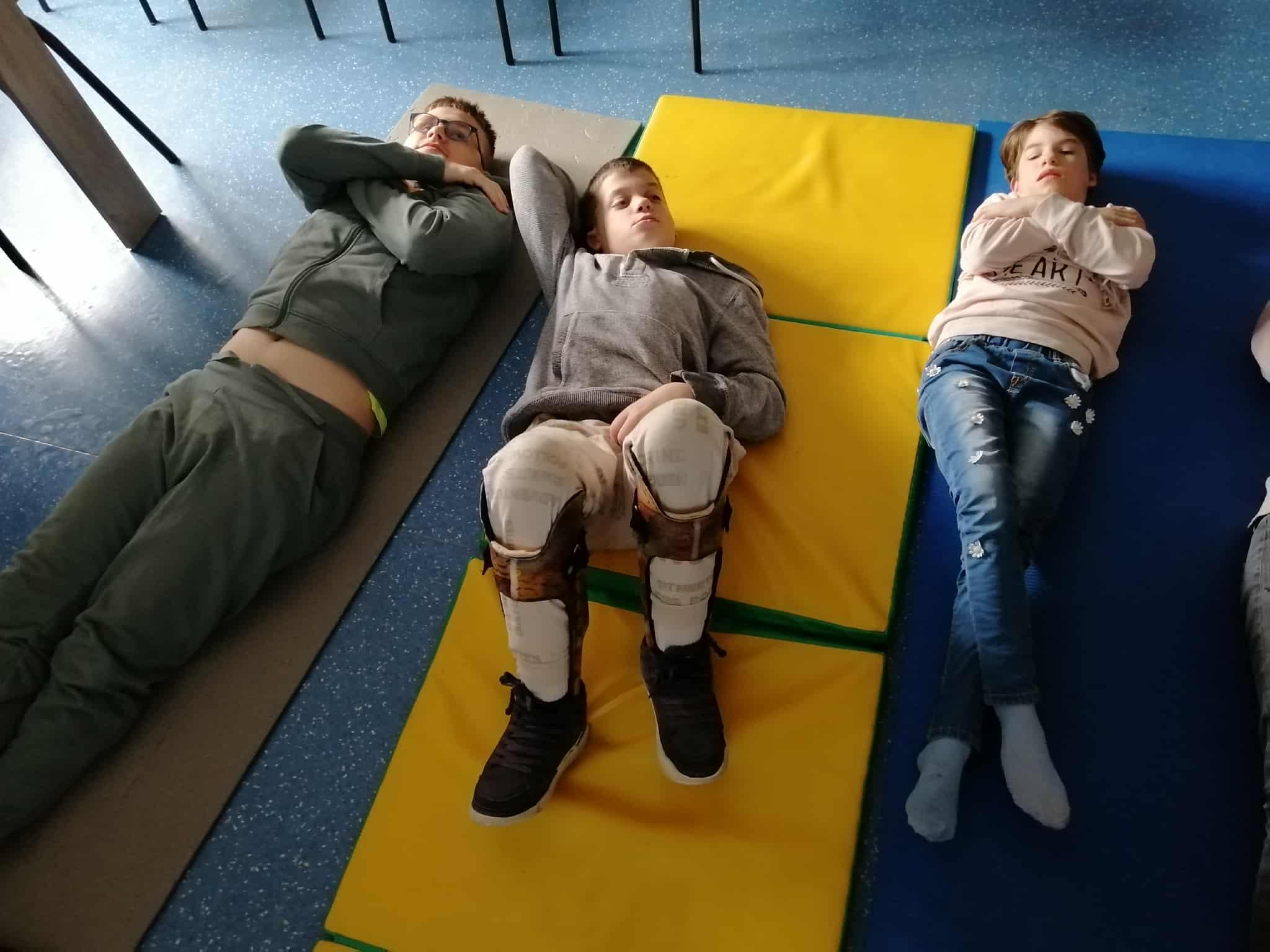 W obecnym roku szkolnym kontynuujemy innowację pedagogiczną „Dajemy dzieciom siłę- zrozum emocje, zrelaksuj głowę”. W pierwszym spotkaniu udział wzięły klasy 4c i 6a SP. Zajęcia rozpoczęłyśmy od odprężających ćwiczeń z elementami jogi dla dzieci. Następnie rozmawiałyśmy o tym, co sprawia uczniom przyjemność, a co może być nieprzyjemne. Podsumowaniem zajęć były ćwiczenia oddechowe pod nazwą „Puszysta chmurka”. Z niecierpliwością czekamy na kolejne spotkania.