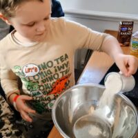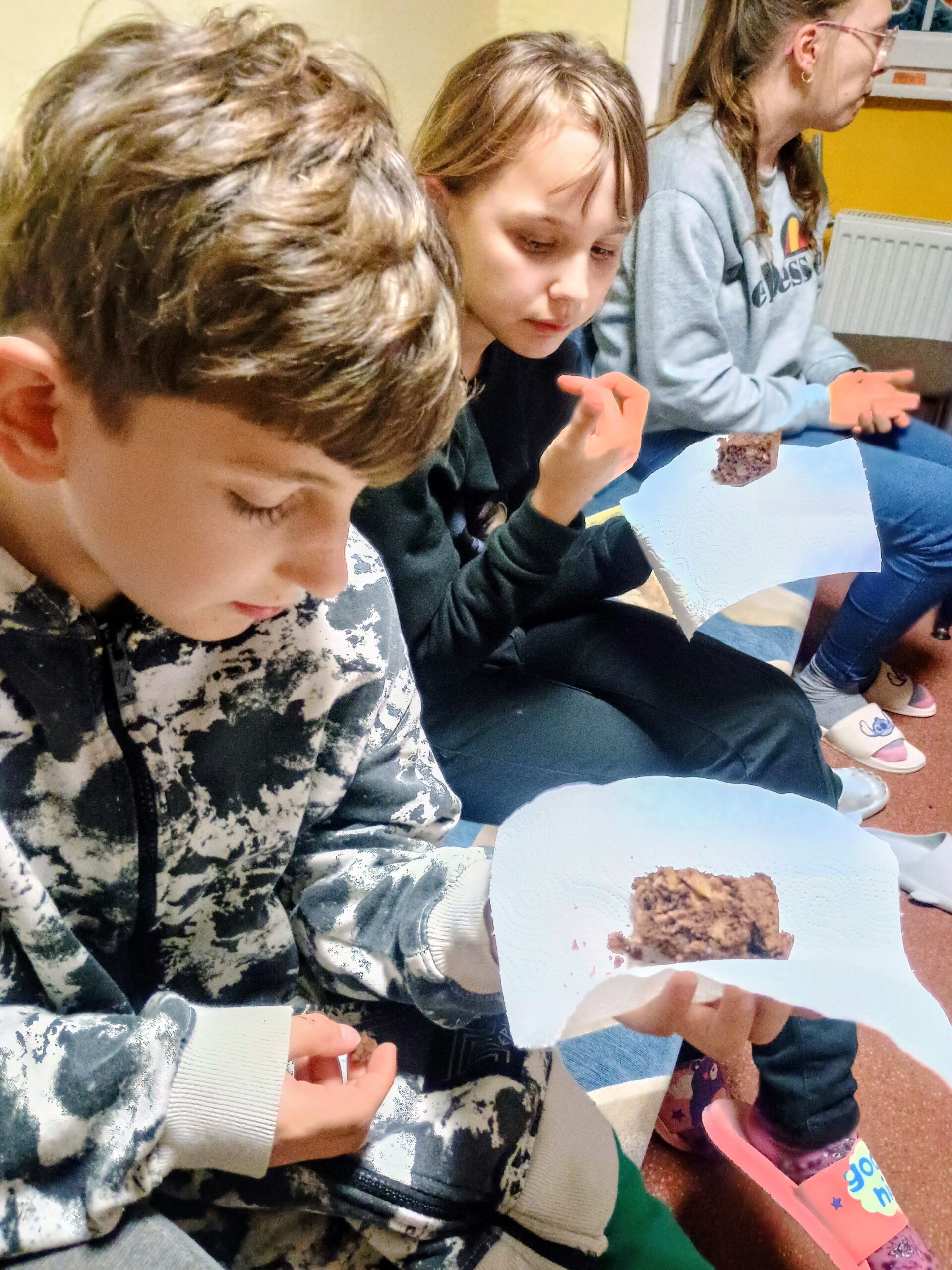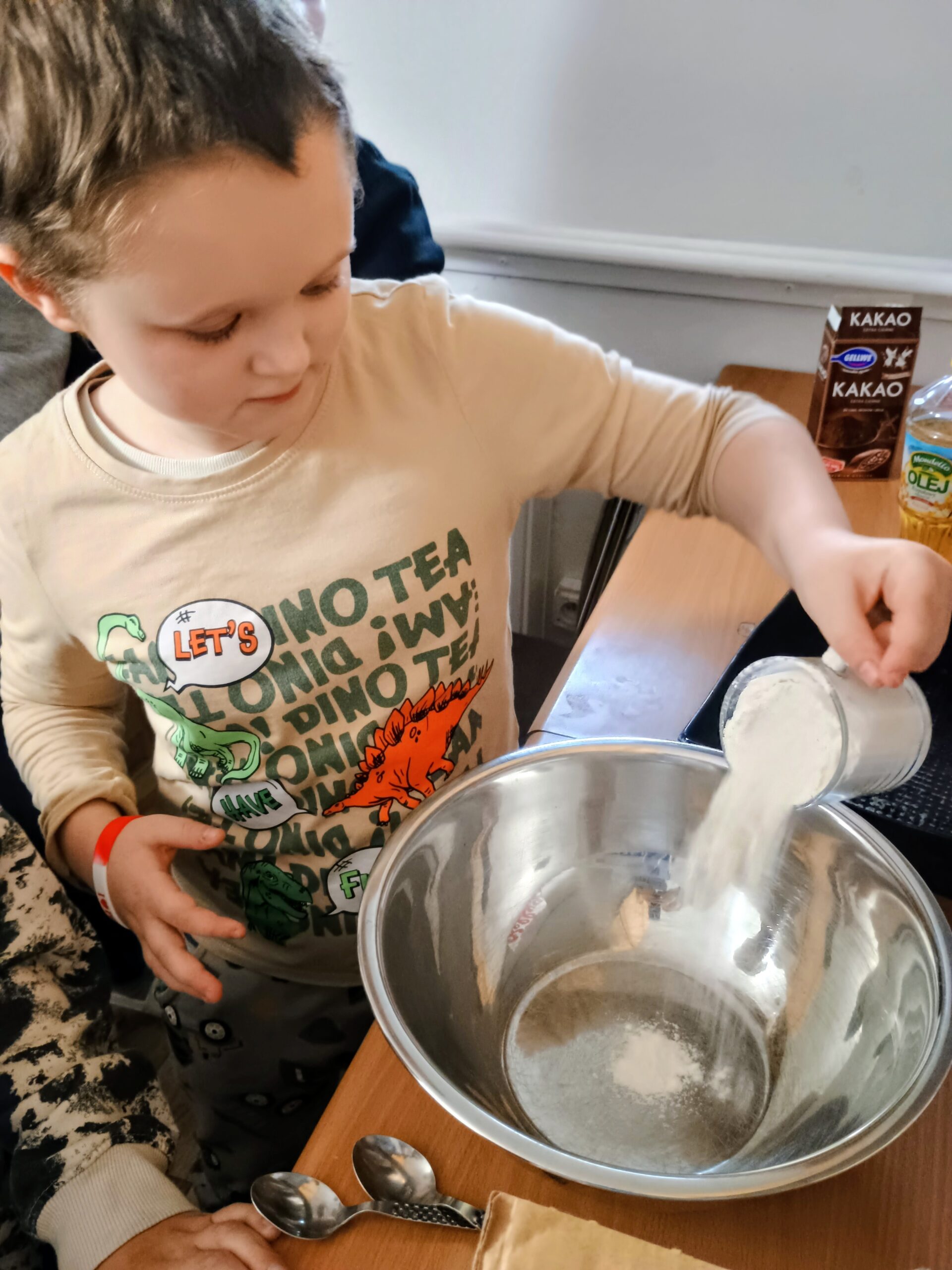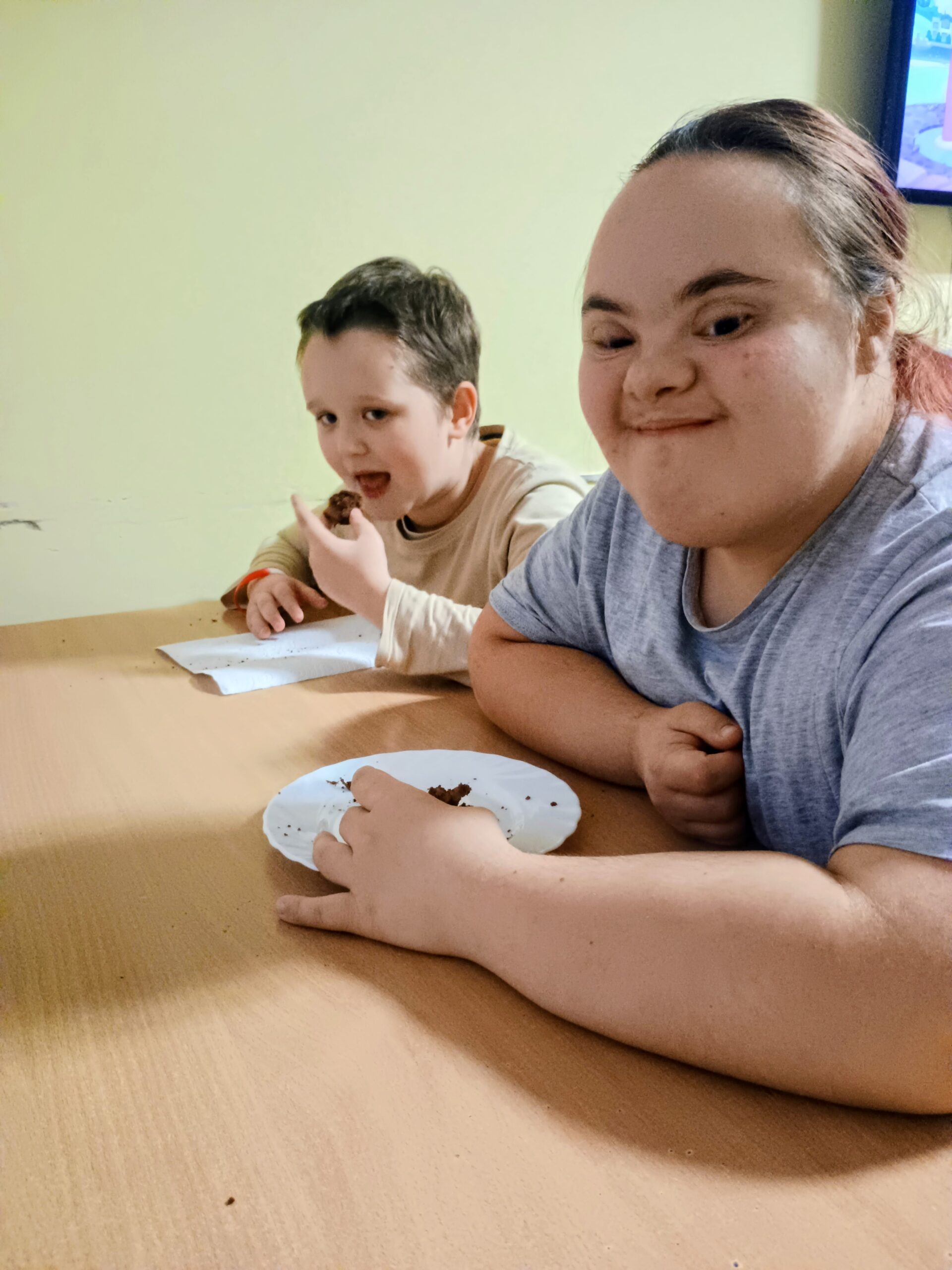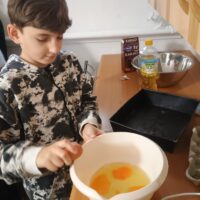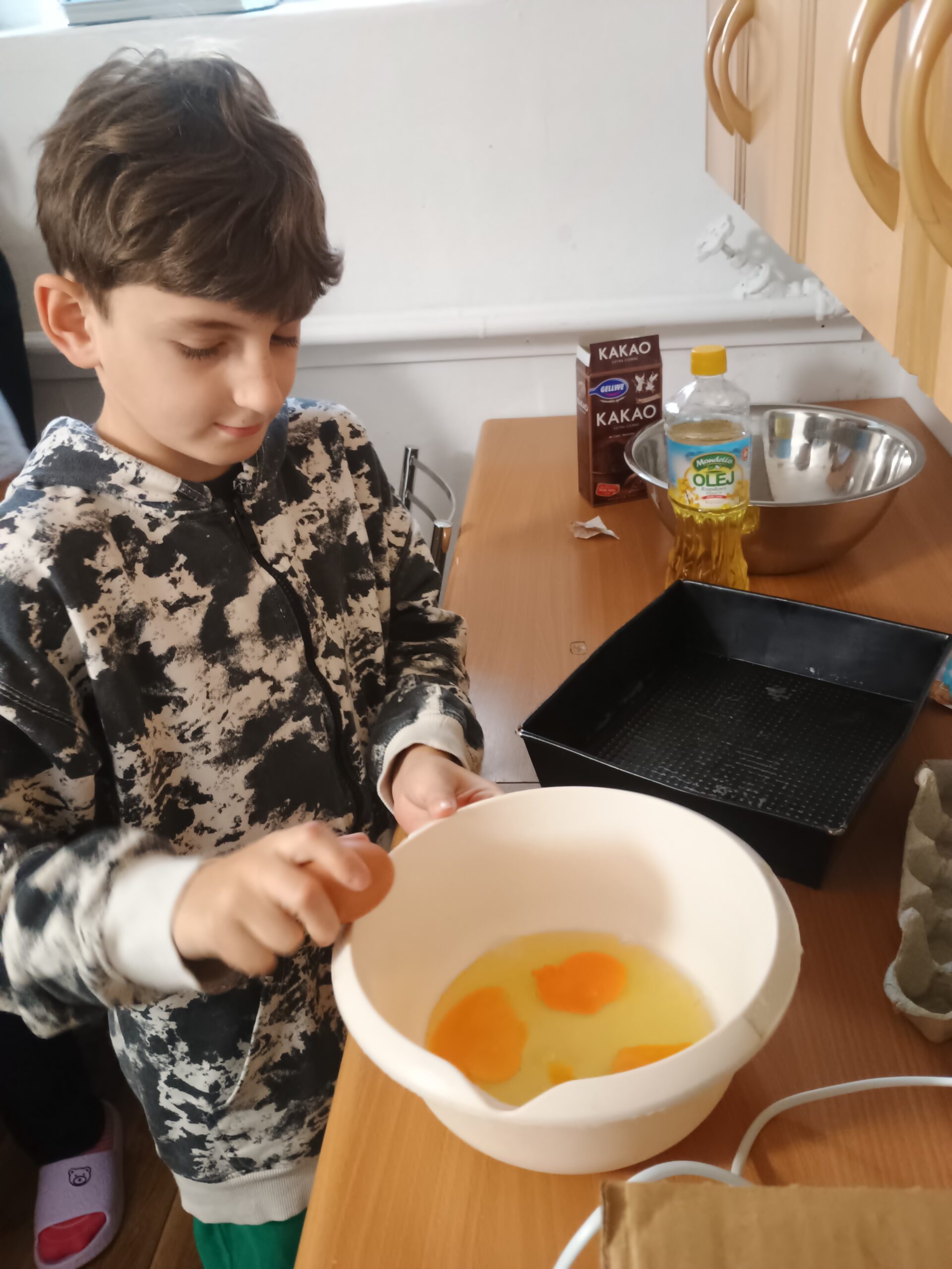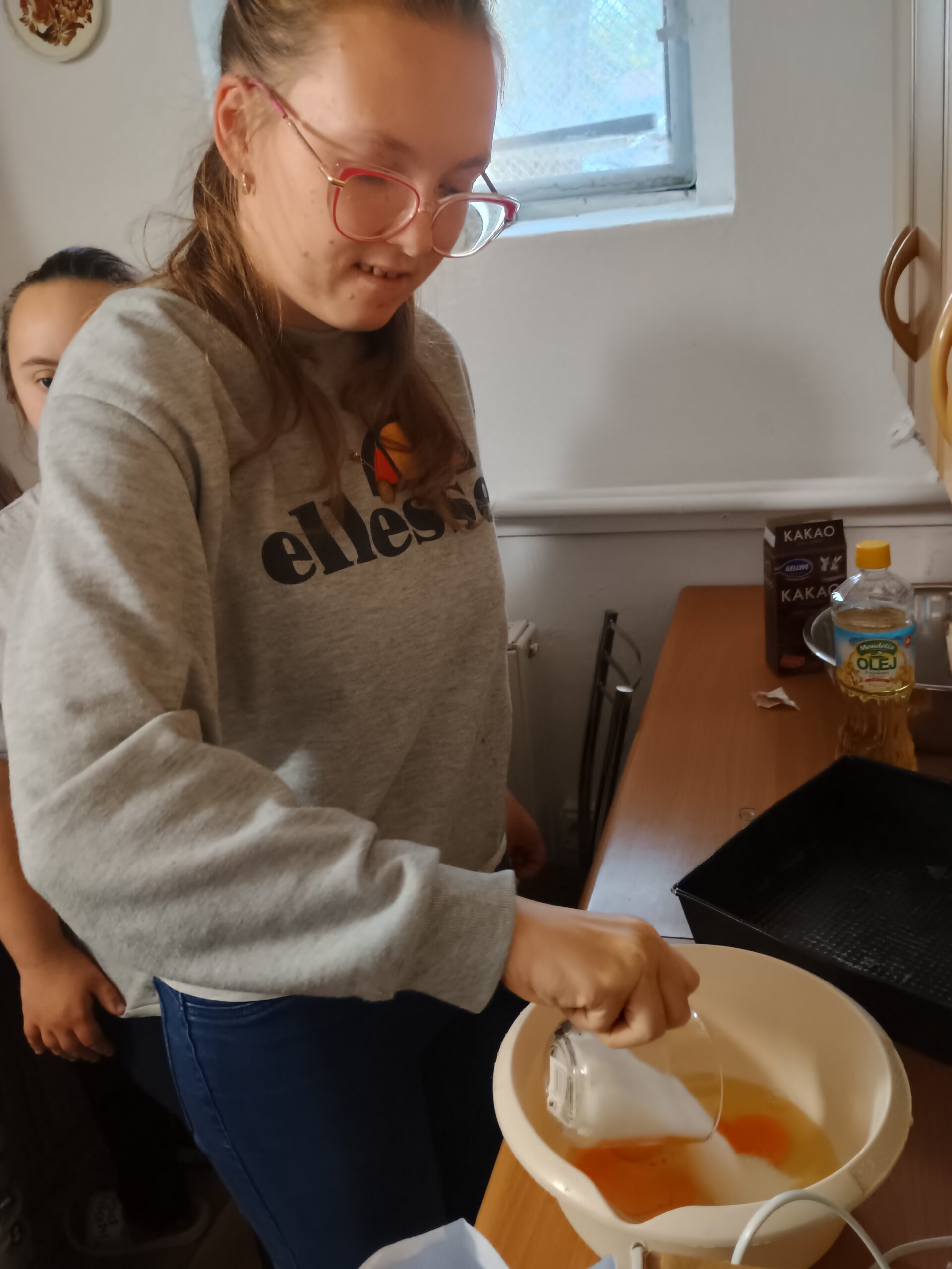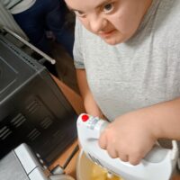 Wychowankowie grupy II zrobili dzisiaj pyszne ciasto na zajęciach kulinarnych. Samodzielnie przygotowali składniki, potrzebne naczynia, a po skończonej pracy posprzątali kuchnię.