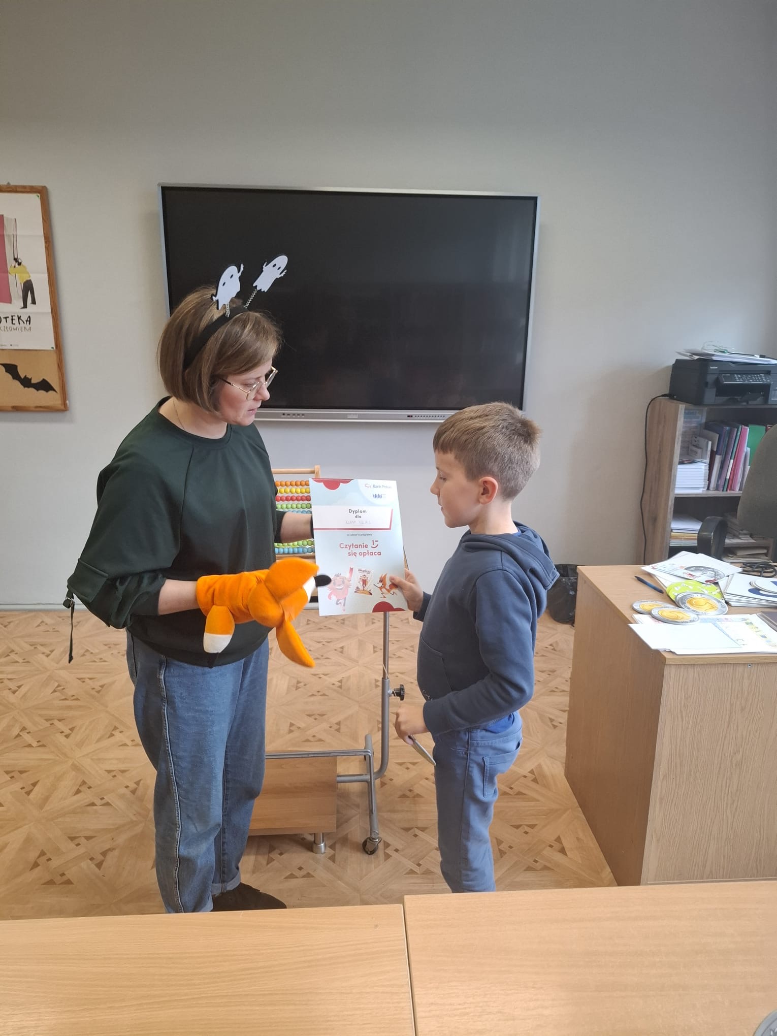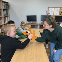 W szkolnej bibliotece odbyły się kolejne zajęcia w ramach programu „Czytanie się opłaca”, realizowanego we współpracy z Fundacją Powszechnego Czytelnictwa oraz Bankiem Pekao. Uczniowie ponownie pracowali z książką „Porwanie Pani Złotówki” Justyny Bednarek, zilustrowaną przez Magdalenę Kożlicką.