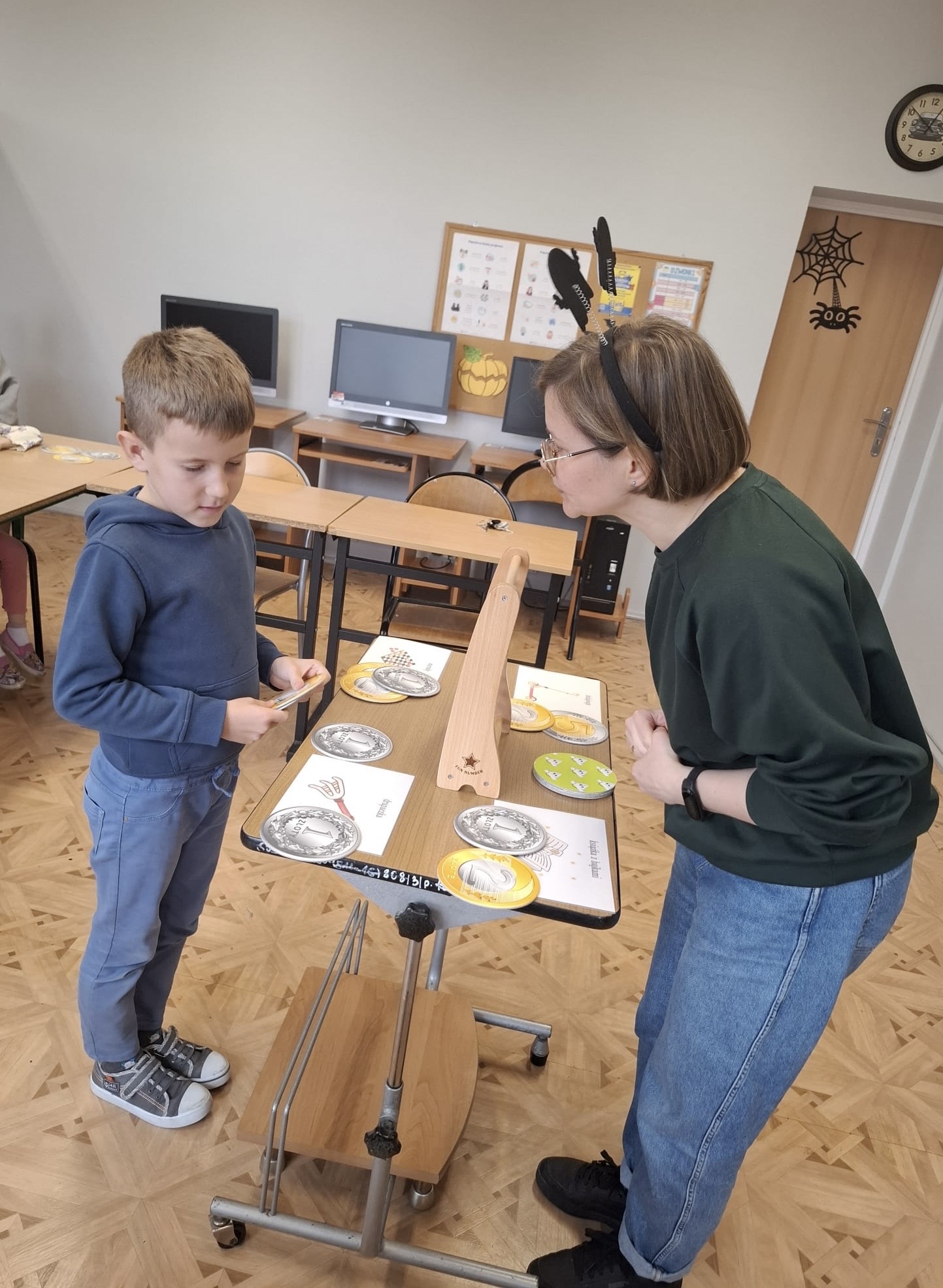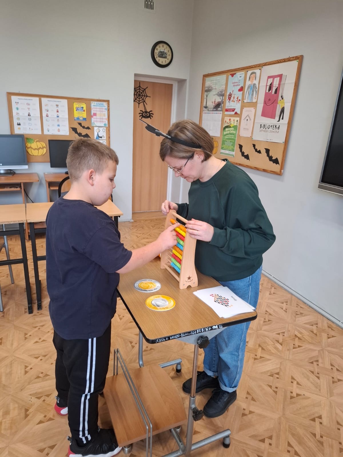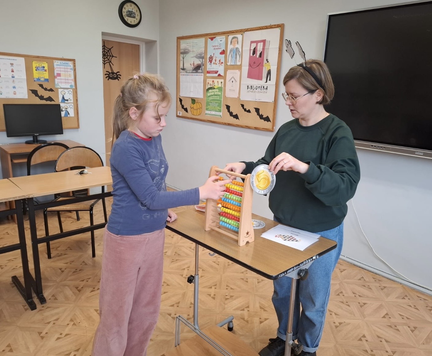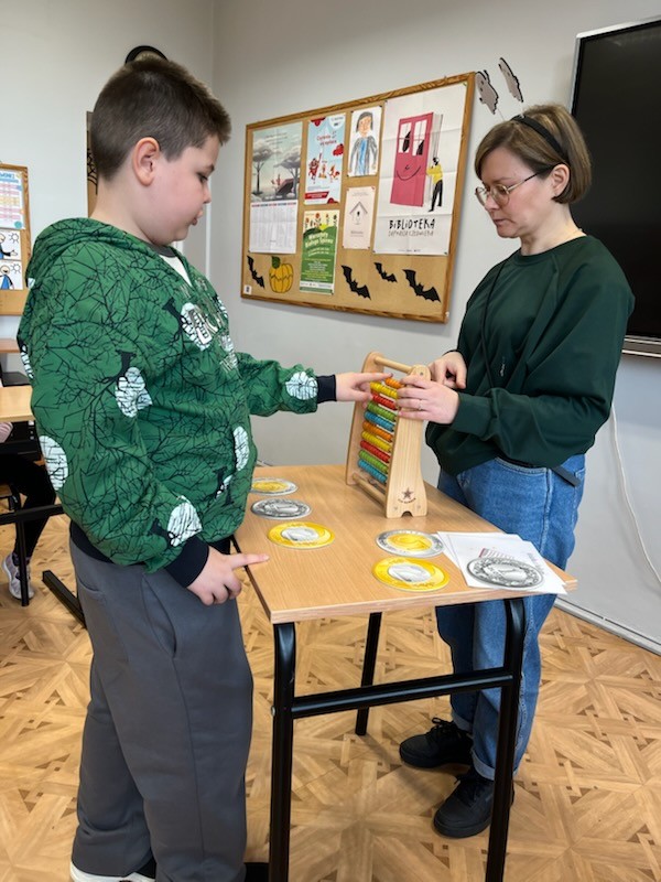 Podczas zajęć pracowano z monetami, liczydłem oraz materiałami edukacyjnymi EI System. Uczniowie ćwiczyli liczenie, porównywanie wartości oraz planowanie wydatków. Dzięki temu mogli przećwiczyć sytuacje, z jakimi spotykamy się na co dzień w sklepie.