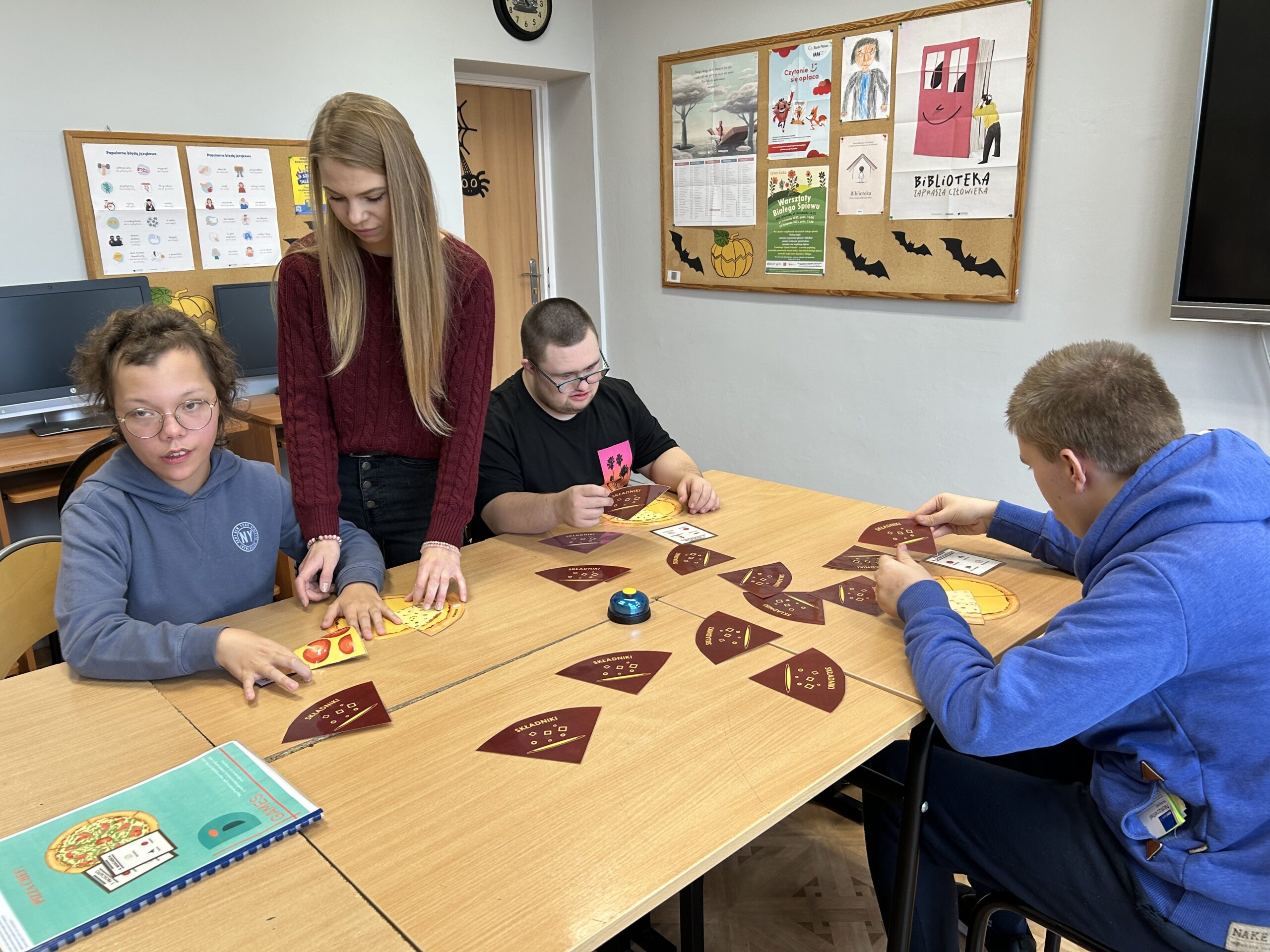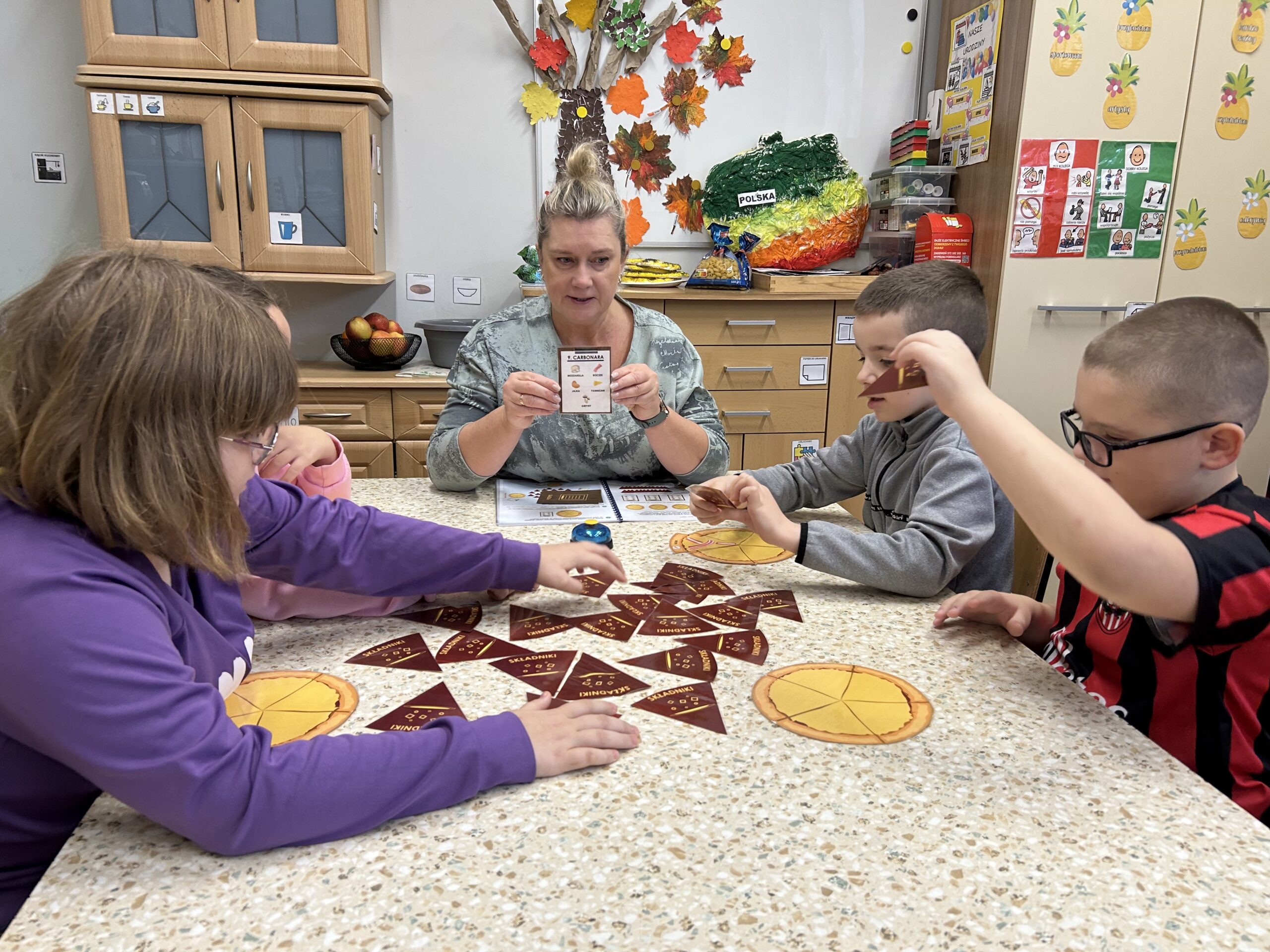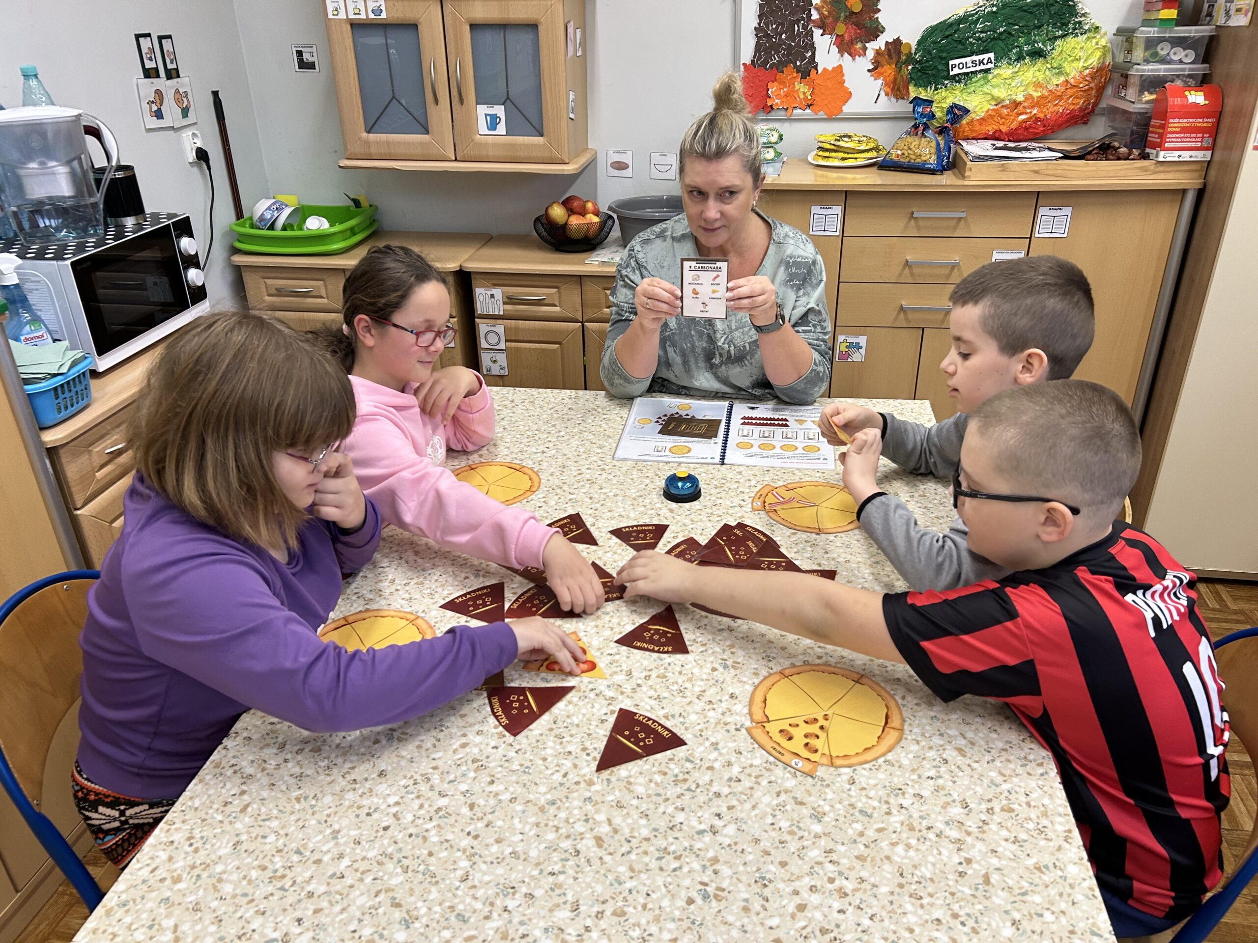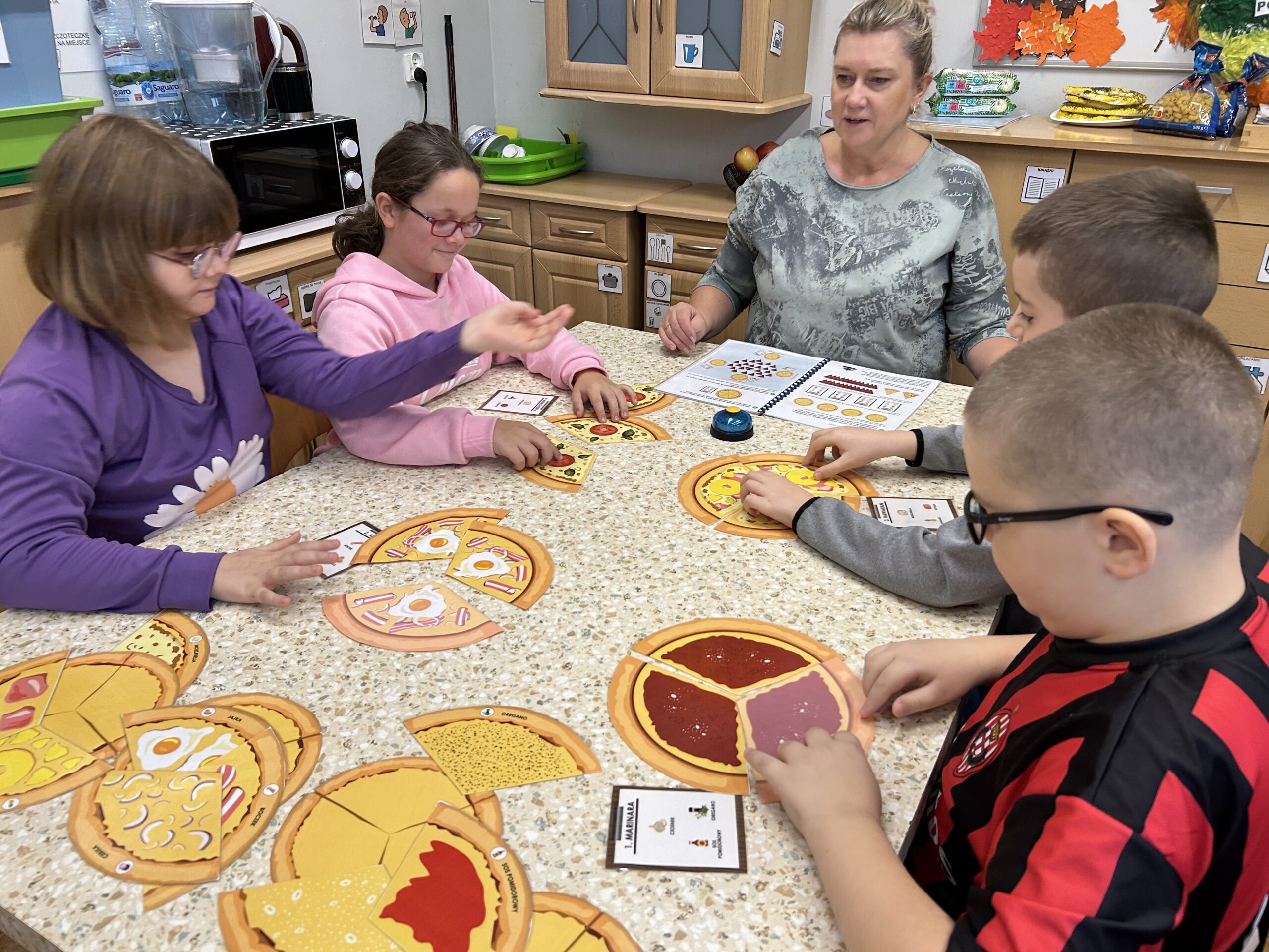 Podczas zajęć uczniowie mieli okazję wcielić się w rolę kucharzy i dostawców pizzy. Dzięki prostym zasadom gry „Pizza Chef” mogli ćwiczyć spostrzegawczość, koncentrację, umiejętność rywalizacji.Druga z wykorzystanych gier – „Hot Pot” – wprowadziła element zręcznościowy. Zadaniem graczy było, przy użyciu szczypiec lub pałeczek, wyławianie z miski elastycznych „nitek makaronu” i składników zgodnych z wylosowaną kartą. Wymagało to precyzji, refleksu oraz dobrej koordynacji ruchowej.