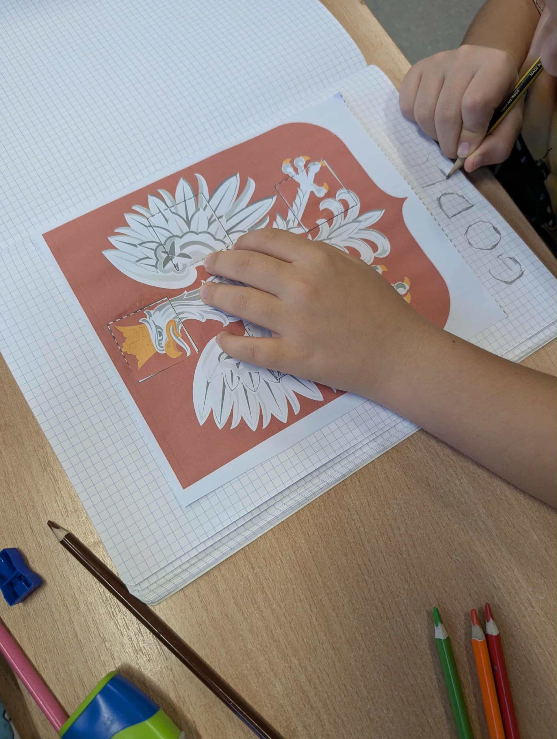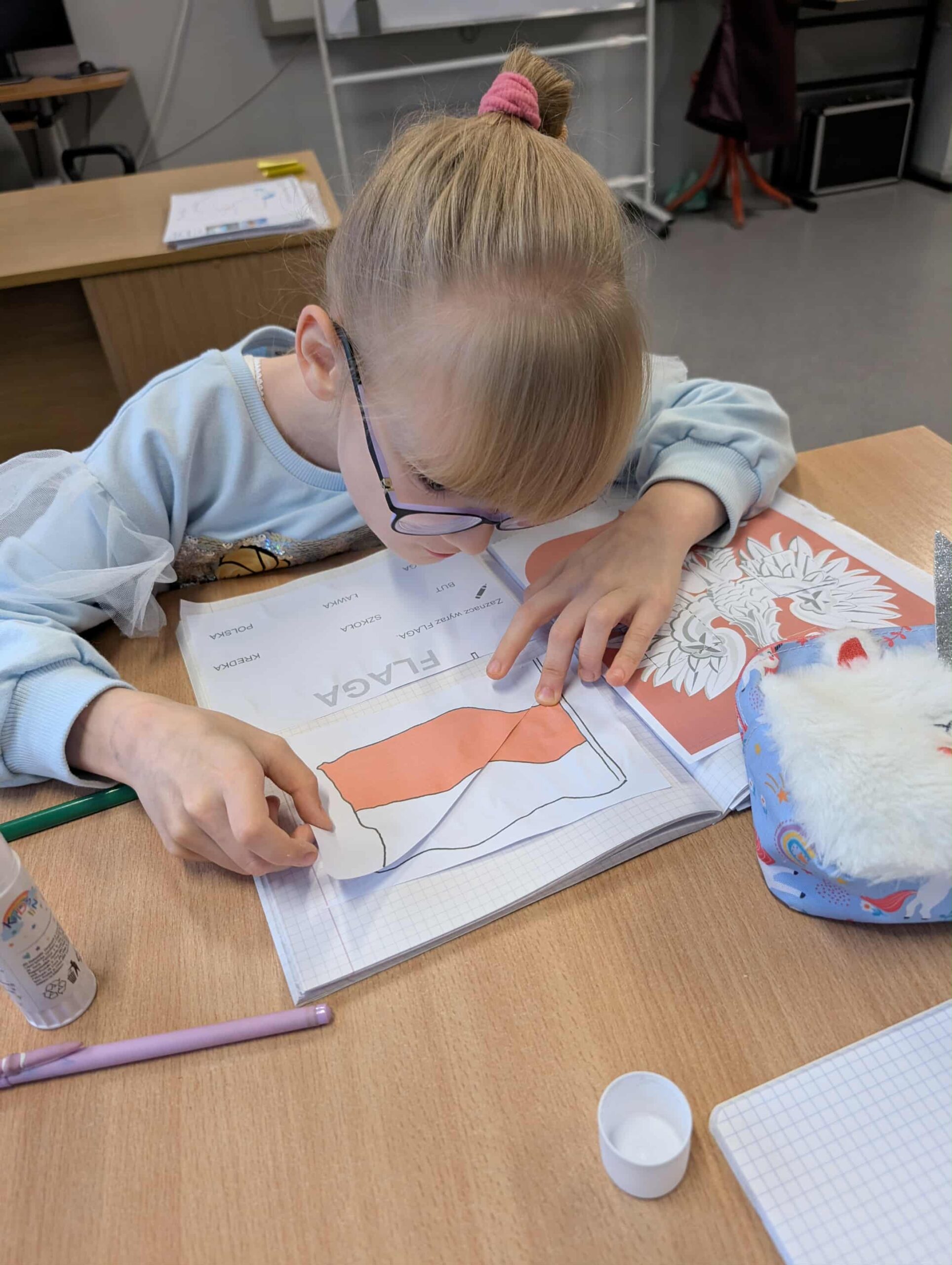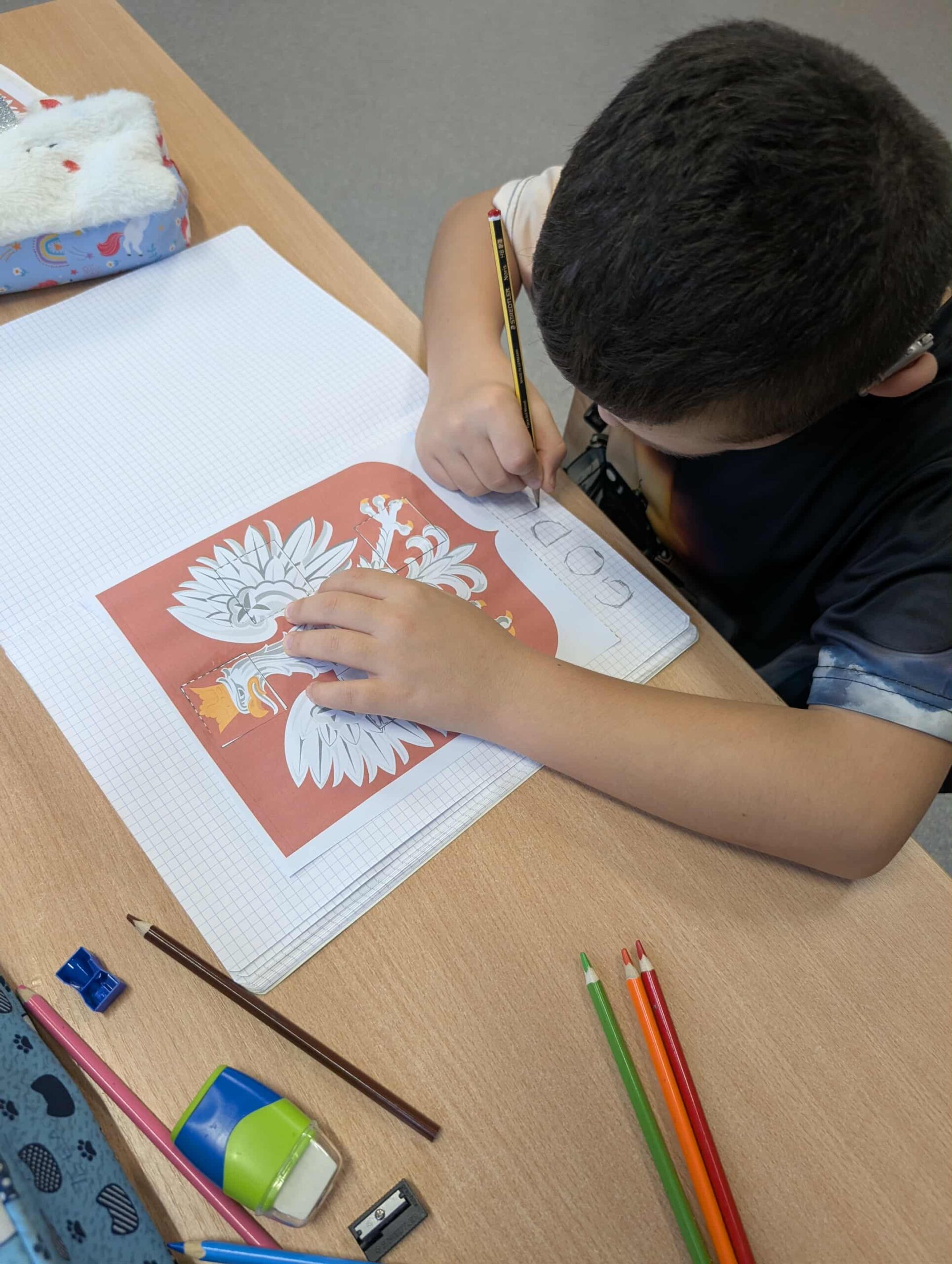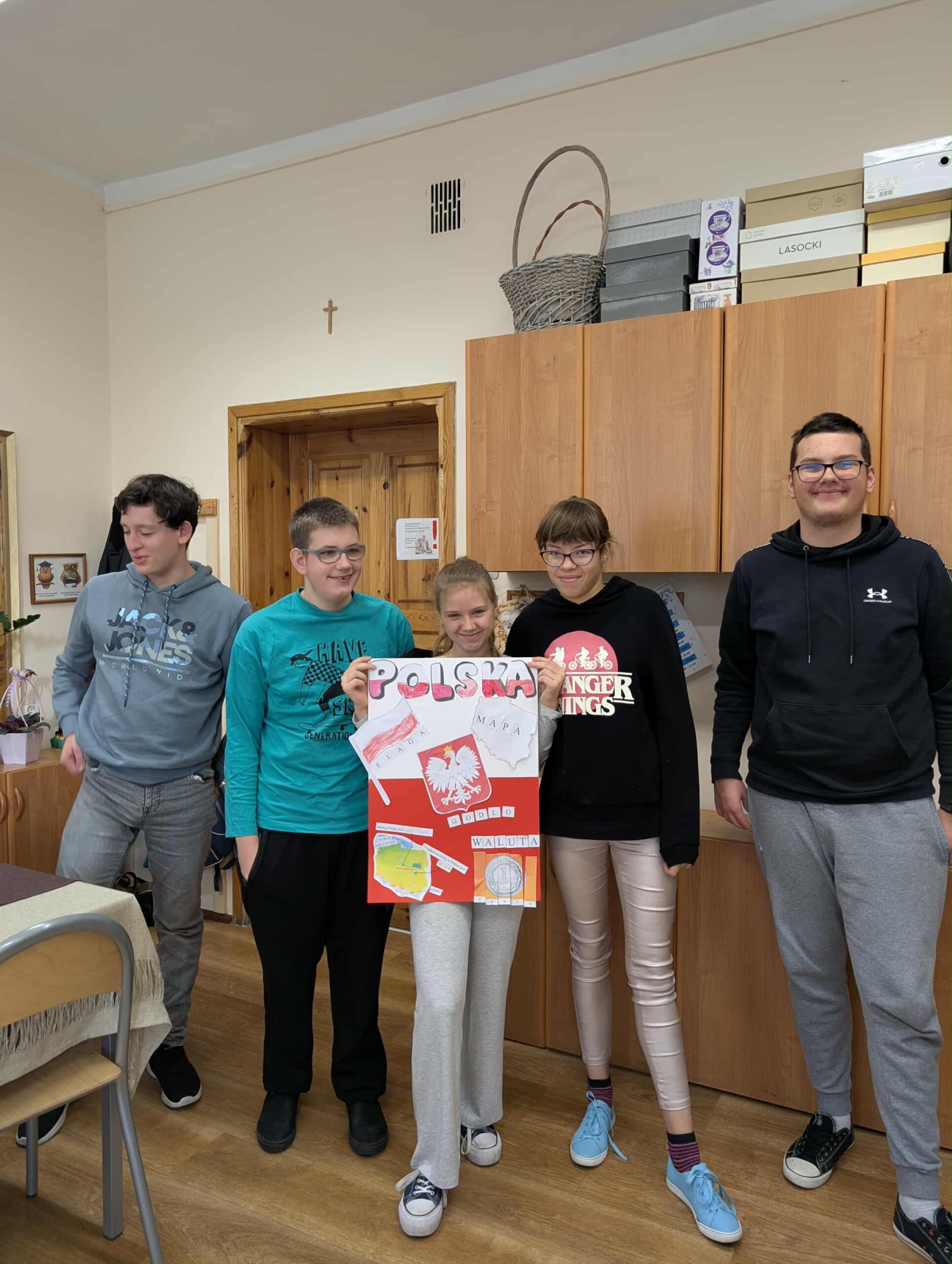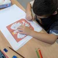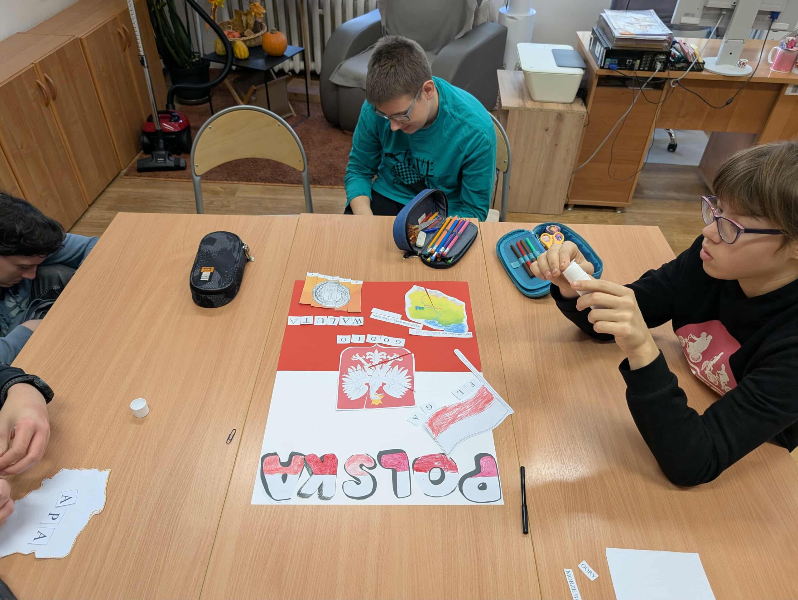 Podczas pierwszych listopadowych spotkań uczniowie przypomnieli sobie symbole narodowe i utrwalali wiadomości o swojej ojczyźnie. Wykonywali prace plastyczne przedstawiające godło i flagę Polski, a także wspólnie stworzyli plakat poświęcony Polsce. Zajęcia sprzyjały rozmowie o tym, co dla każdego z nas oznacza bycie Polakiem i jakie miejsca w naszym kraju warto odwiedzić.