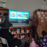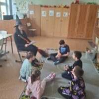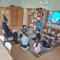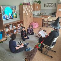 W dniu 05.11. obchodziliśmy Dzień Postaci z Bajek, w związku z czym czytaliśmy bajkę pt: ” Jaś i Małgosia”. Rozmawialiśmy o naszych ulubionych bajkach i postaciach z bajek. Odwiedziła nas także Baba Jaga. Odgadywaliśmy również zagadki dotyczące poznanej bajk i kolorowaliśmy obrazki. Bajka była bardzo ciekawa i wzbudziła w nas wiele emocji.