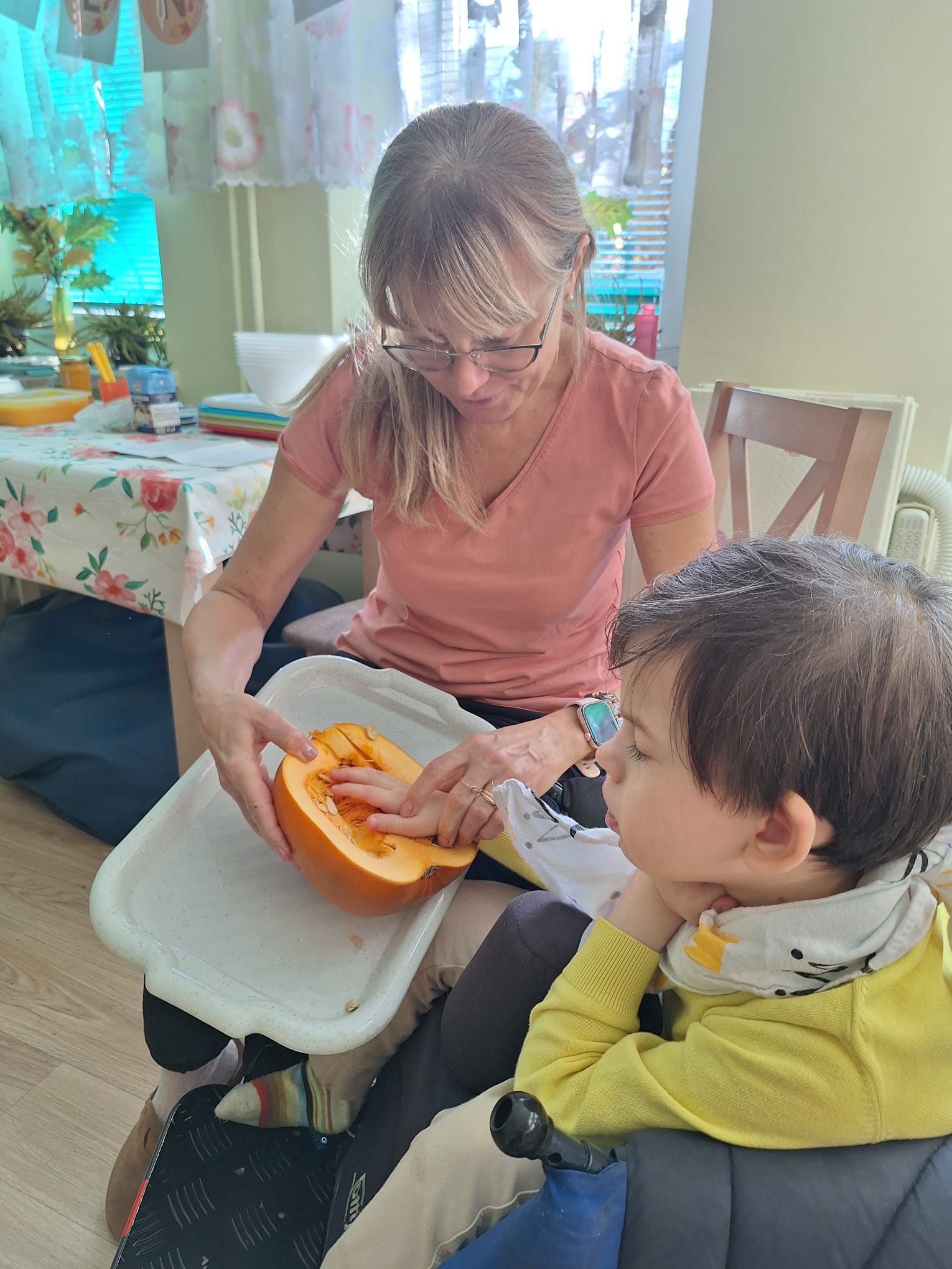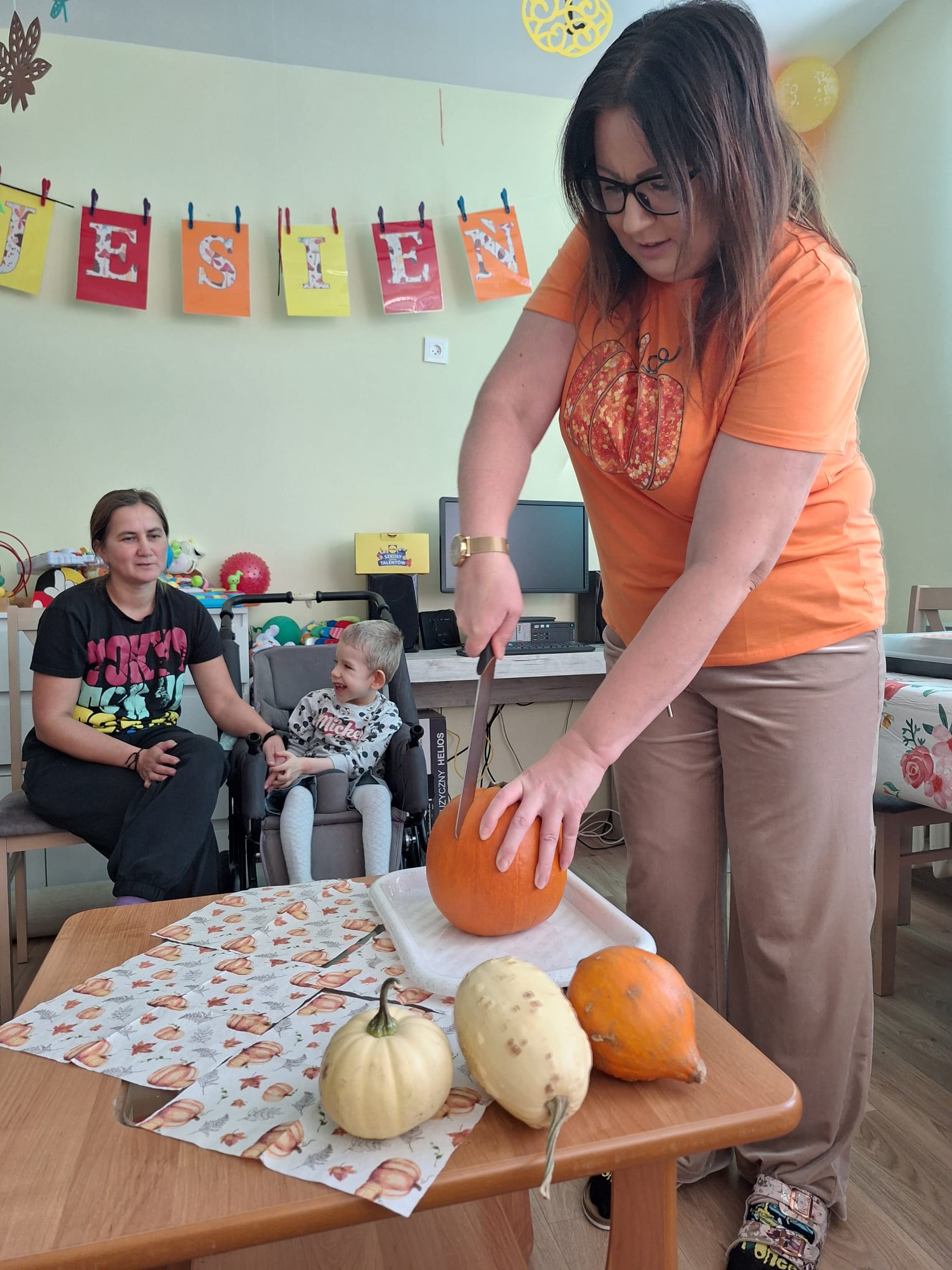 W DPS obchodziliśmy radosny Dzień Dyni. Dzieci z ciekawością oglądały, dotykały, wąchały i smakowały dynie, poznając ich budowę i różne odmiany, jak również kształty i kolory. Wspólnie przygotowaliśmy ciastolinę z dyni, bawiliśmy się przy piosenkach i wierszykach, wykonywaliśmy zadania dyniowe. To był dzień pełen zabawy i ciepłej jesiennej atmosfery.