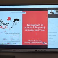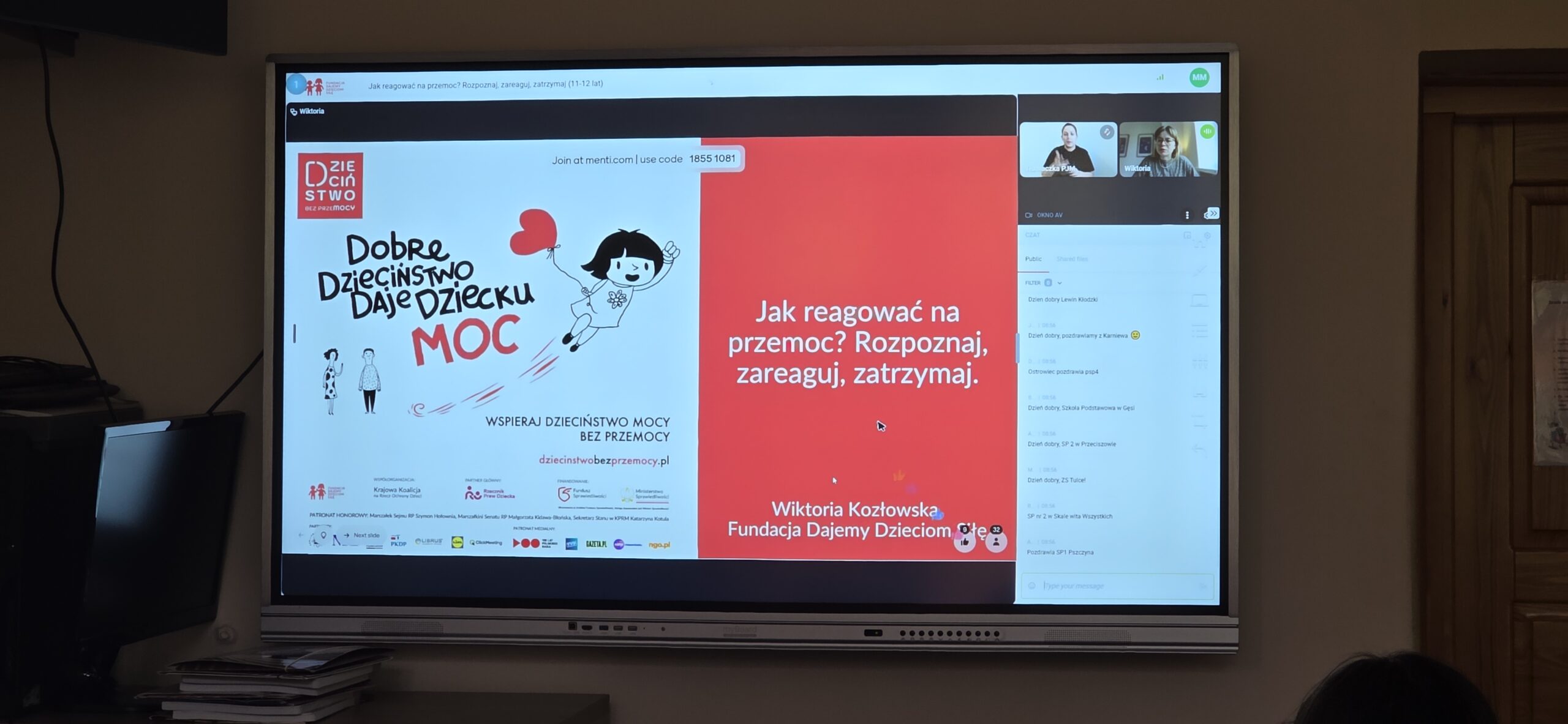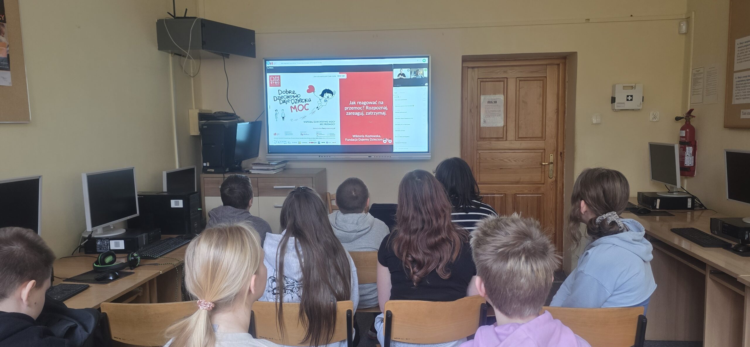 W dniu 5 listopada 2025 r. w ramach współpracy z Fundacją Dajemy Dzieciom Siłę uczniowie klas 4-6 SP wzięli udział w lekcji on line, podczas której dowiedzieli się, czym jest przemoc rówieśnicza i jakie może przybierać formy (fizyczna, słowna, psychiczna, cyberprzemoc). Omówione zostały role osób biorących udział w sytuacji przemocy – doświadczającej, sprawiającej oraz świadków. Uczniowie poznali także sposoby reagowania w trudnych sytuacjach oraz dowiedzieli się, jak stawiać zdrowe granice i gdzie szukać pomocy. Lekcja miała na celu rozwijanie empatii, budowanie bezpiecznej atmosfery oraz wzmacnianie umiejętności radzenia sobie z przemocą.