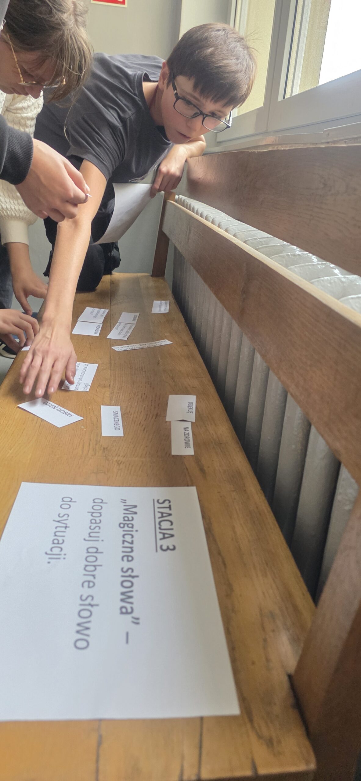 W ramach działań podjętych w tym okresie zorganizowano podchody na terenie szkoły, podczas których uczniowie w kilkuosobowych zespołach odwiedzali wyznaczone punkty zadaniowe. Na każdym z nich czekały na nich różnorodne zadania i ćwiczenia dotyczące dobrej komunikacji, m.in. rozpoznawanie pozytywnych komunikatów, tworzenie przykładów empatycznych odpowiedzi, odgrywanie krótkich scenek oraz zabawy integracyjne oparte na współpracy. Podchody cieszyły się dużym zainteresowaniem uczniów.