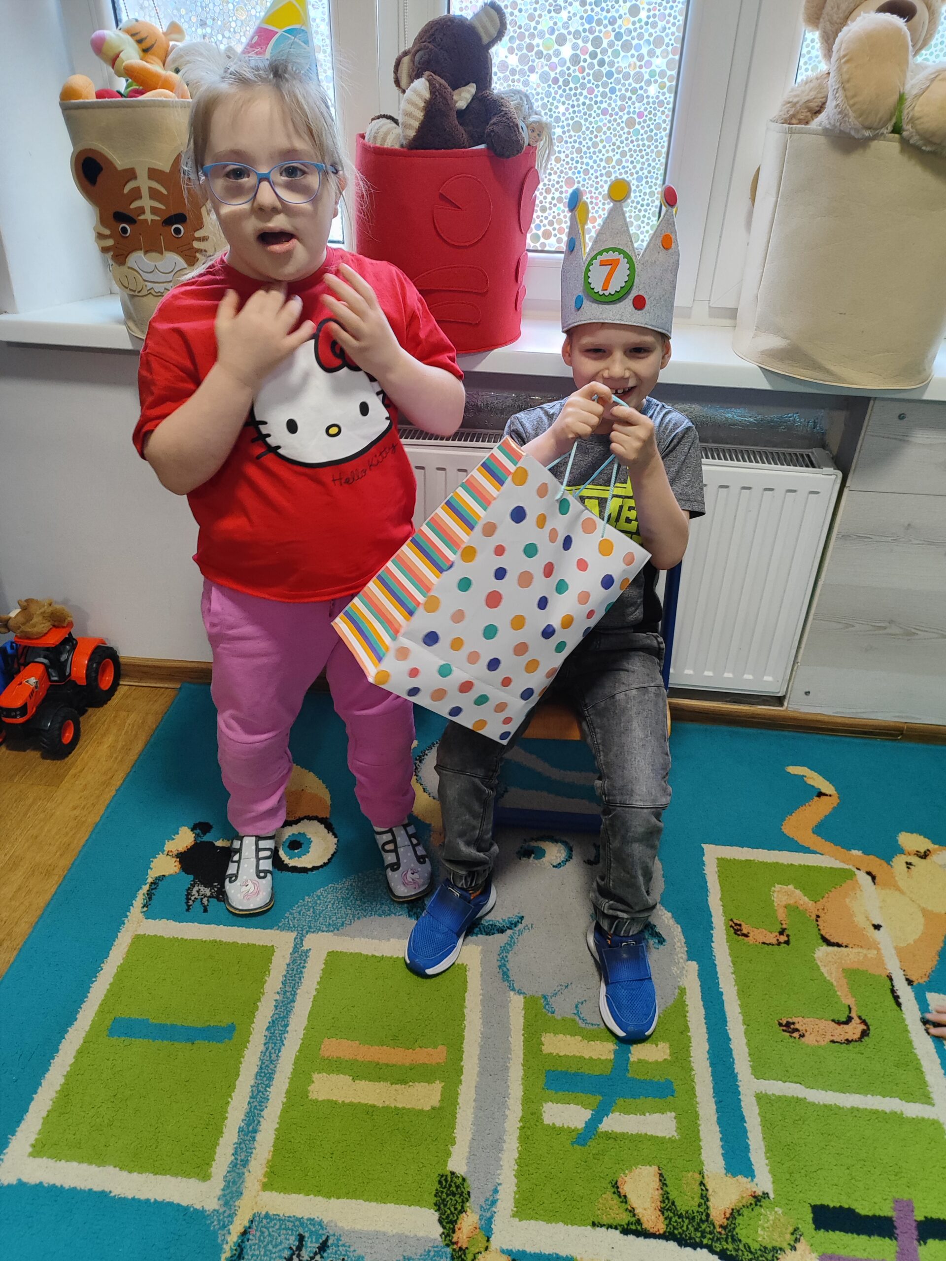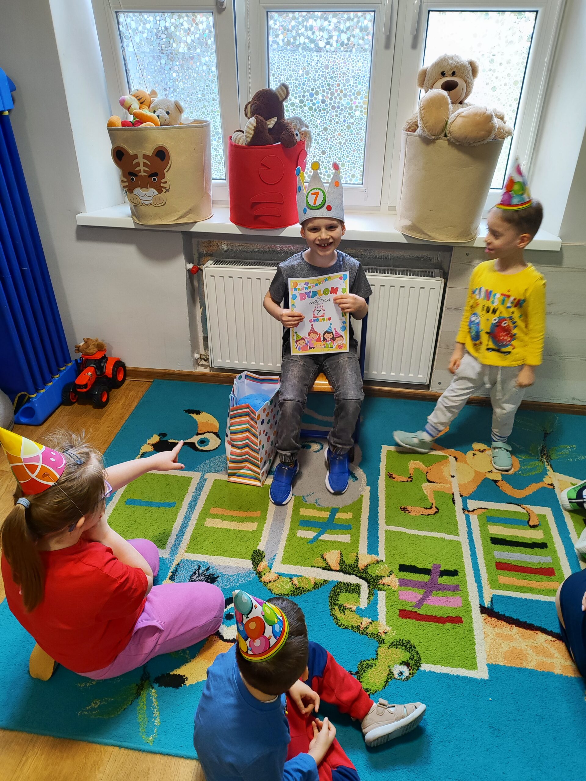 W środę w grupie ,,Tygryski Urwiski” świętowaliśmy 7 urodziny Wojtka. Było mnóstwo uśmiechów, radości i zabawy. Nie zabrakło ciepłych życzeń i urodzinowych niespodzianek. Tego dnia nasz Jubilat w urodzinowej koronie czuł się wyjątkowo, a otrzymany upominek sprawił mu wielką radość.
