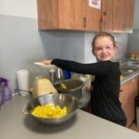 „Kulinarne przysmaki, co lubią świetliczaki”. Uczniowie wykonywali szereg czynności, które rozwijają wiele umiejętności takich jak kreatywność, samodzielność oraz pracę zespołową. Rozwijają też zmysły i zdobywają praktyczne umiejętności w kuchni. Placki wyszły przepyszne i urozmaiciły nasze zmysły.