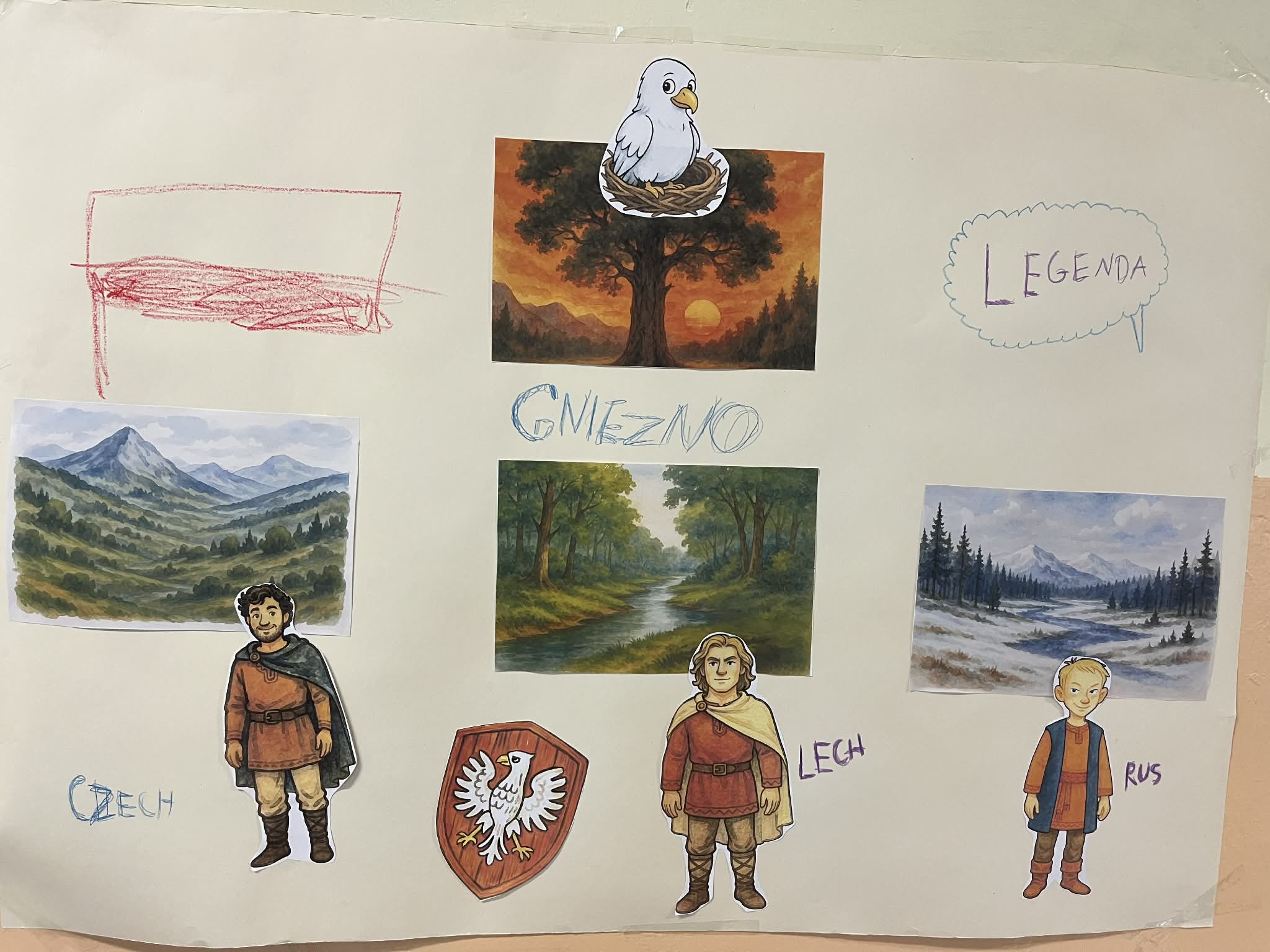 Podczas zajęć uczniowie omówili treść legendy i wskazali najważniejsze motywy związane z narodzinami polskich symboli. Kolejnym krokiem było odniesienie opowieści do rzeczywistych miejsc na mapie. Dzieci poznały położenie pierwszej stolicy Polski – Gniezna i odszukały je na mapie kraju. Zwrócono uwagę na znaczenie tego regionu dla kształtowania się państwowości oraz na to, jak legendy, choć symboliczne, pomagają budować narrację historyczną. Spotkanie z legendą oraz pracą z mapą to kolejny krok w budowaniu wiedzy o własnym kraju i jego korzeniach.