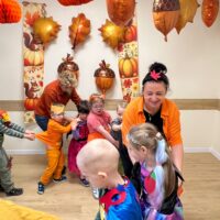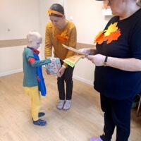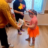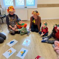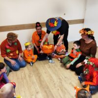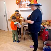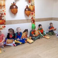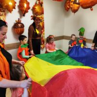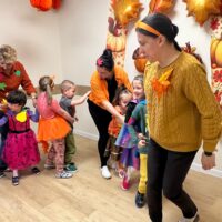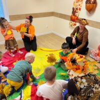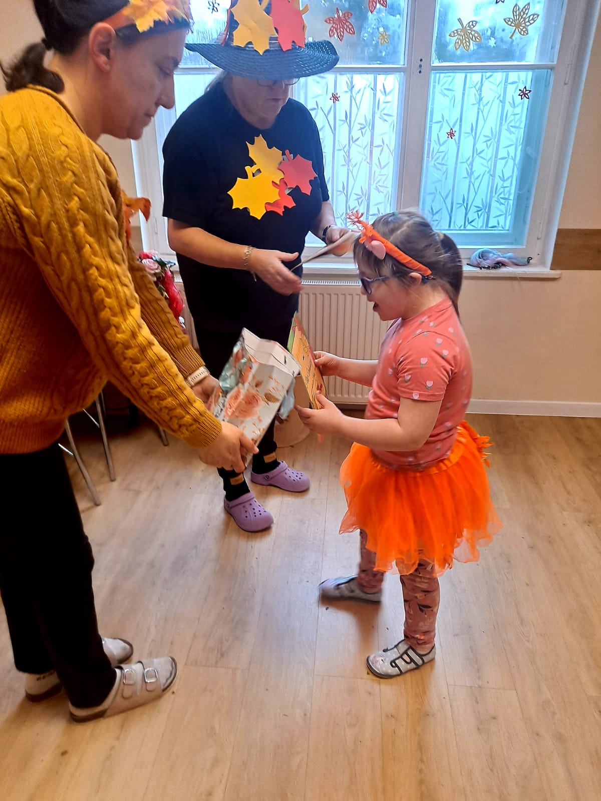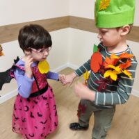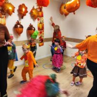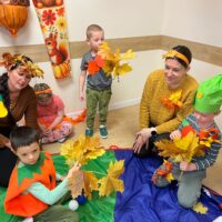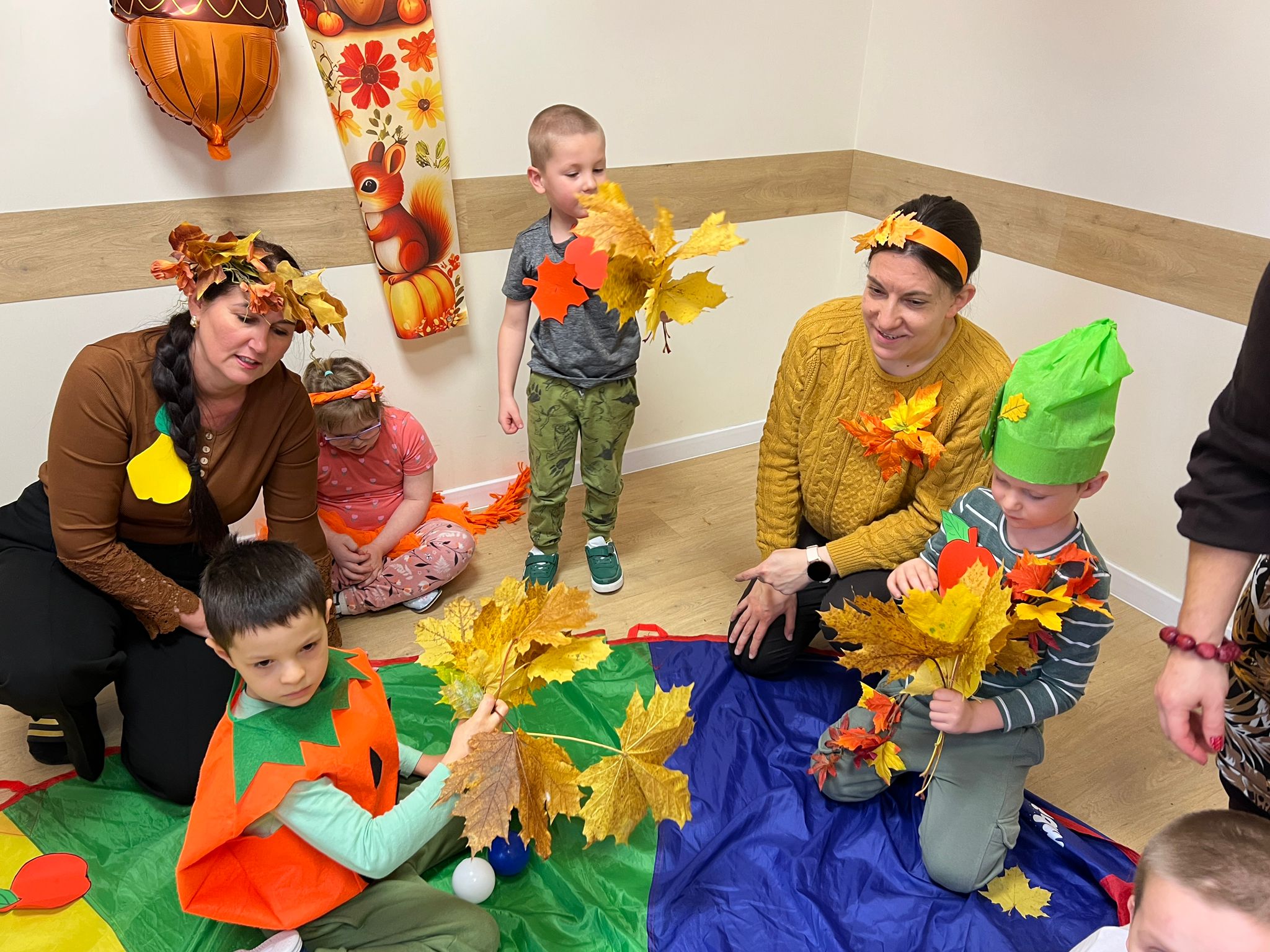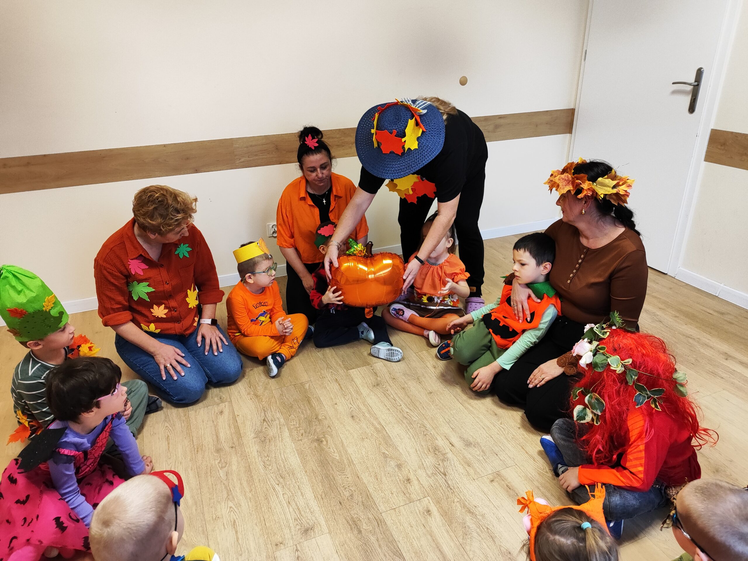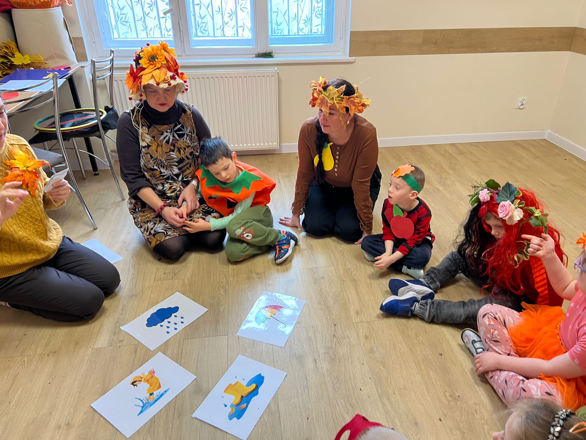 17 listopada w naszym przedszkolu odbył się Bal Jesieni. Na początku wszystkie dzieci jesiennym wierszem powitała Pani Jesień, zapraszając do wspólnej i radosnej zabawy. Dzieci ubrane w piękne kolorowe jesienne stroje bawiły się przy muzyce i jesiennych piosenkach. Rozwiązywały tematyczne zagadki i uczestniczyły w zabawach muzyczno – ruchowych. W rytm muzyki „Podaj dynię” przekazywały sobie duży balon w kształcie dyni, tańczyły w parach do piosenki „Małe czerwone jabłuszko”. Dzieci ćwiczyły również swoją celność i szybkość podczas rzutów do kosza oraz skoków do kolorowych obręczy.