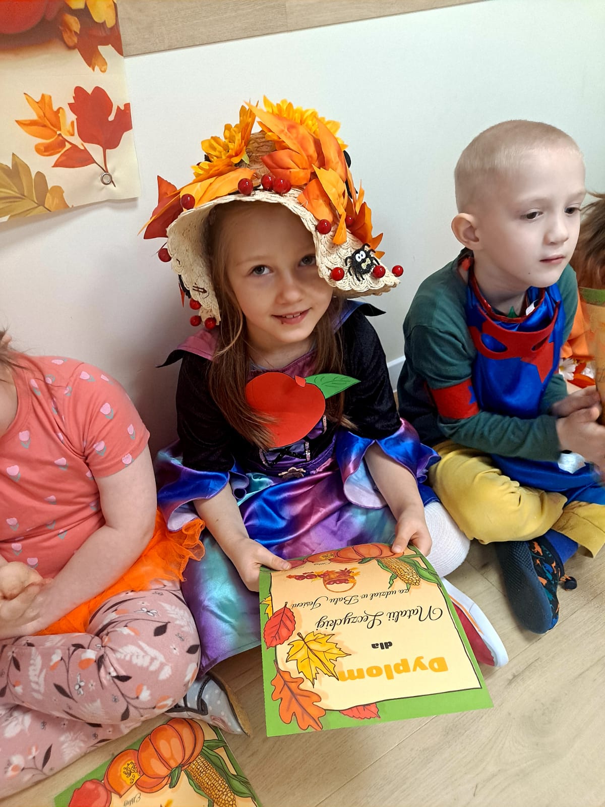 Na zakończenie każdy uczestnik balu zaprezentował swój strój i otrzymał dyplom za udział w jesiennej zabawie. Po balu na wszystkie dzieci czekał słodki poczęstunek.