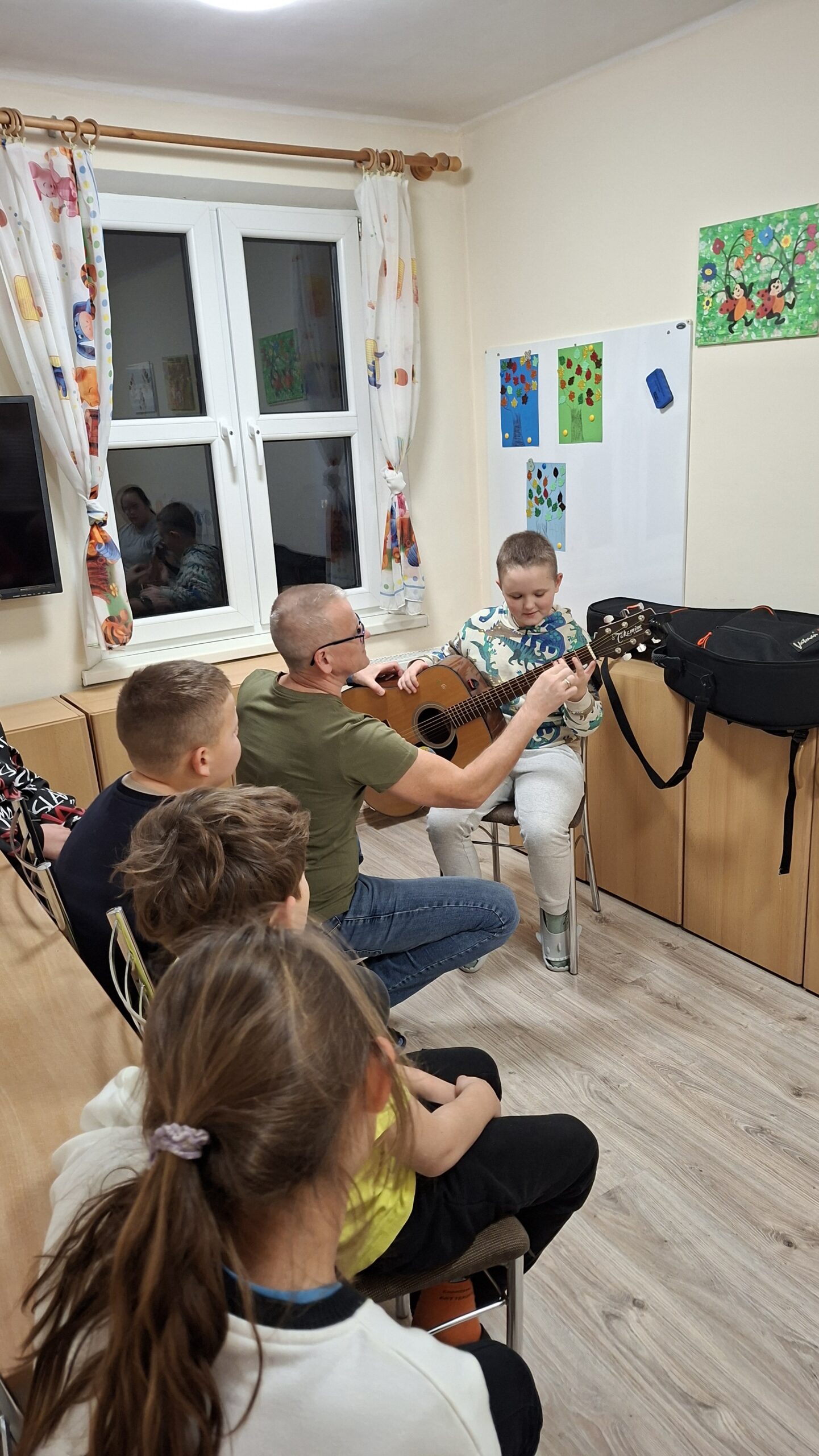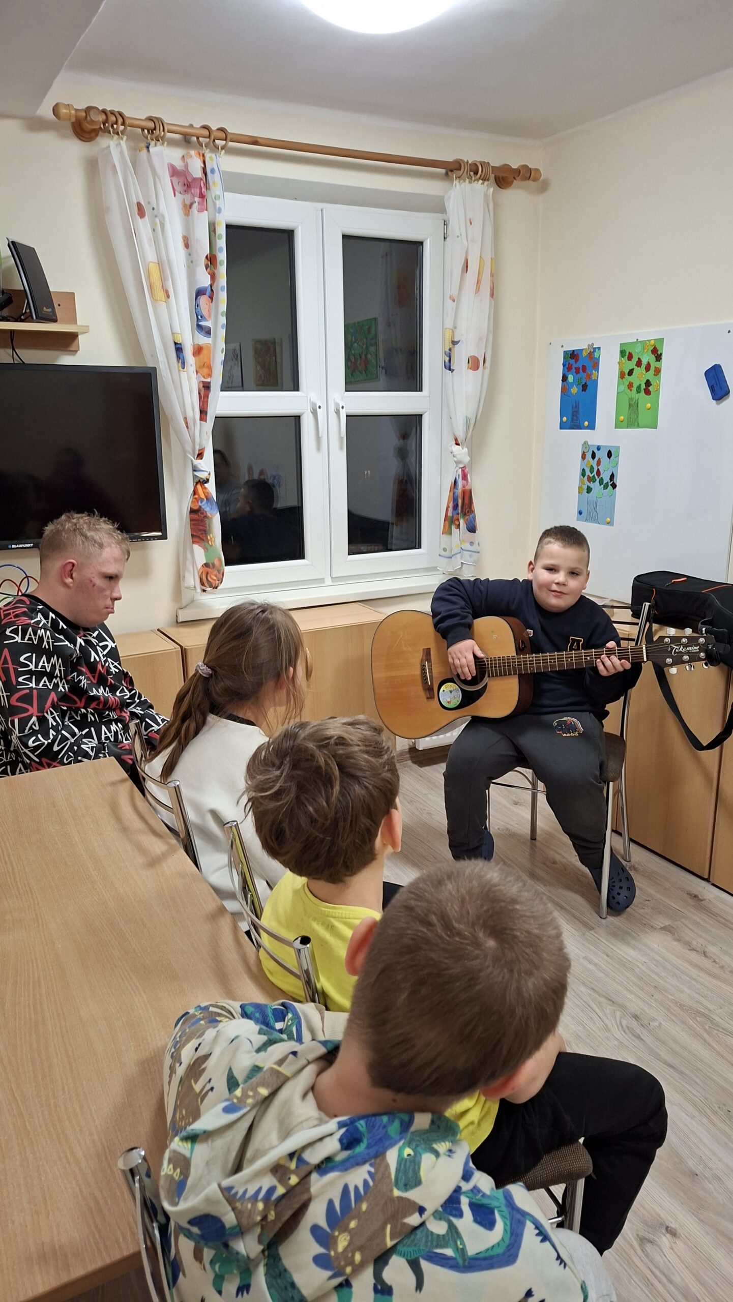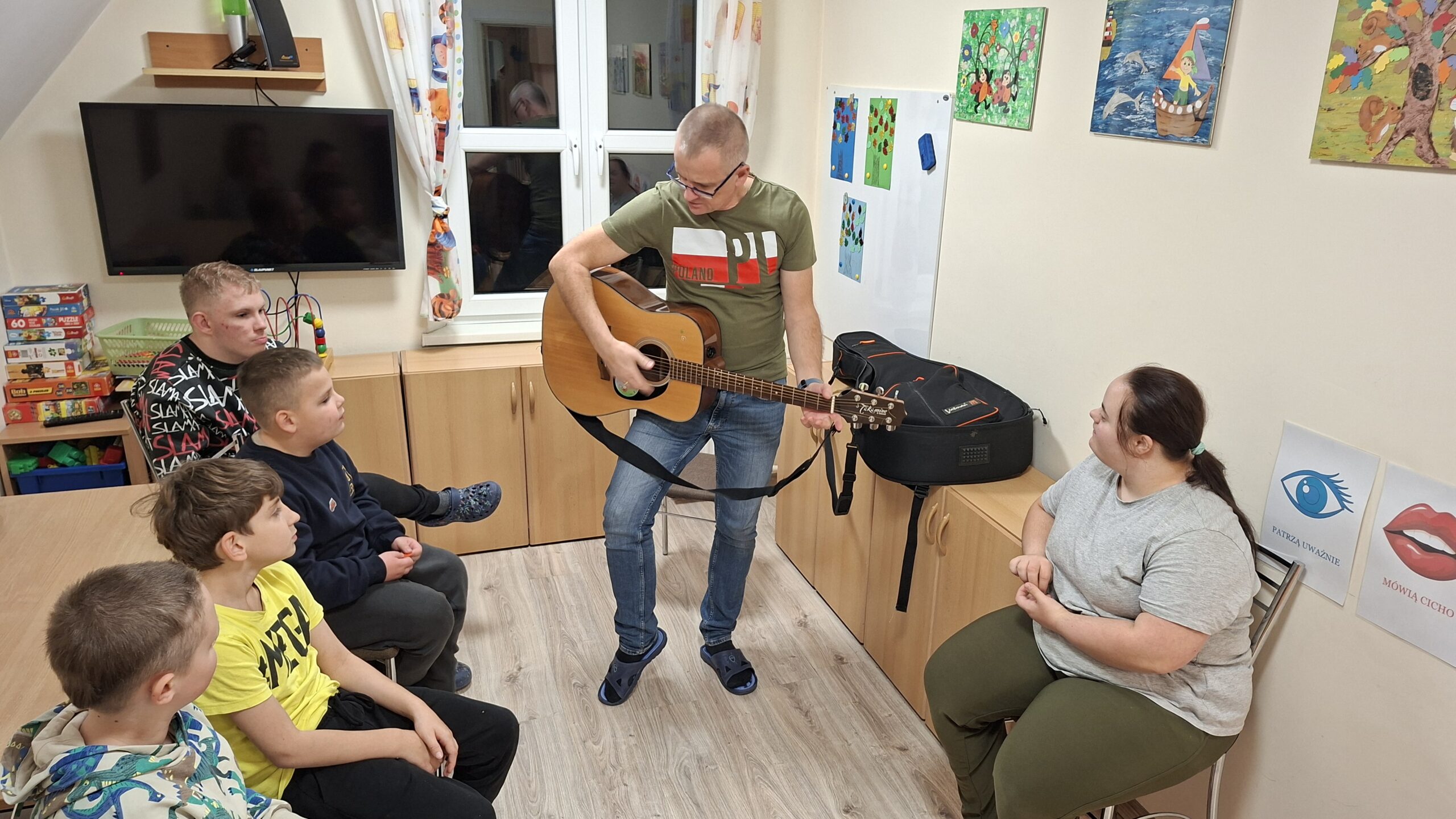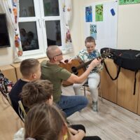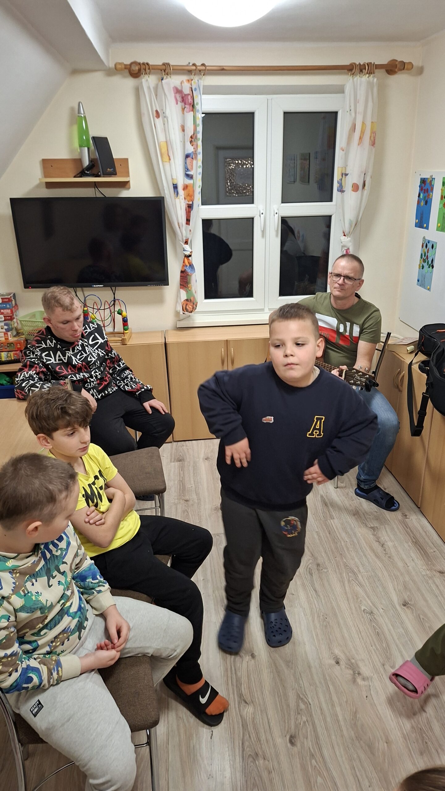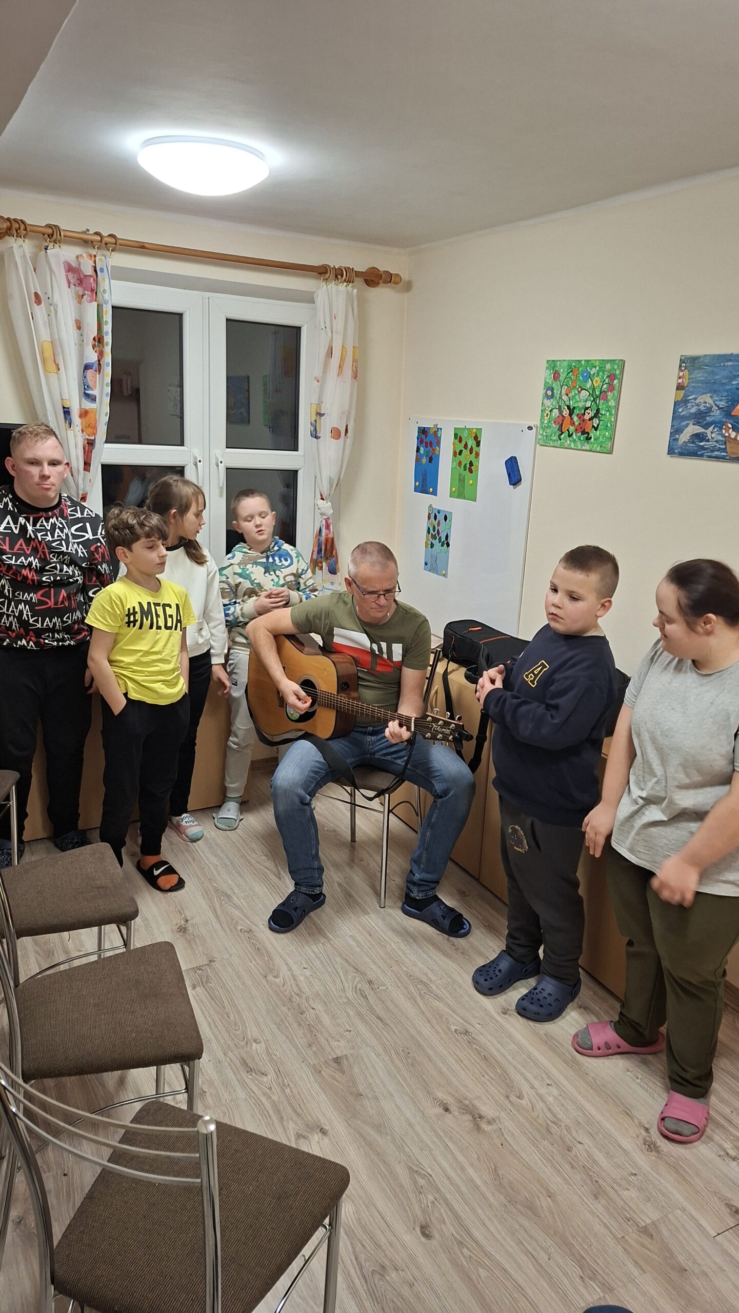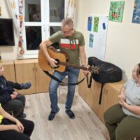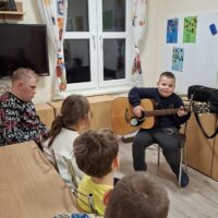 18 listopada 2025 roku w internacie grupa 1 i 2 kontynuowała temat niepodległości muzycznie. Śpiewaliśmy znane wychowankom piosenki, a także kilkoro z nich popróbowało gry na gitarze. Towarzyszył nam też taniec i dobry nastrój.