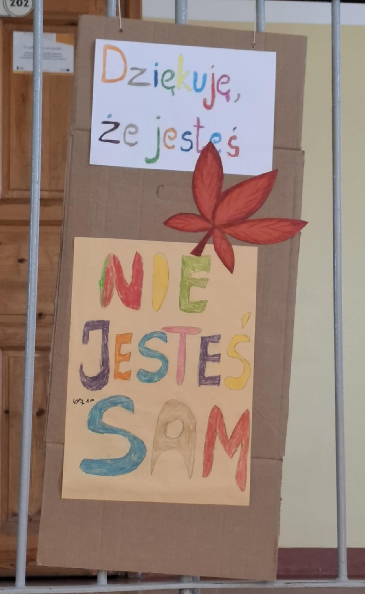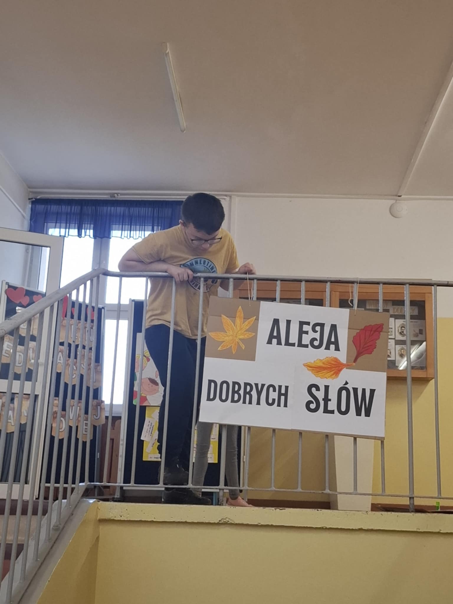 Centralnym elementem szkolnych działań była przygotowana przez Sekcję Koleżeńską „Aleja dobrych słów” – kolorowa, pełna inspirujących i wzmacniających komunikatów przestrzeń, która pojawiła się na korytarzu szkolnym.