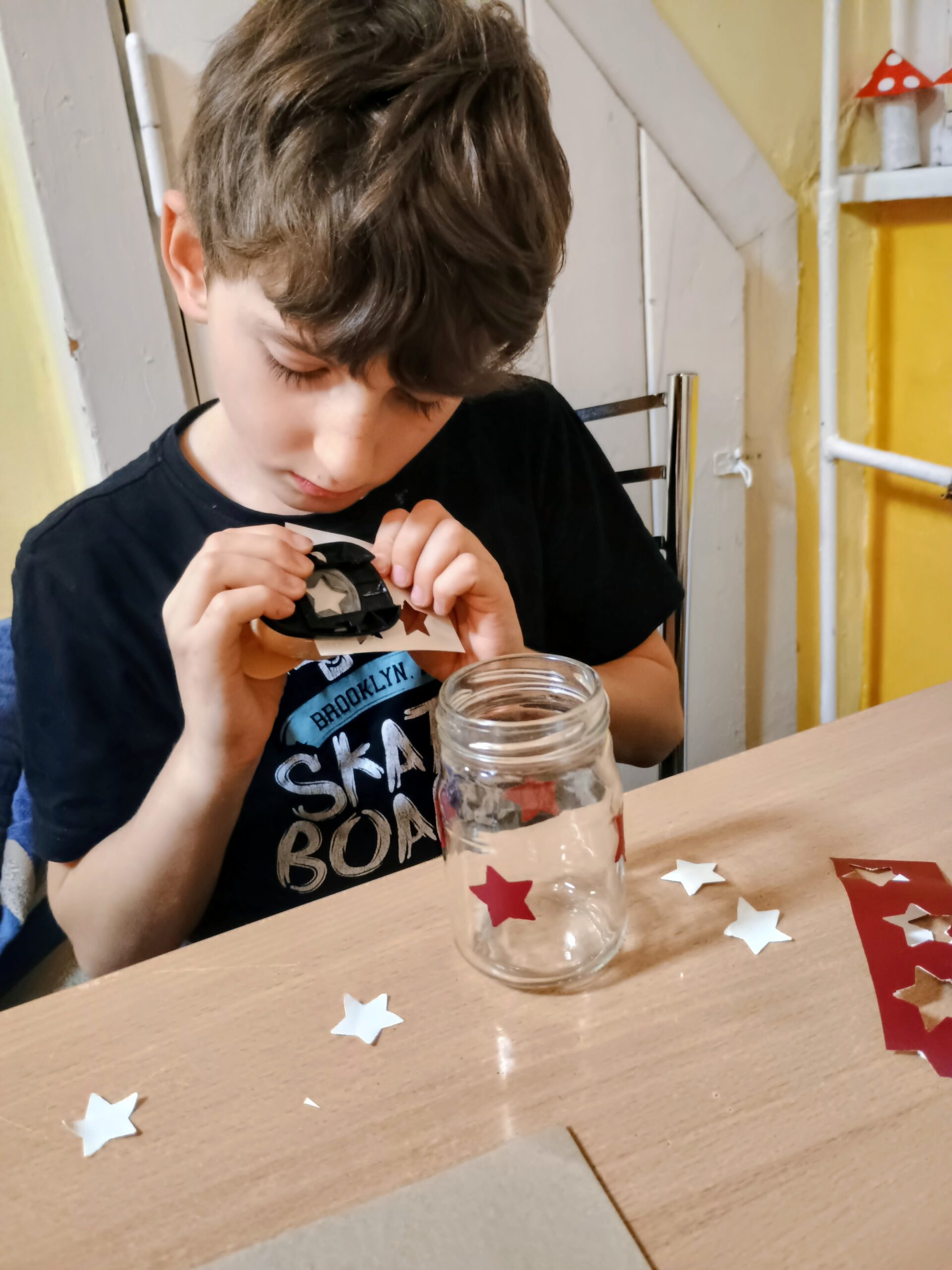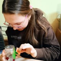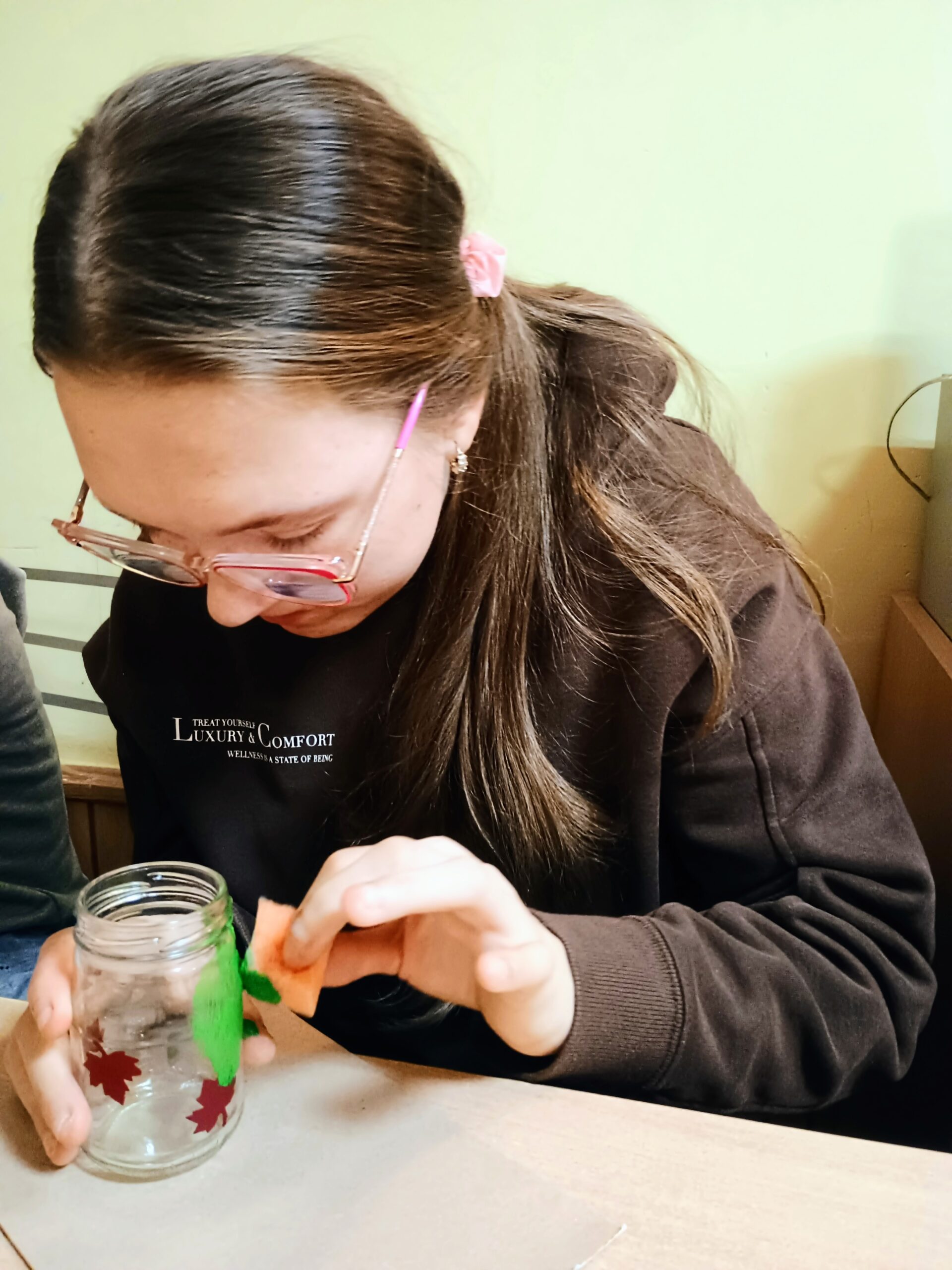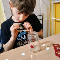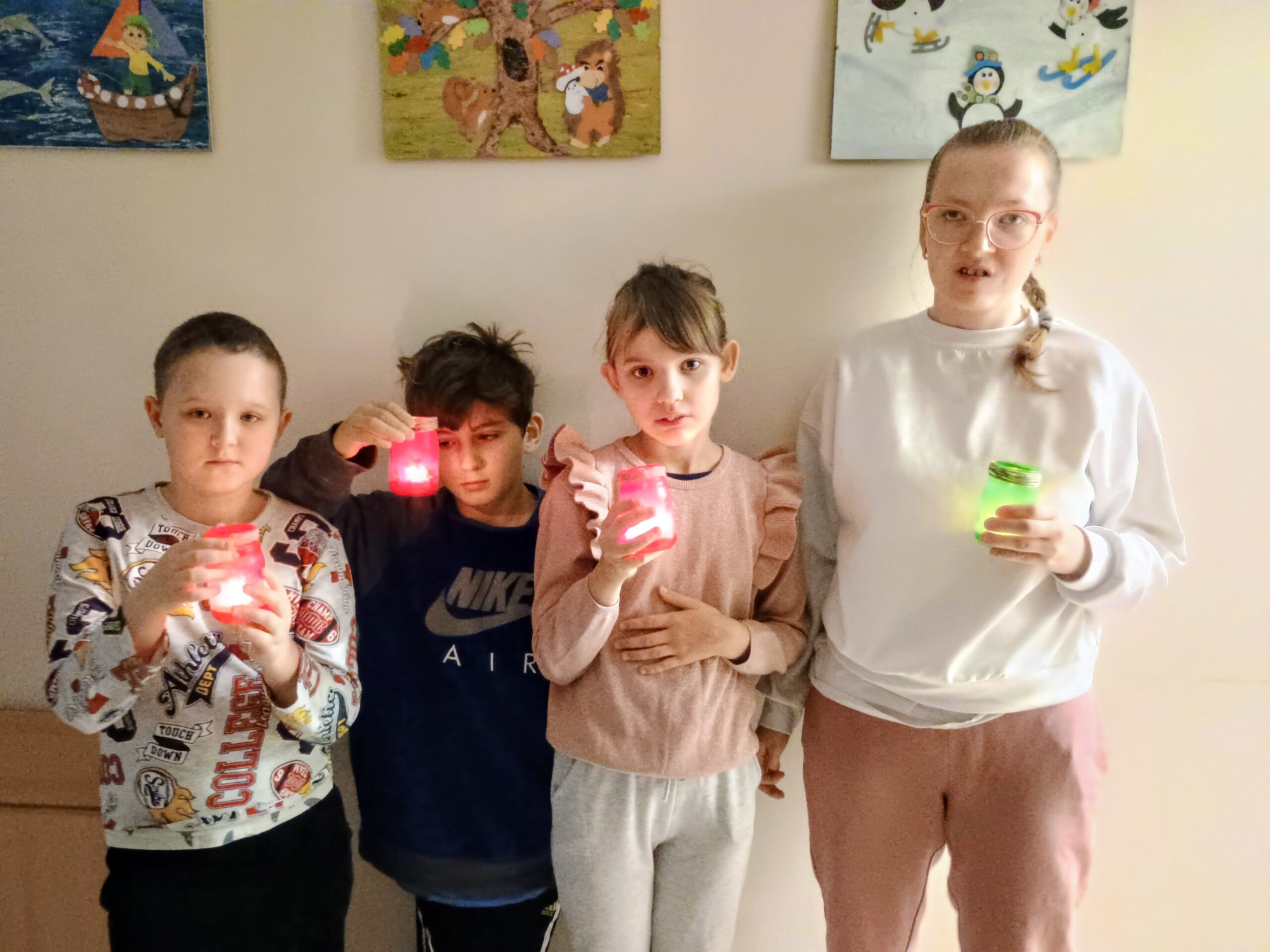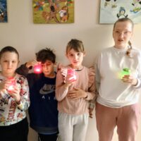 W ramach ostatnich dni jesiennej pogody za oknem tworzyliśmy lampiony na ciemne wieczory. Dzieci z chęcią przyklejały wzory, malowały słoiki, a następnie wykonywały prace wykończeniowe.