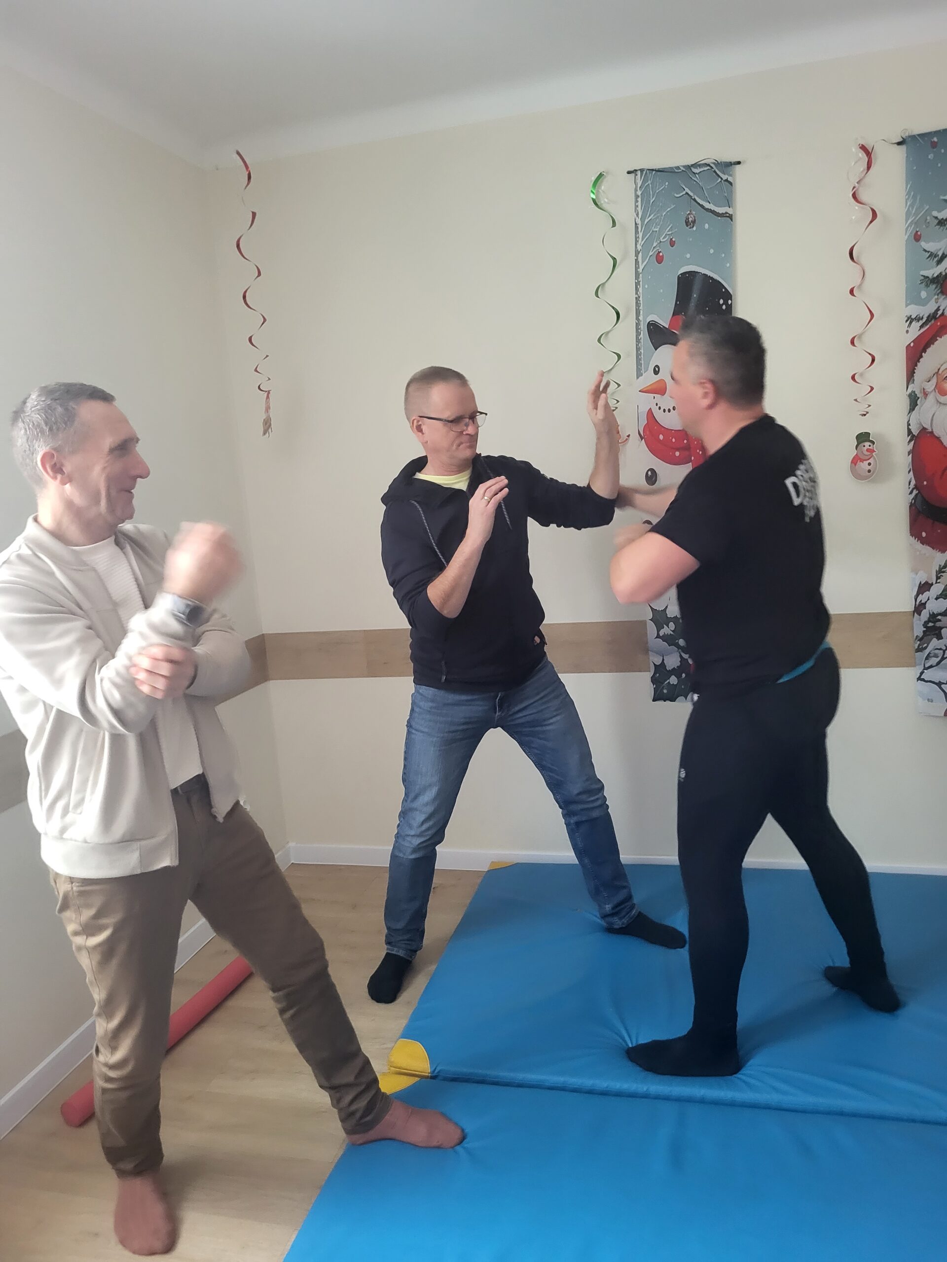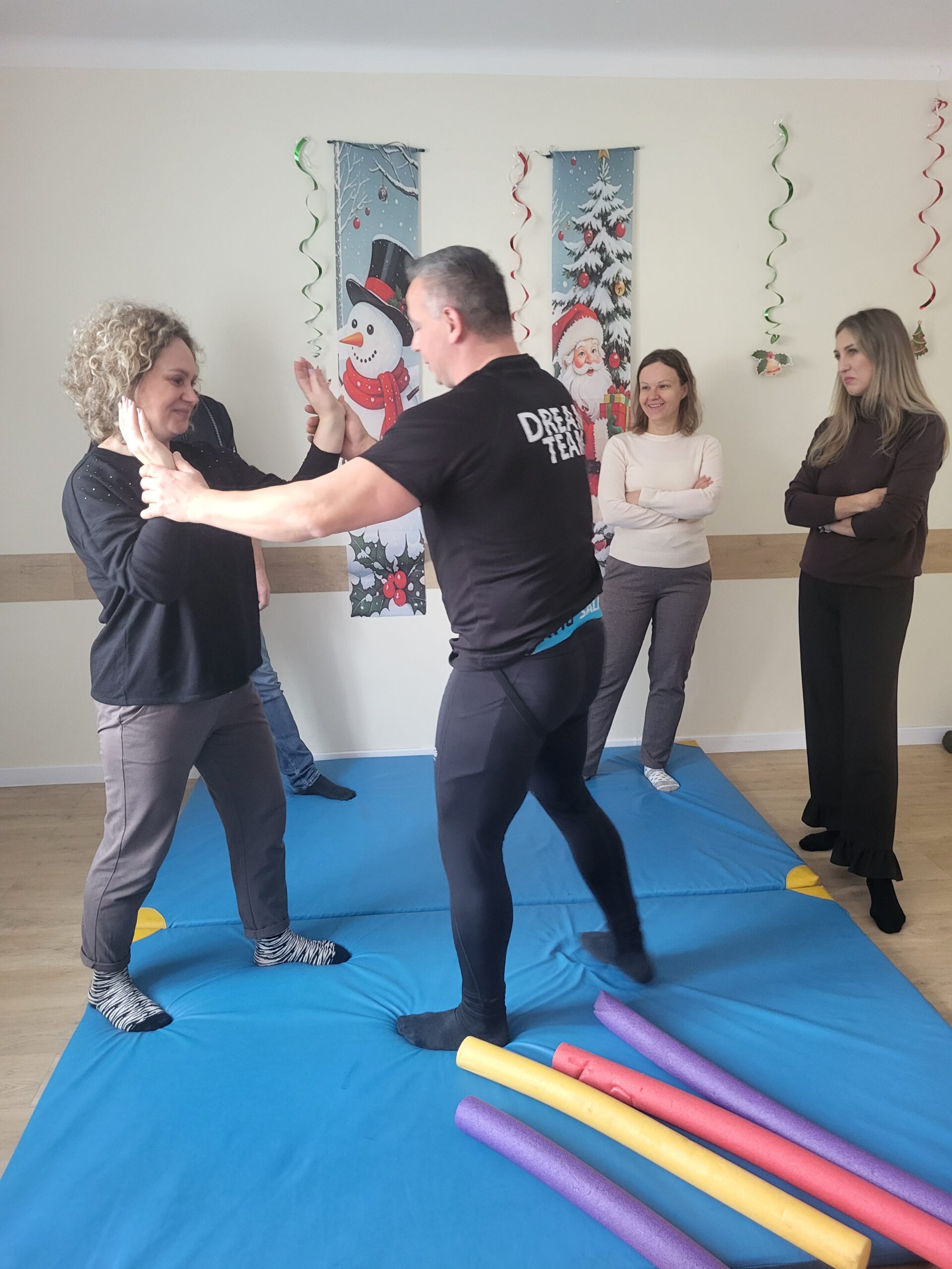 W dniu 28.11.2025 r. w internacie odbyło się szkolenie dla wychowawców z zakresu samoobrony. Zajęcia zostały przeprowadzone przez Pana Daniela doświadczonego instruktora, który w bezpieczny sposób zapoznał uczestników z podstawowymi zasadami obrony własnej. Podczas zajęć wychowawcy poznali proste techniki unikania niebezpiecznych sytuacji, a także podstawowe chwyty i metody uwalniania się z ataku.