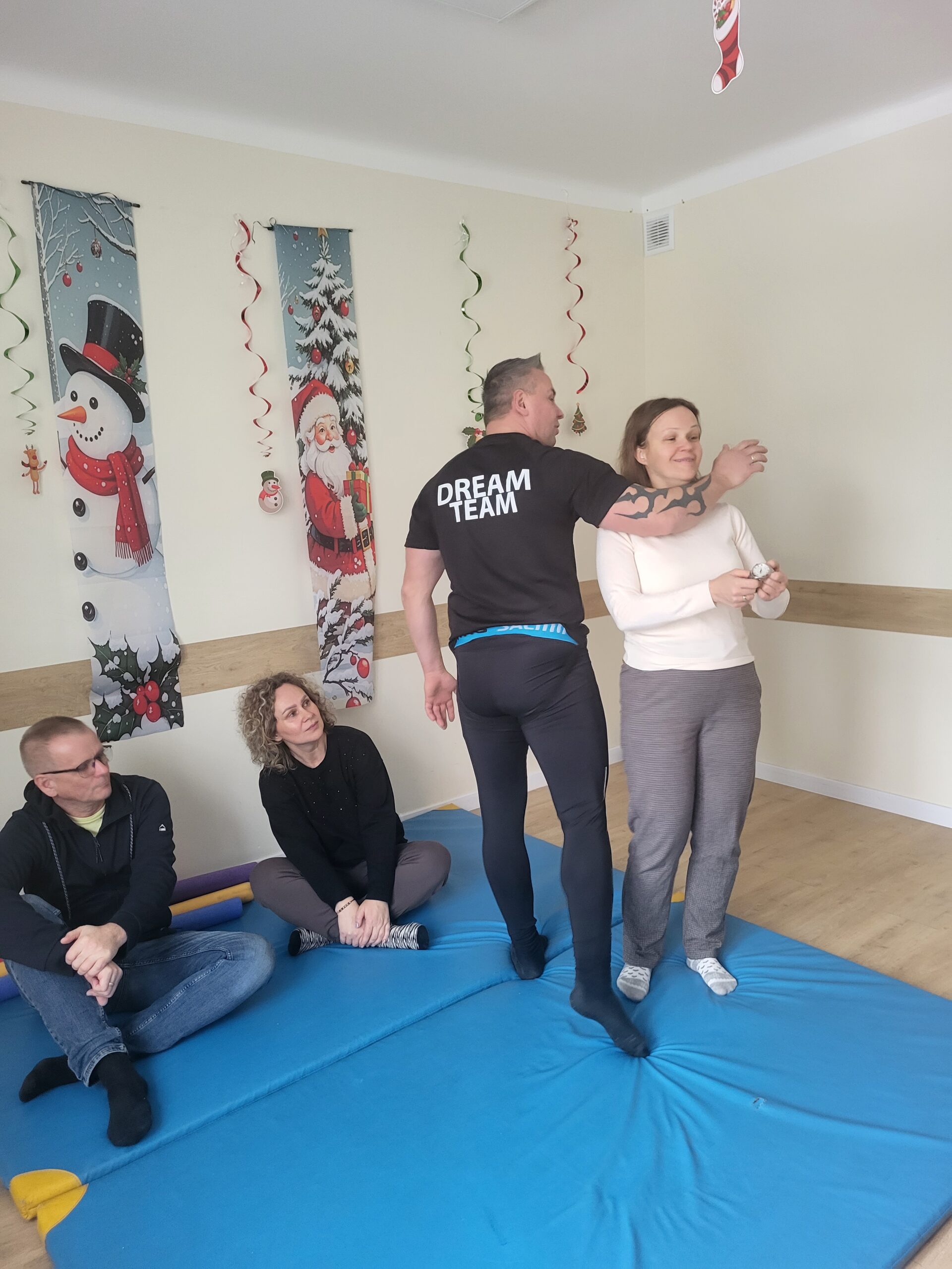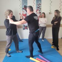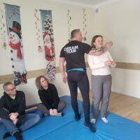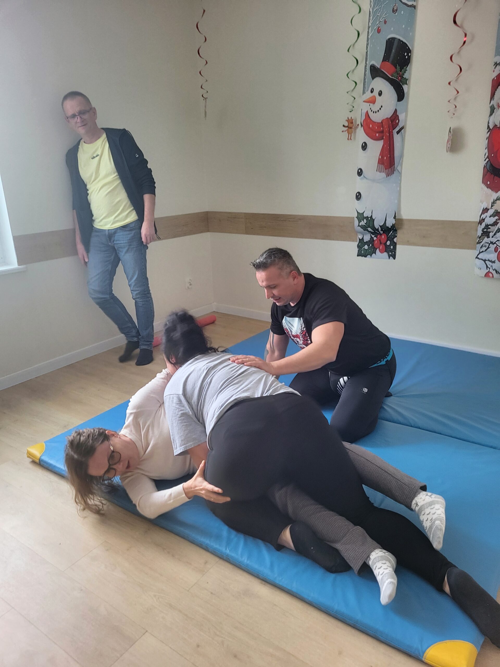 Wychowawcy aktywnie ćwiczyli przedstawione elementy przez instruktora, pracując w parach i małych grupach, co pozwoliło Nam na praktyczne utrwalenie nowych umiejętności.
