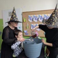 Każdy uczestnik andrzejkowych szaleństw z niecierpliwością przekłuwał papierowe serce, aby odczytać imię swojej sympatii, odgadywał przyszły zawód, lał wosk, przekłuwał balony z wróżbą, losował karty z dobrą przepowiednią. W świat czarów przeniosły ich eksperymenty prezentowane przez wróżki, mieli również możliwość wykonania dla siebie magicznego słoiczka. Zabawę umiliły wspólne tańce i zabawy ruchowe przy muzyce.