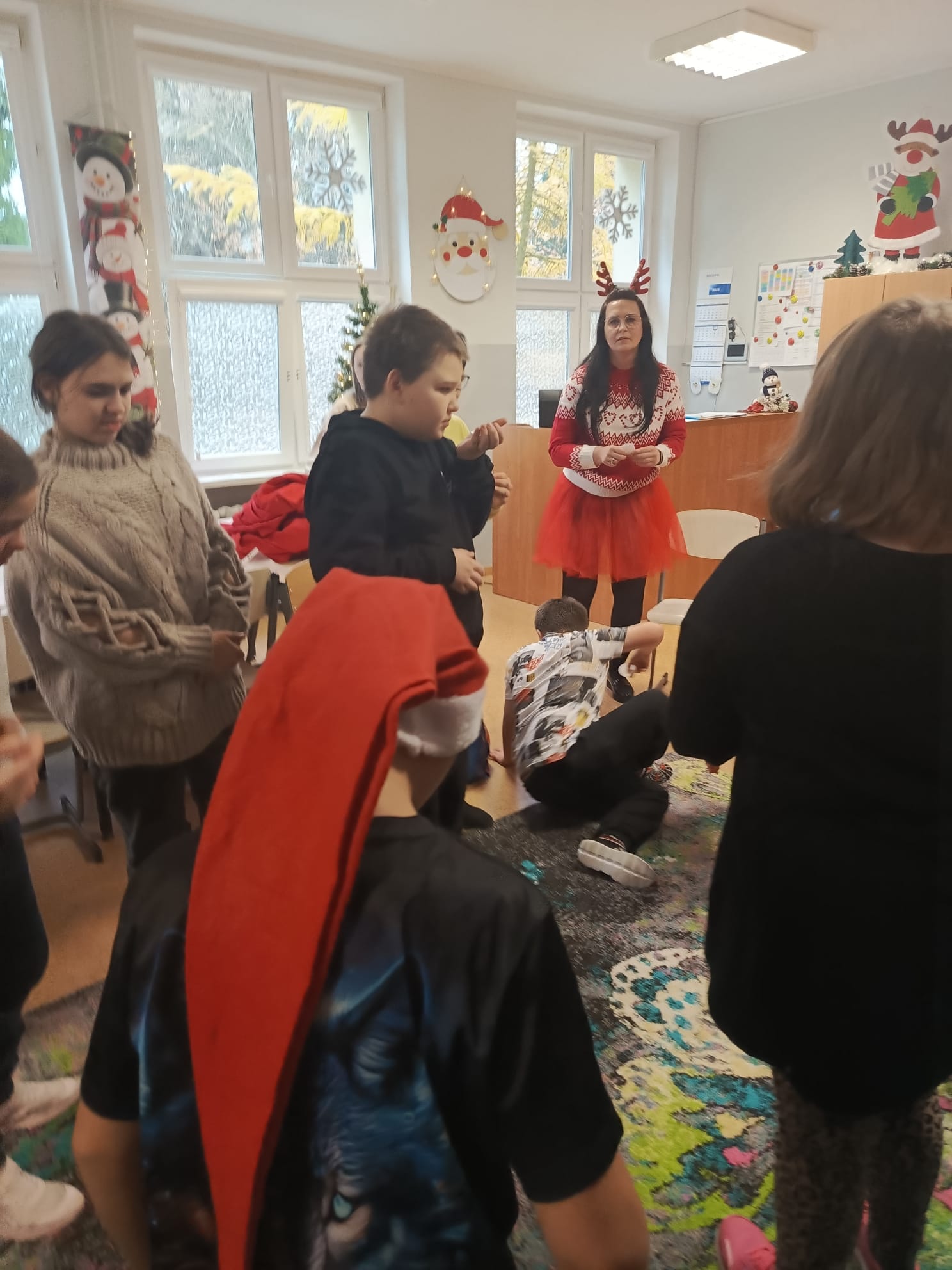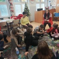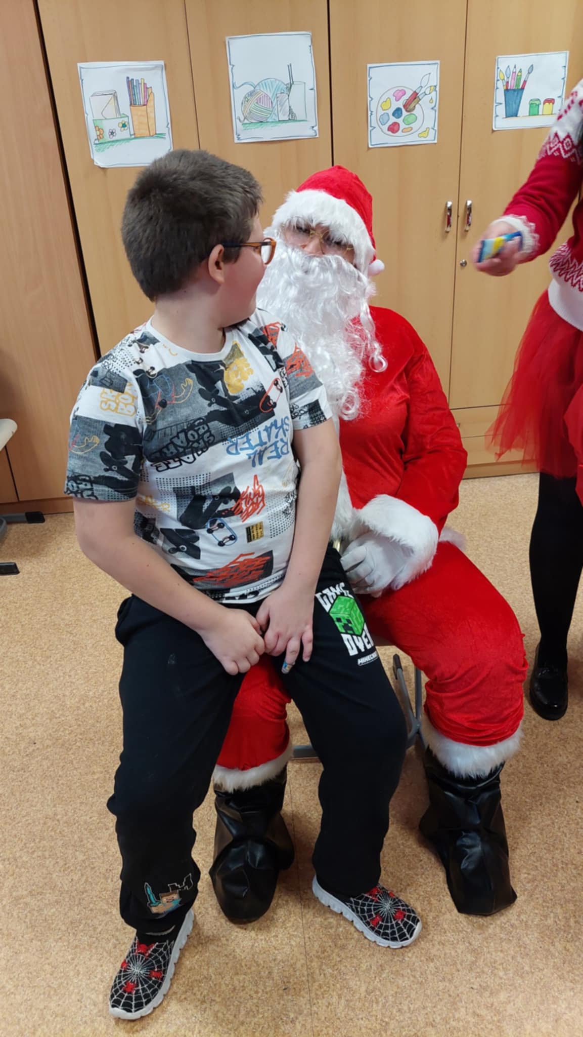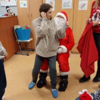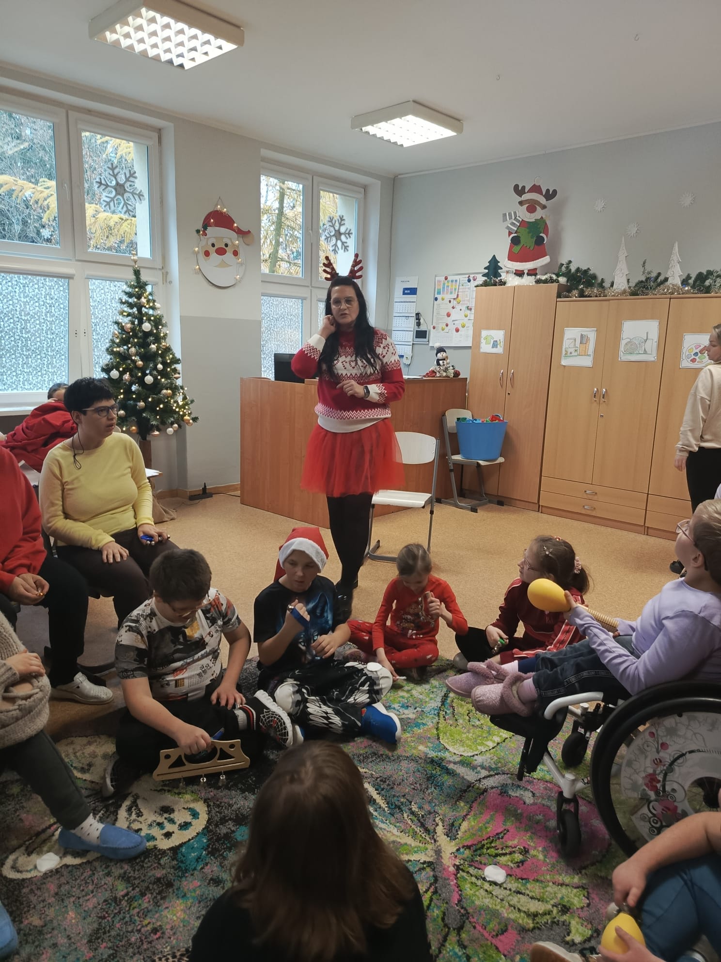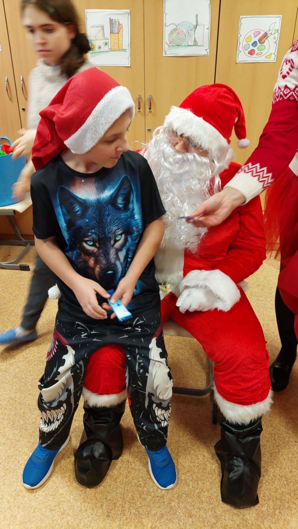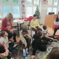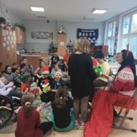 Dnia 05.12 w świetlicy szkolnej odbyły się Mikołajkowe zajęcia logopedyczne, w trakcie których dzieci wykonywały ćwiczenia artykulacyjne dopasowane do opowiadania o Mikołaju, ćwiczyły słuch grając na instrumentach do piosenki świątecznej oraz pracowały nad oddechem dmuchając w waciki, które odpowiadały płatkom śniegu. Na koniec odwiedził dzieci Mikołaj, który rozdał im słodkie upominki.