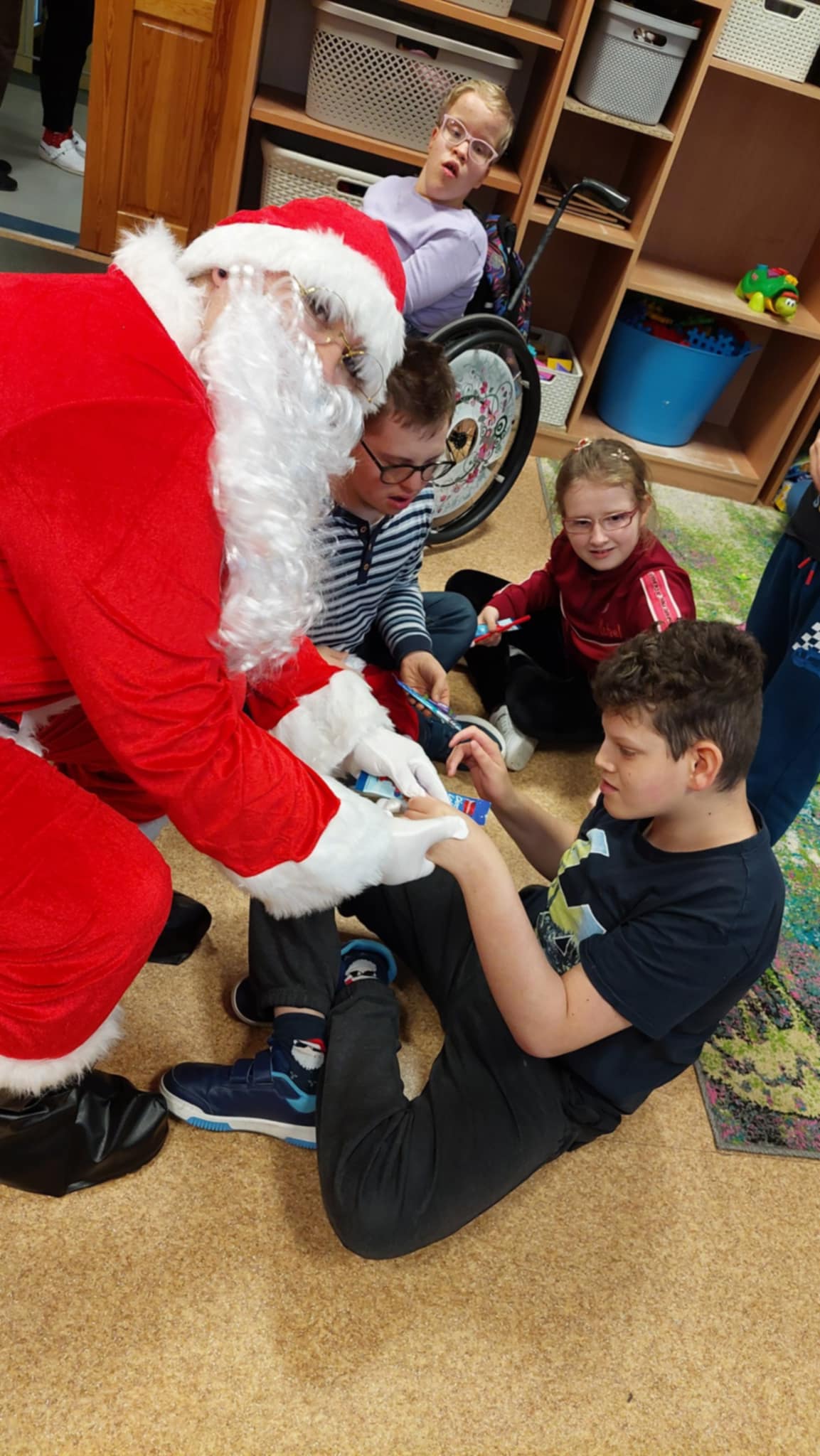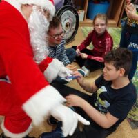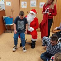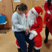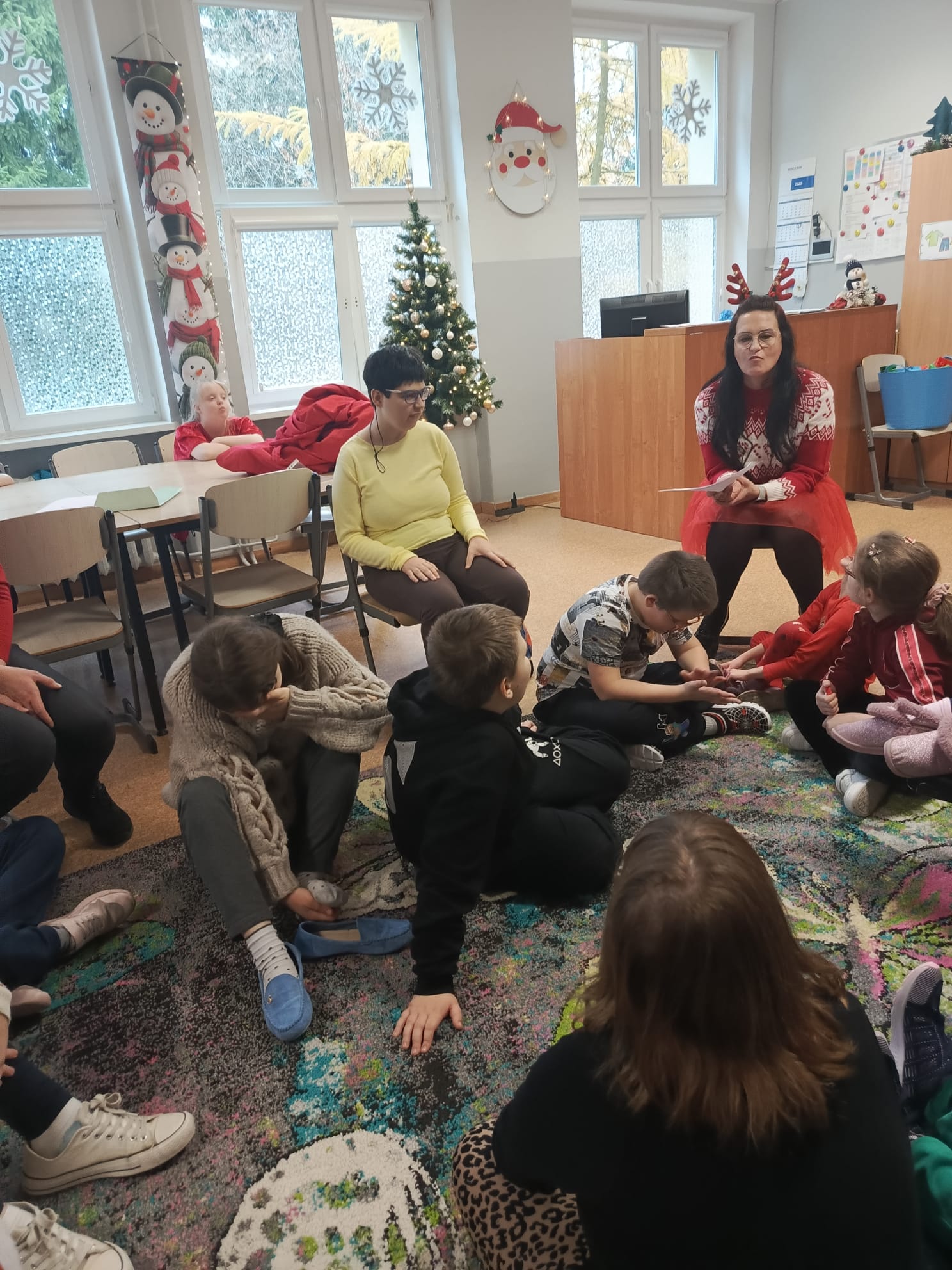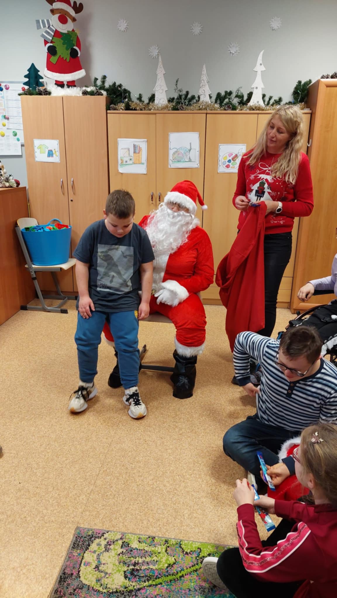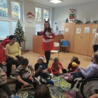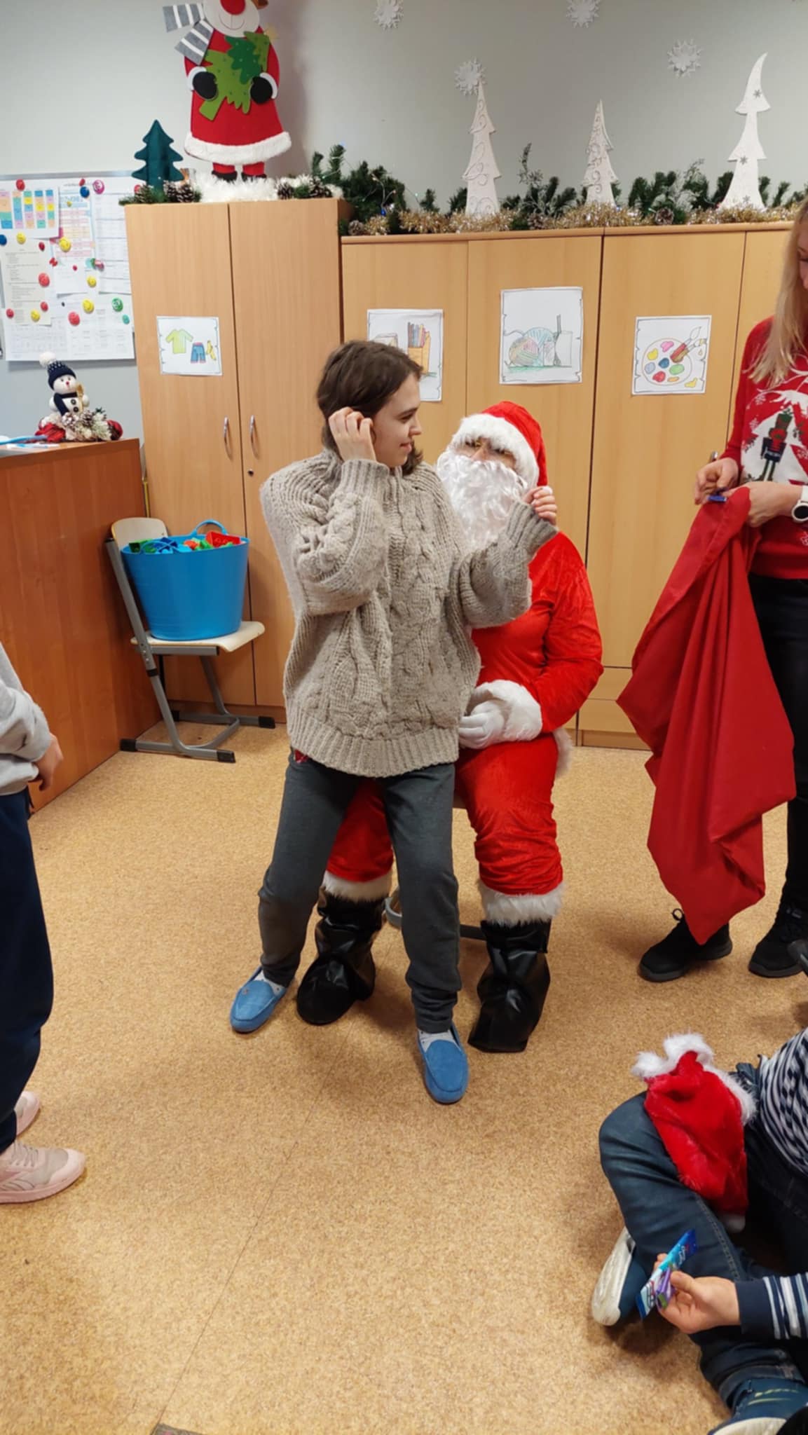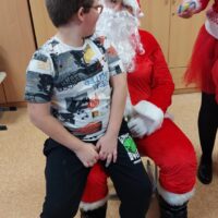 Dnia 05.12 w świetlicy szkolnej odbyły się Mikołajkowe zajęcia logopedyczne, w trakcie których dzieci wykonywały ćwiczenia artykulacyjne dopasowane do opowiadania o Mikołaju, ćwiczyły słuch grając na instrumentach do piosenki świątecznej oraz pracowały nad oddechem dmuchając w waciki, które odpowiadały płatkom śniegu. Na koniec odwiedził dzieci Mikołaj, który rozdał im słodkie upominki.