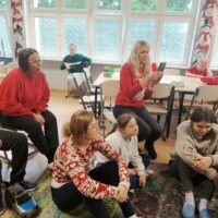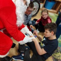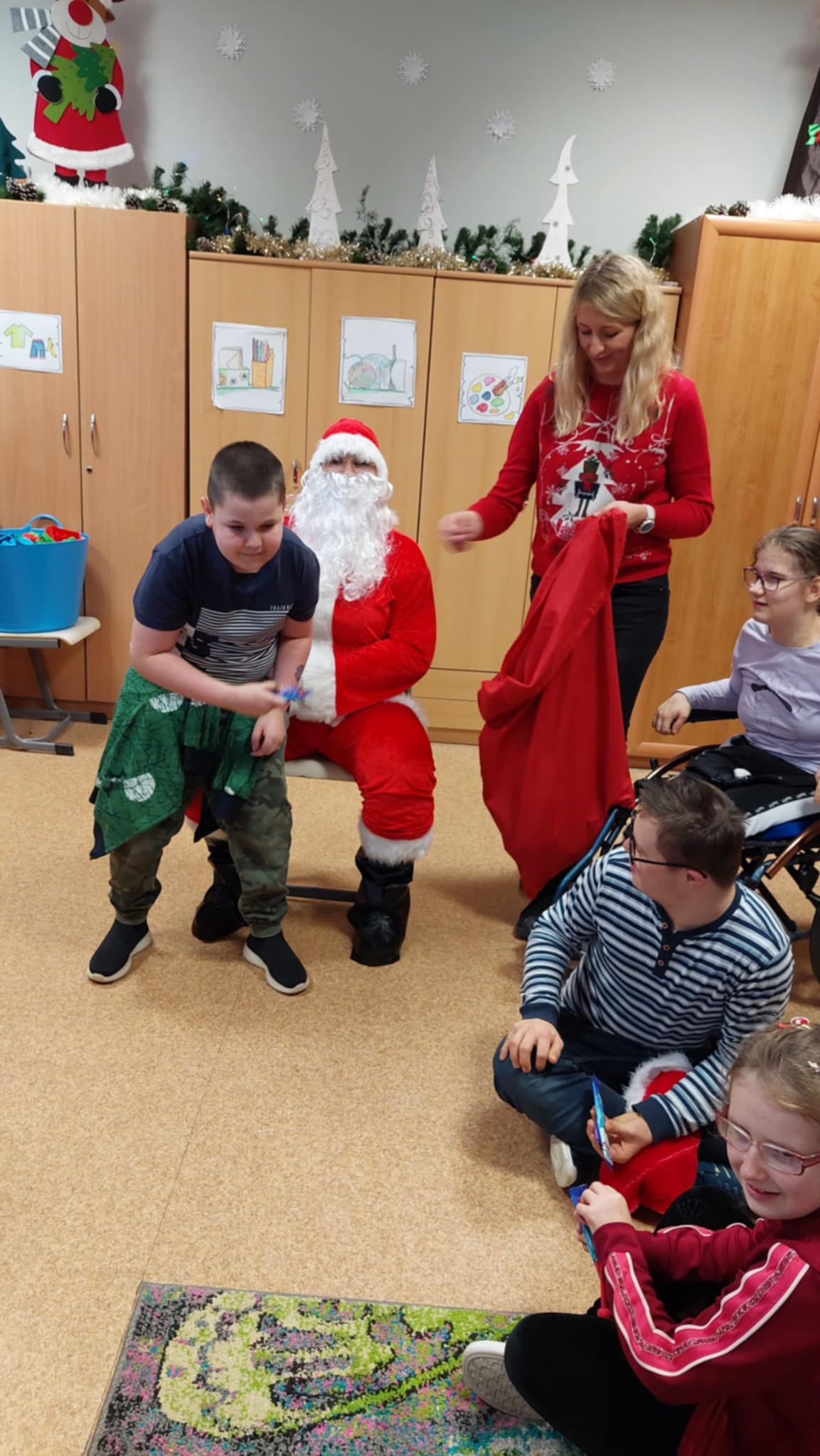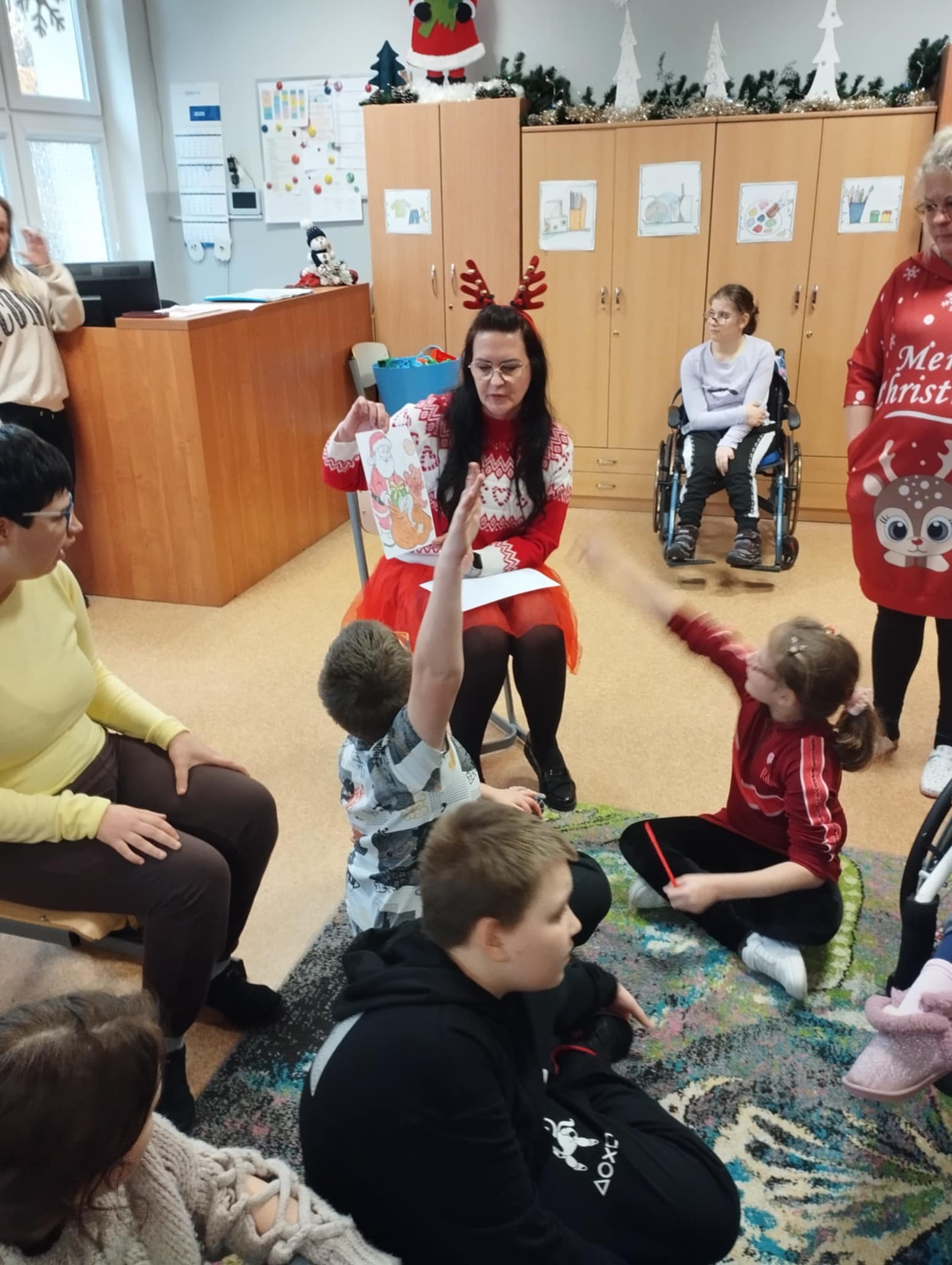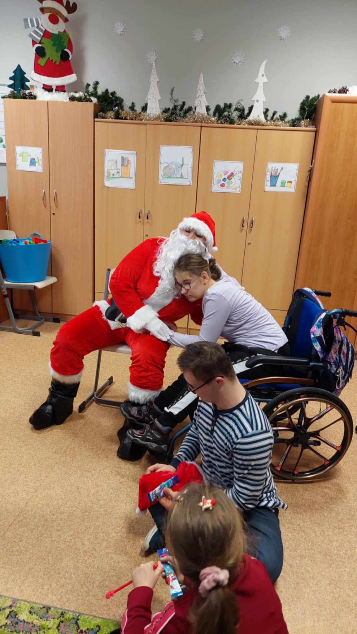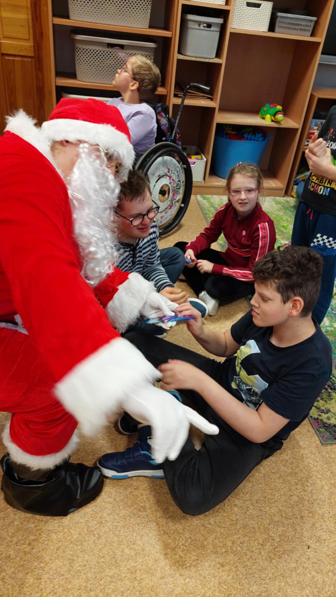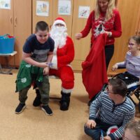 Dnia 05.12 w świetlicy szkolnej odbyły się Mikołajkowe zajęcia logopedyczne, w trakcie których dzieci wykonywały ćwiczenia artykulacyjne dopasowane do opowiadania o Mikołaju, ćwiczyły słuch grając na instrumentach do piosenki świątecznej oraz pracowały nad oddechem dmuchając w waciki, które odpowiadały płatkom śniegu. Na koniec odwiedził dzieci Mikołaj, który rozdał im słodkie upominki.