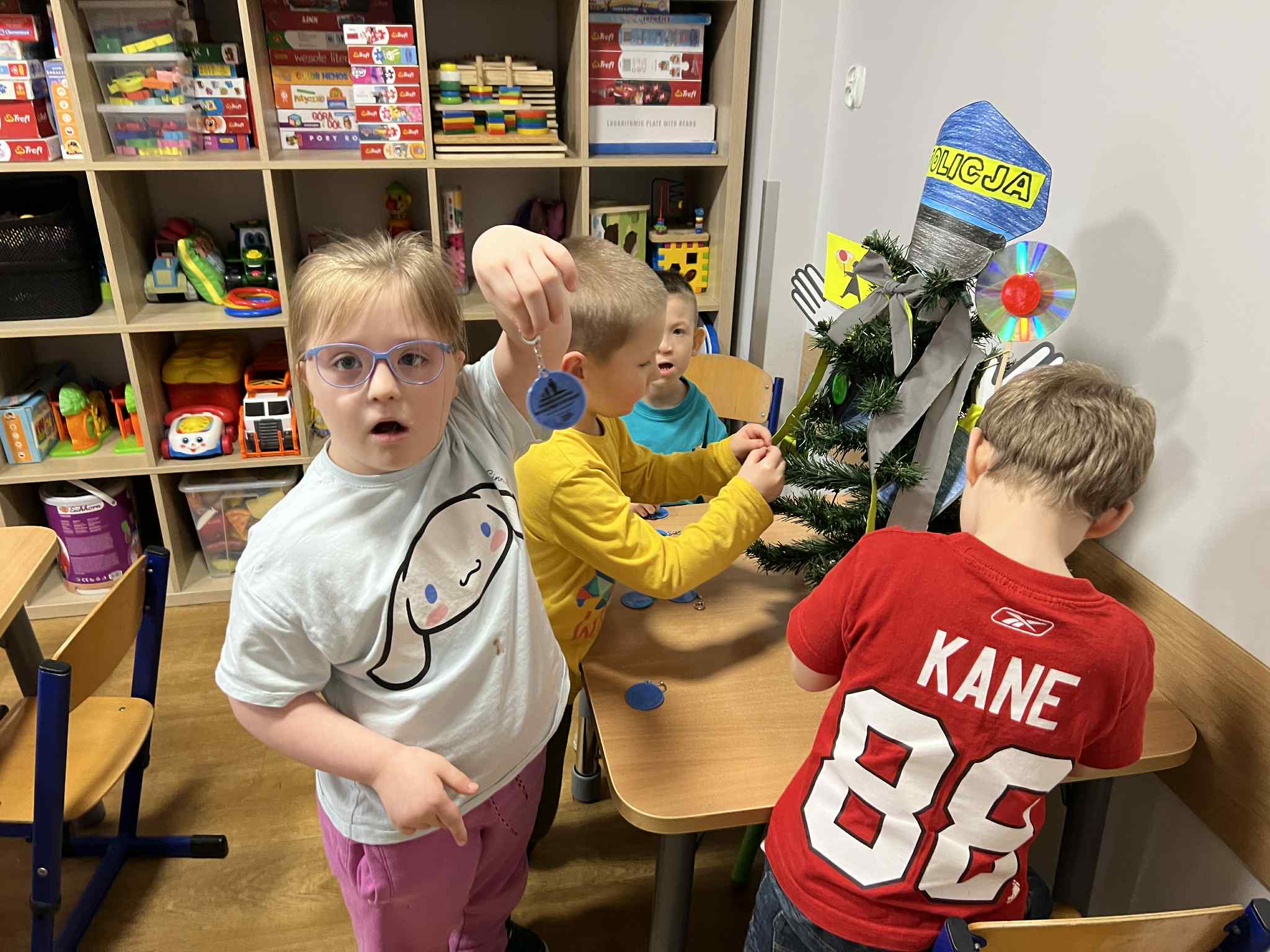 Wydział Ruchu Drogowego Komendy Miejskiej Policji w Elblągu przygotowała konkurs „Odblaskowa choinka”, w którym „Tygryski Urwiski” wzięły udział. Zadanie konkursowe polega na stworzeniu ozdób choinkowych nawiązujących do zasad bezpieczeństwa w ruchu drogowym. Dzieci na zajęciach zrobiły ozdoby i udekorowały choinkę. Wyniki będą widoczne na stronie internetowej Komendy Miejskiej Policji w Elblągu: www.elbląg.policja.gov.pl w dniu 18.12.2024r. Trzymamy kciuki za nasze dzieci.