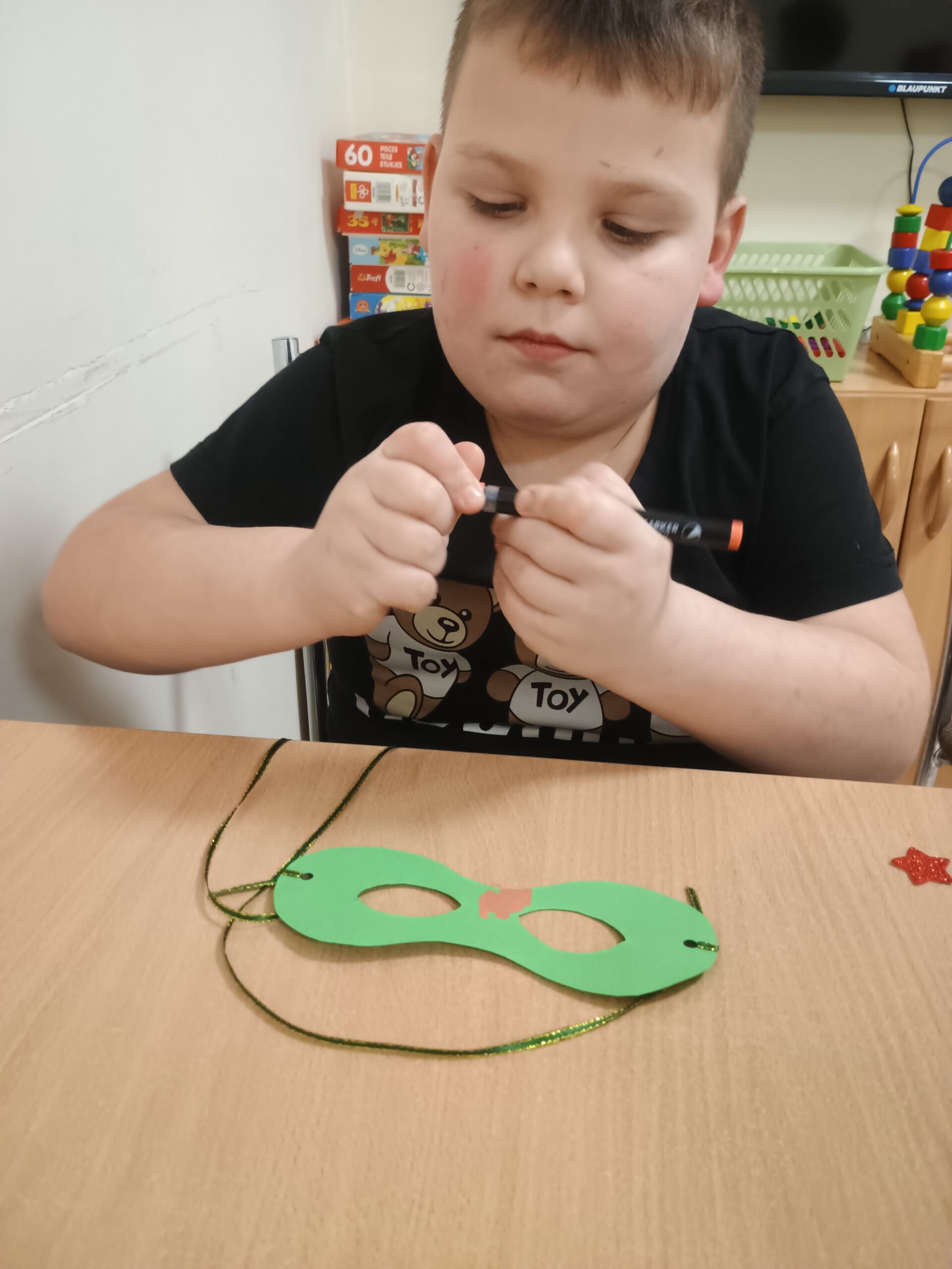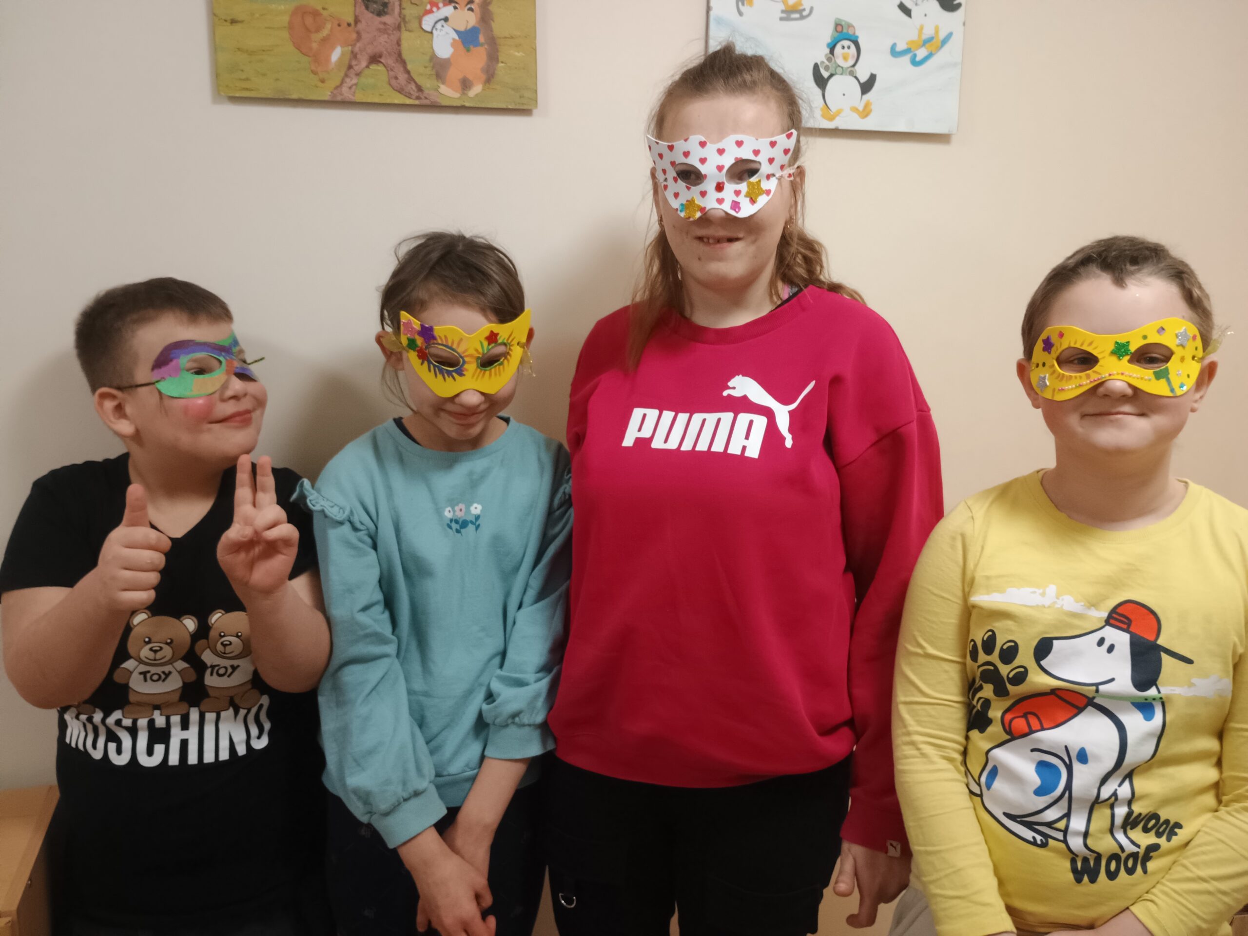 W poniedziałek w Internacie nauczyciele wprowadzili dzieci w klimat karnawałowy, było trochę informacji na temat Karnawału, tańce i zabawy muzyczne oraz tworzenie masek karnawałowych.
